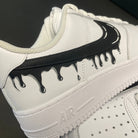 Bring a splash of style to your footwear collection with these BLACK DRIP SWOOSH AF1s! The Nike classic is given a funky update with a chic black drip swoosh filled with detailed shading, providing a look that's sure to make heads turn! Get ready to drip-drip-drip in the fashion stakes!