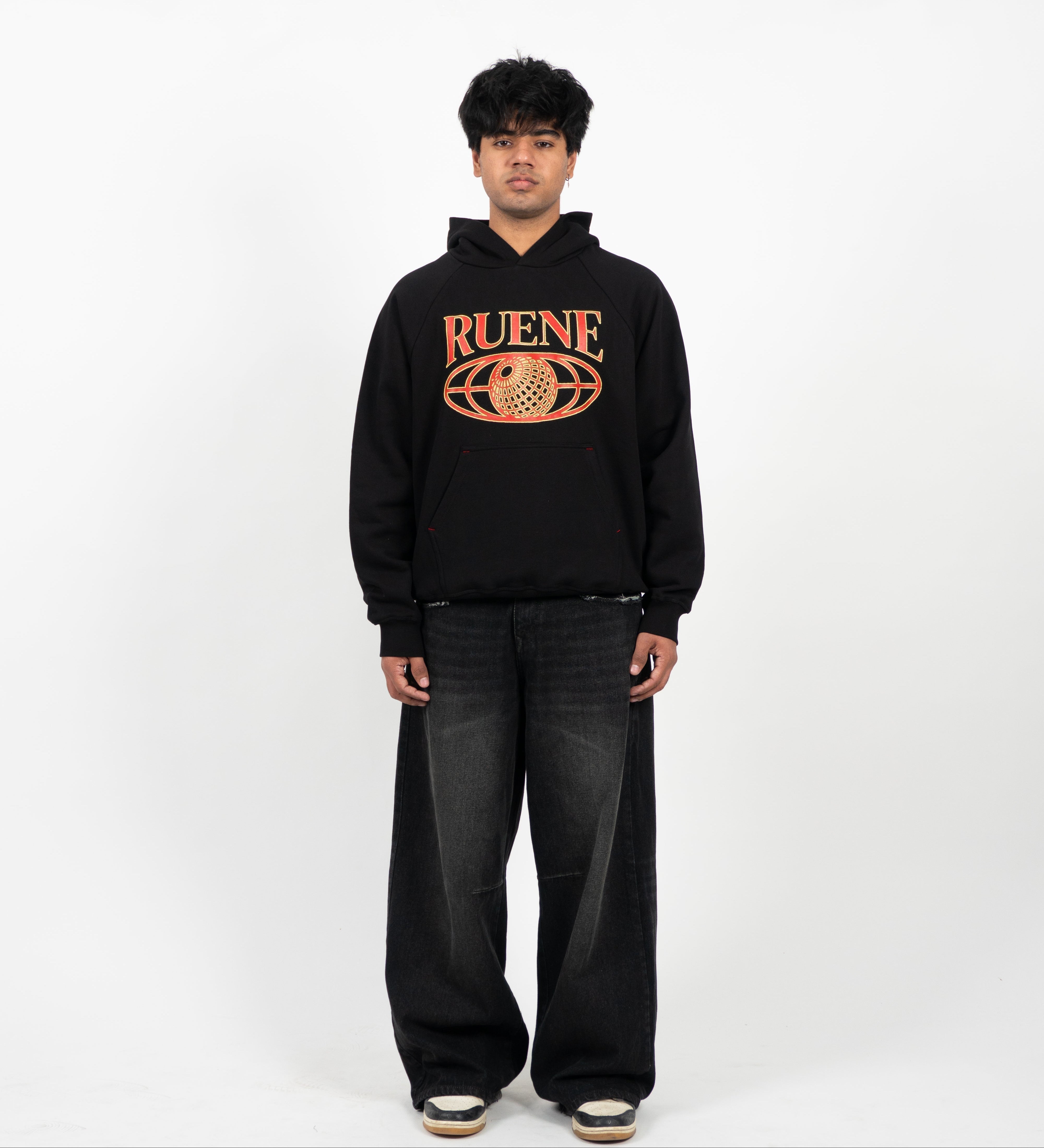 Made from 400+ GSM high quality fleece, this hoodie offers a relaxed boxy oversized fit with a clean, minimal look. The front features dual tone Ruene branding using HD and screen print techniques. Designed with raglan sleeves and a plain back for a refined everyday essential.