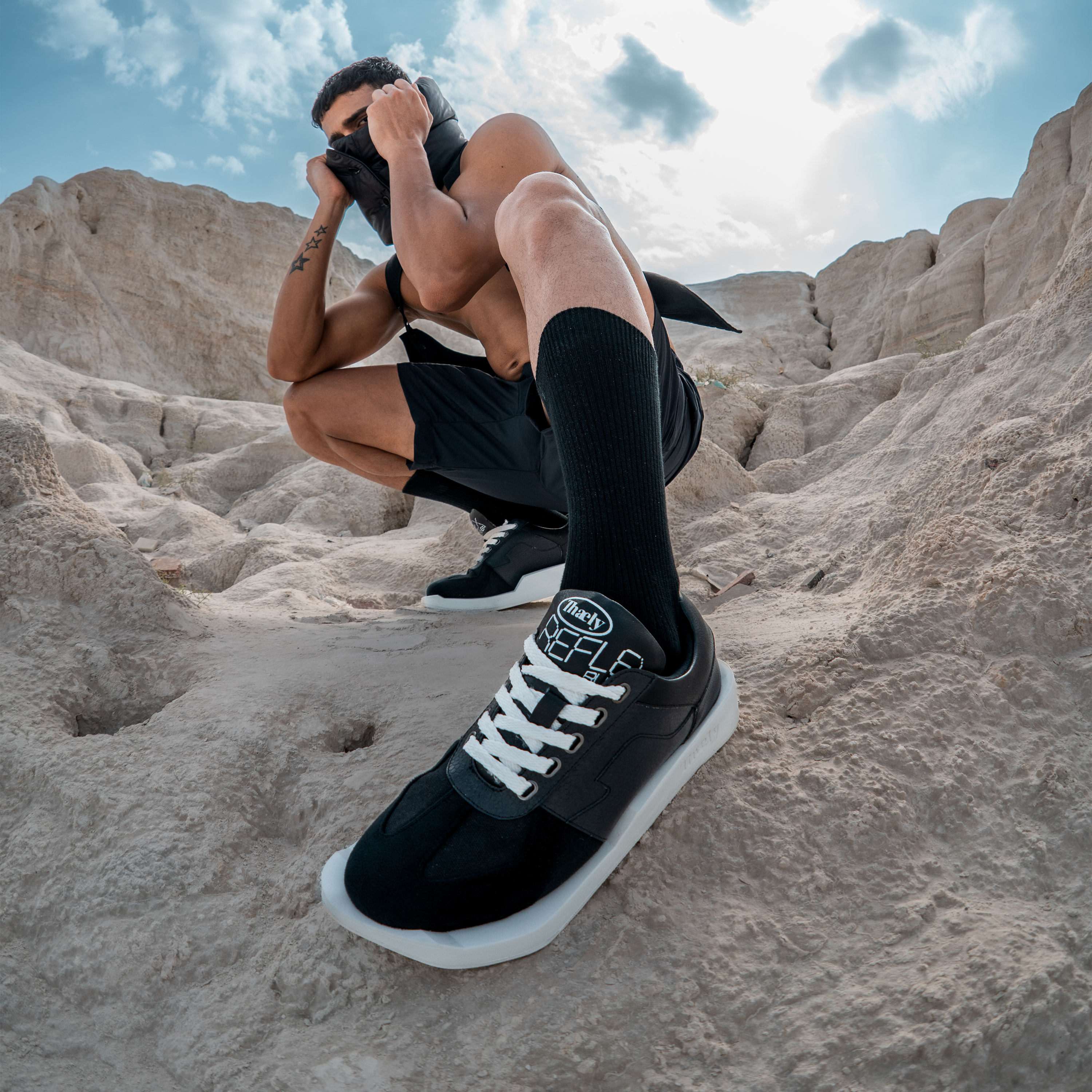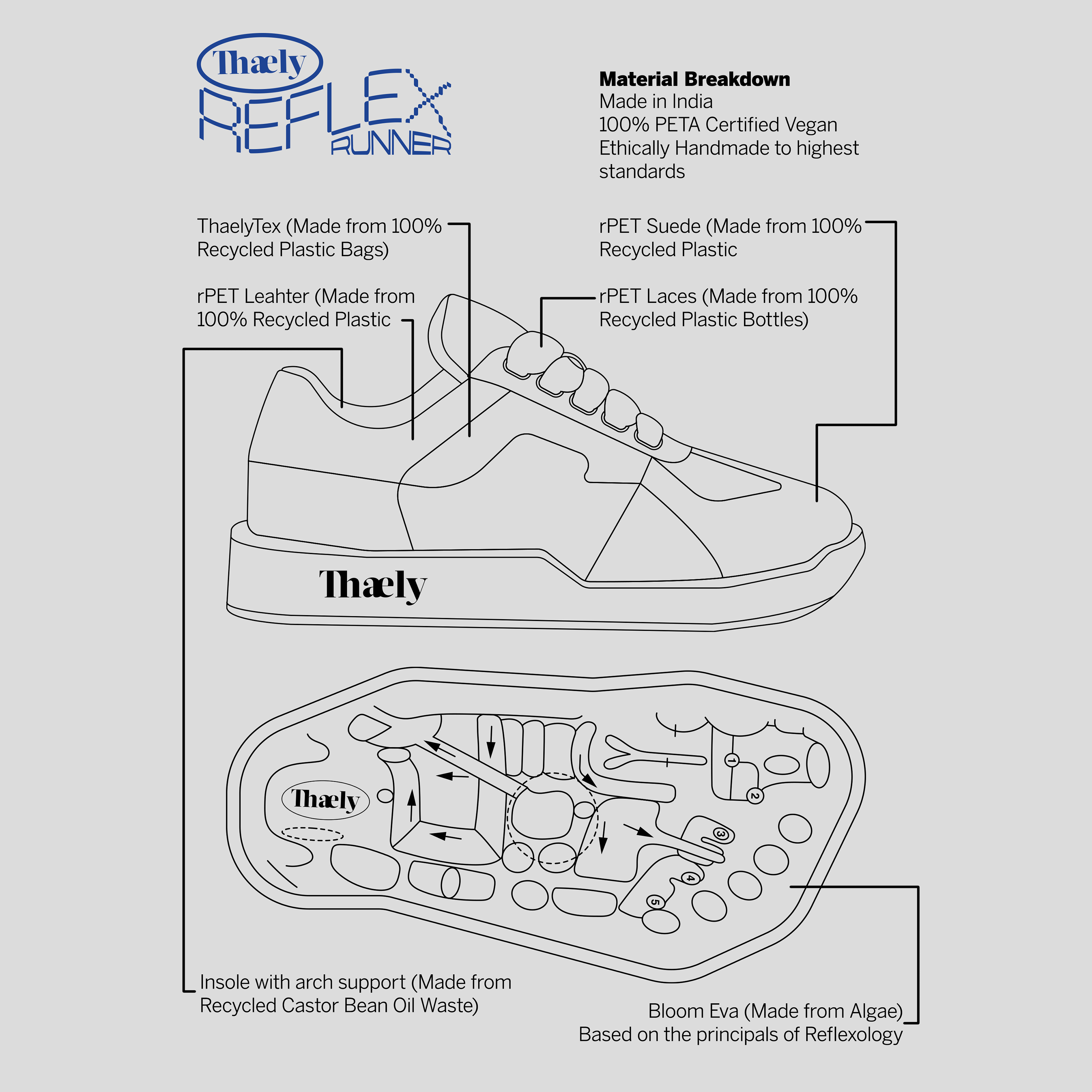 Introducing the Reflex Runner, a revolutionary sneaker that combines reflexology principles with cutting-edge sustainability. Featuring an eco-friendly algae sole, a spacious fit for natural movement, and a blend of recycled plastic bag materials, these sneakers redefine comfort while reducing your environmental footprint. With cushioned insoles providing cloud-like comfort, each pair repurposes 12 waste plastic bags and 15 plastic bottles. It's not just footwear; it's a sustainable step forward for both your comfort and the planet.