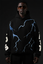 The Blackout Thunder Hoodie captures raw energy in its purest form — featuring a bold thunder print across the front and hood, striking through deep black fabric like lightning in a night sky.