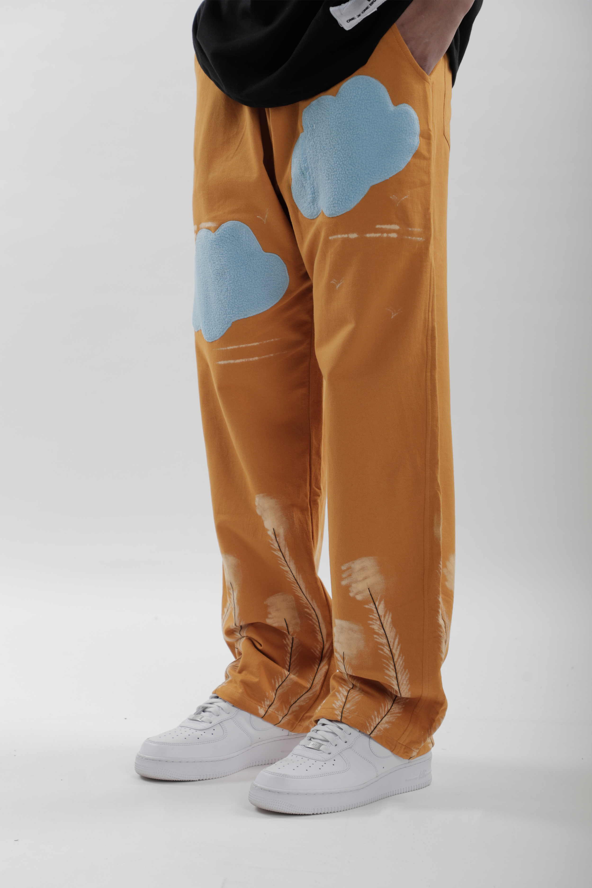 Clear skies, a gentle breeze through wild fauna handpainted on these bleached floral joggers. There isn't any like this out there.