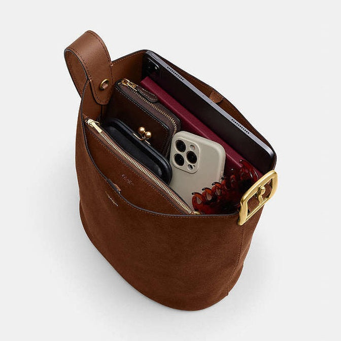 Coach Bleecker Bucket Bag Suede-Brass-Warm Brown