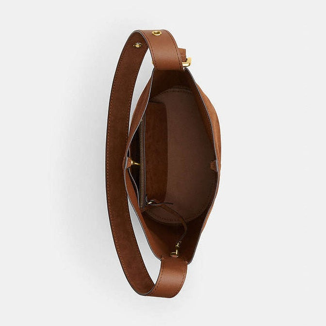 The Coach Bleecker Bucket Bag in Suede-Brass Warm Brown combines luxurious suede with polished brass hardware for a sophisticated, tactile experience. Its classic bucket design offers generous space with a relaxed yet structured silhouette, while the warm brown hue adds versatile elegance. Expertly crafted, this bag balances refined style with practical functionality, suited for those who appreciate timeless accessories with a contemporary edge.