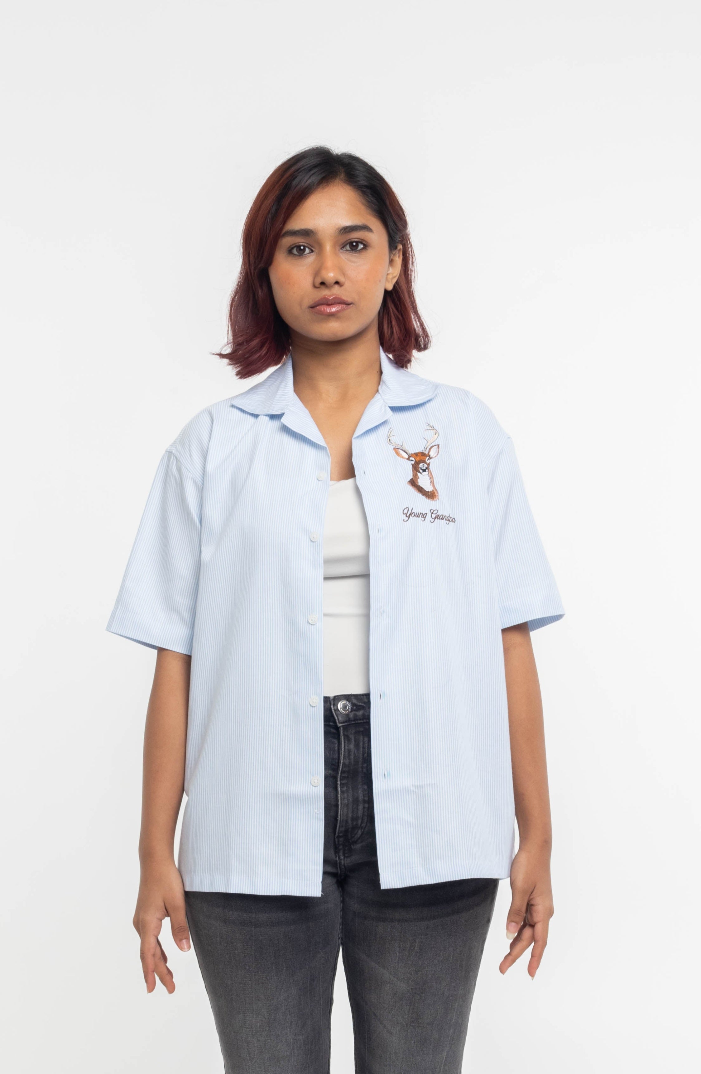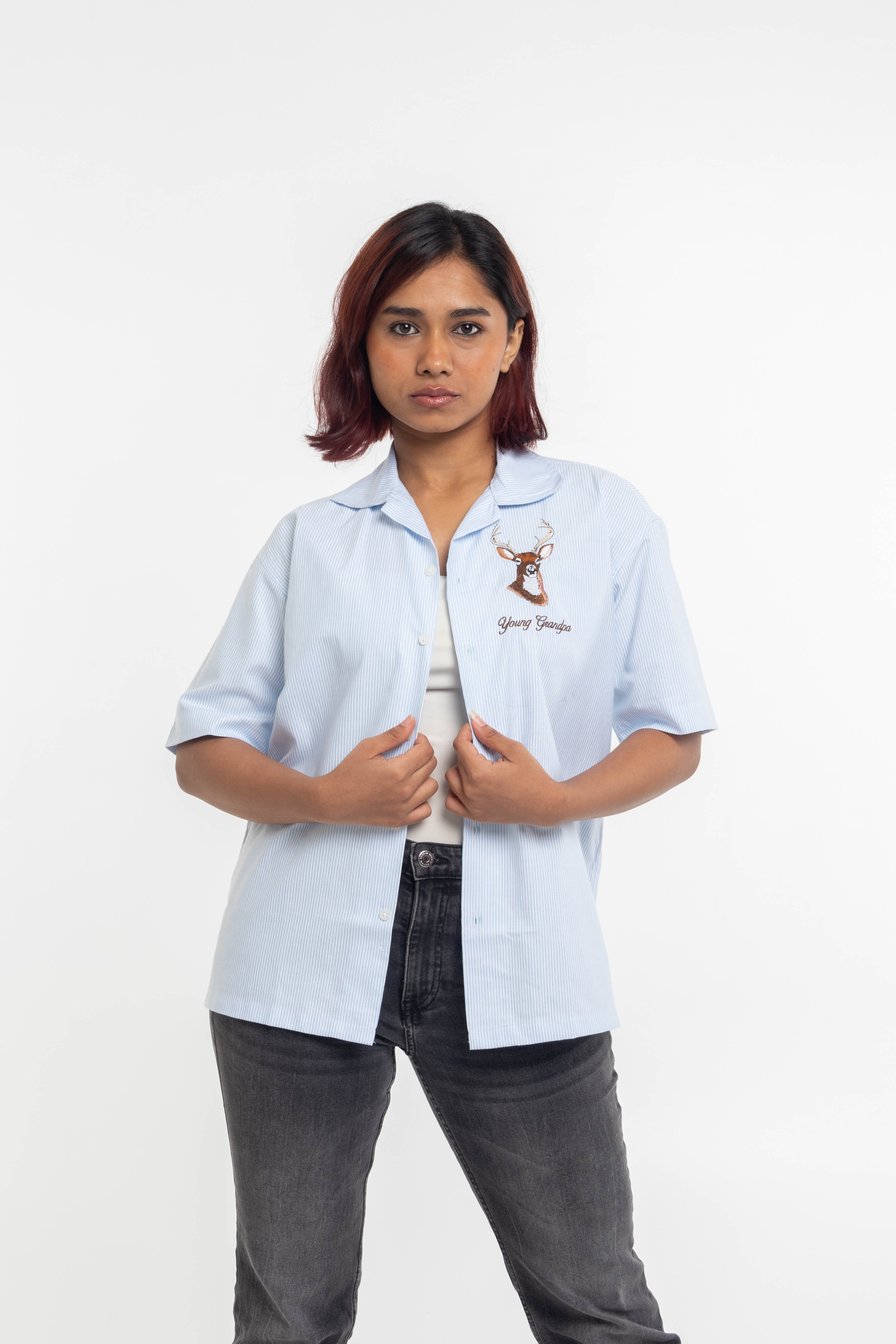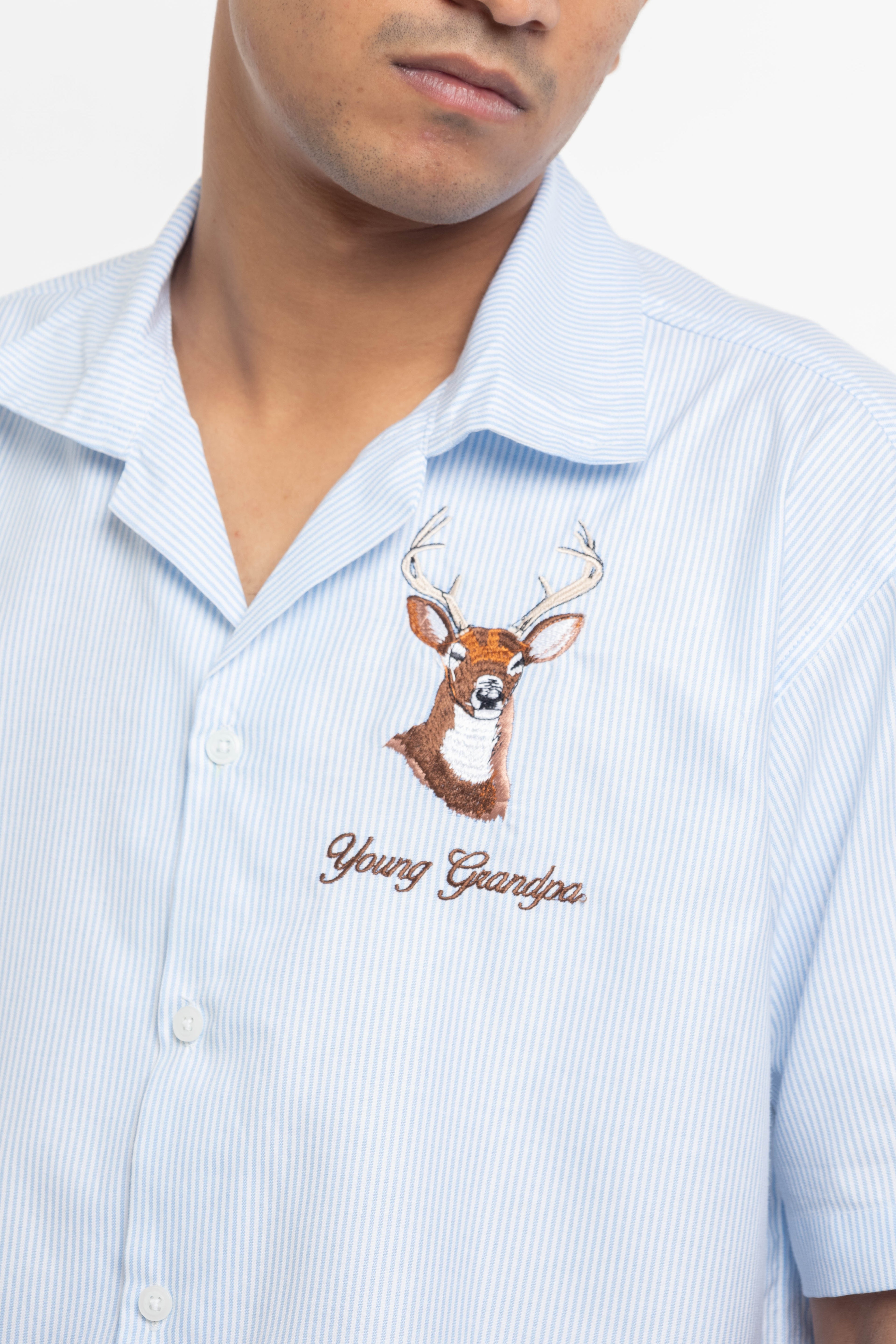 Make a statement with the Blue Stripes Stag Shirt. Featuring bold stripes and a sleek stag design, this shirt combines classic style with a touch of modern flair for the perfect everyday look.