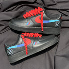 Inspired by precision engineering and high-performance aesthetics, the BMW M Sport AF1 brings the power of the road to your feet. Set on a sleek black Nike Air Force 1 base, this custom pair features a hand-painted BMW logo and iconic M Sport color accents, capturing the spirit of speed and style.