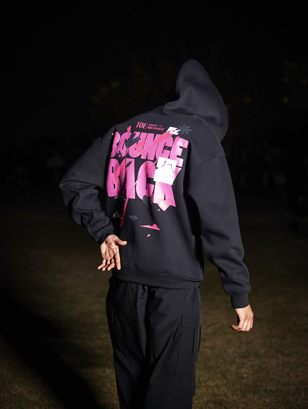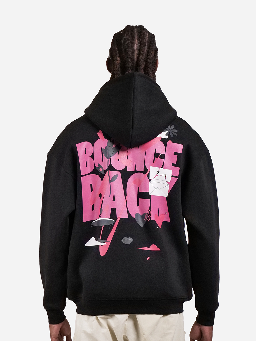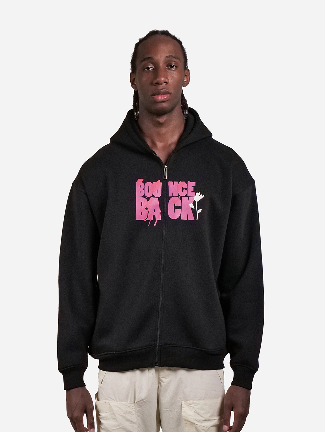 Bouncing Back - Black Graphic Drop Shoulder Men Oversized Zipper Hoodie