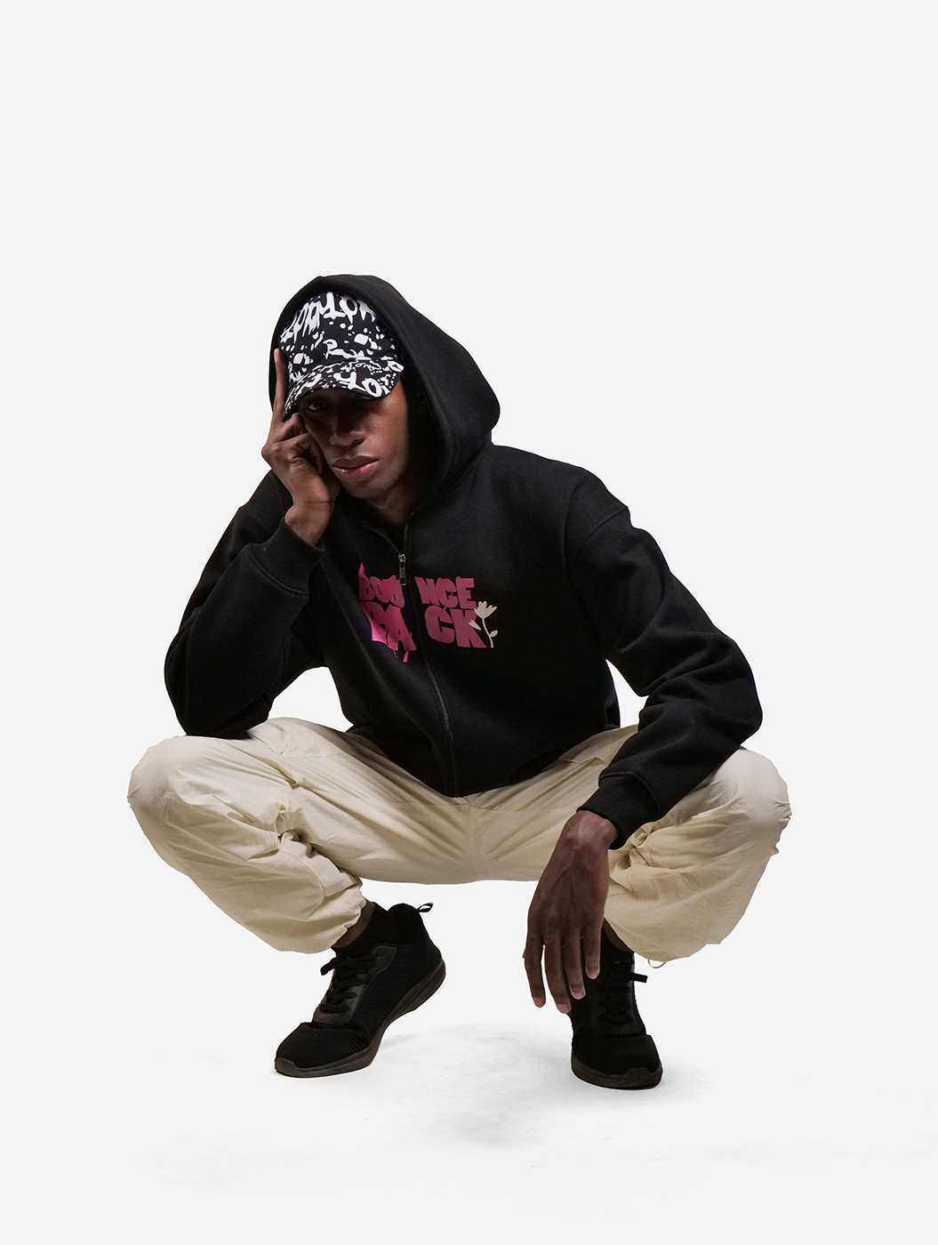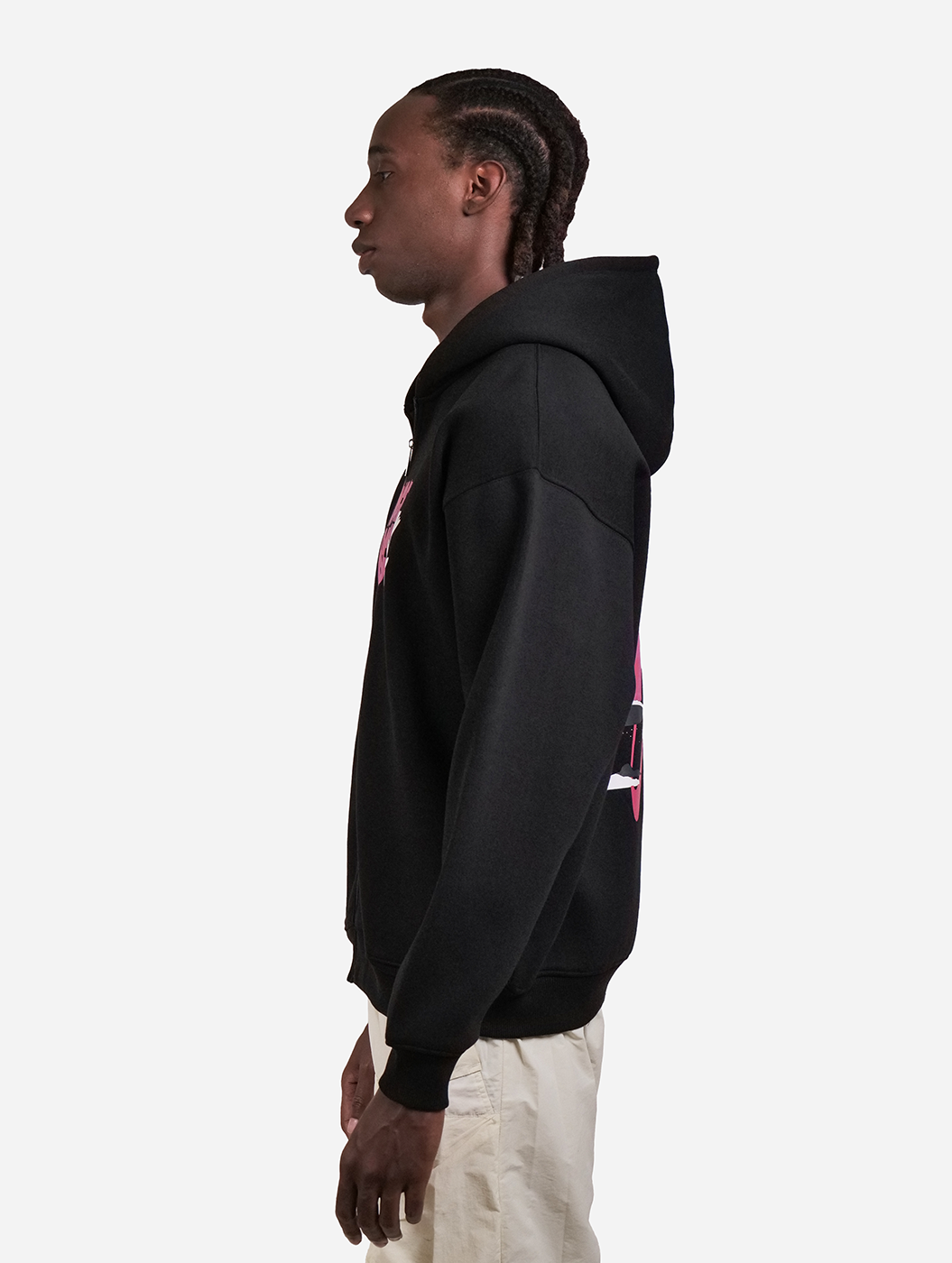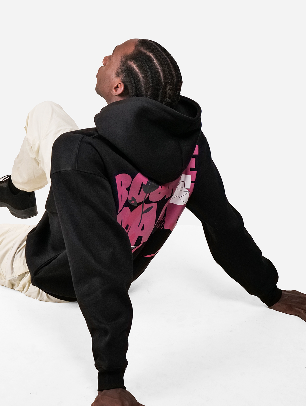 Bouncing Back - Black Graphic Drop Shoulder Men Oversized Zipper Hoodie