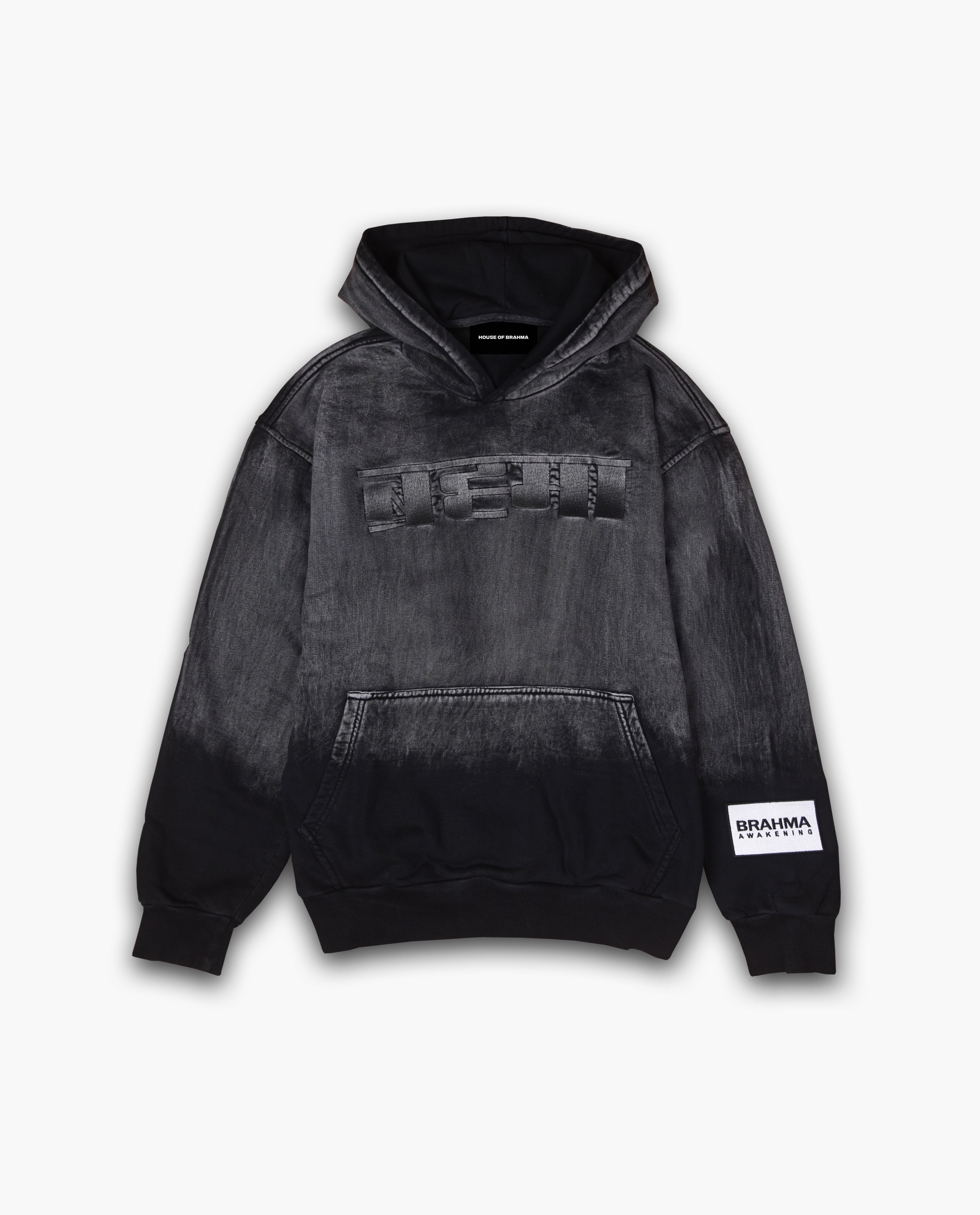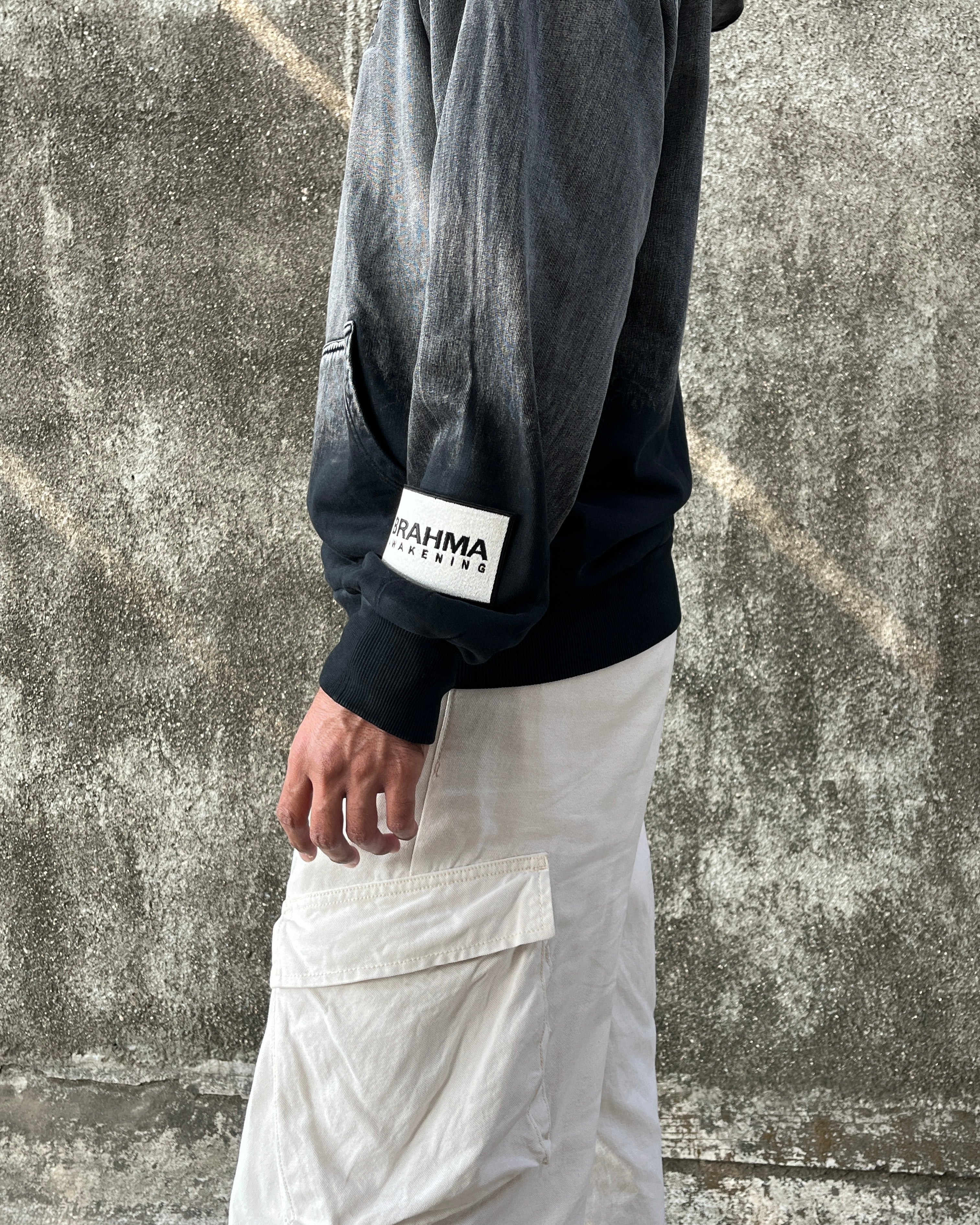 The standout feature is its unique wash treatment, giving the hoodie a striking two-tone, worn-in aesthetic that exudes character. The bold Brahma embroidery on the chest adds depth and sophistication, embodying a sense of power and individuality. On the sleeve, the “BRAHMA AWAKENING” patch subtly reinforces the brand’s ethos, making it a wearable piece of art that resonates with those who embrace self-expression.