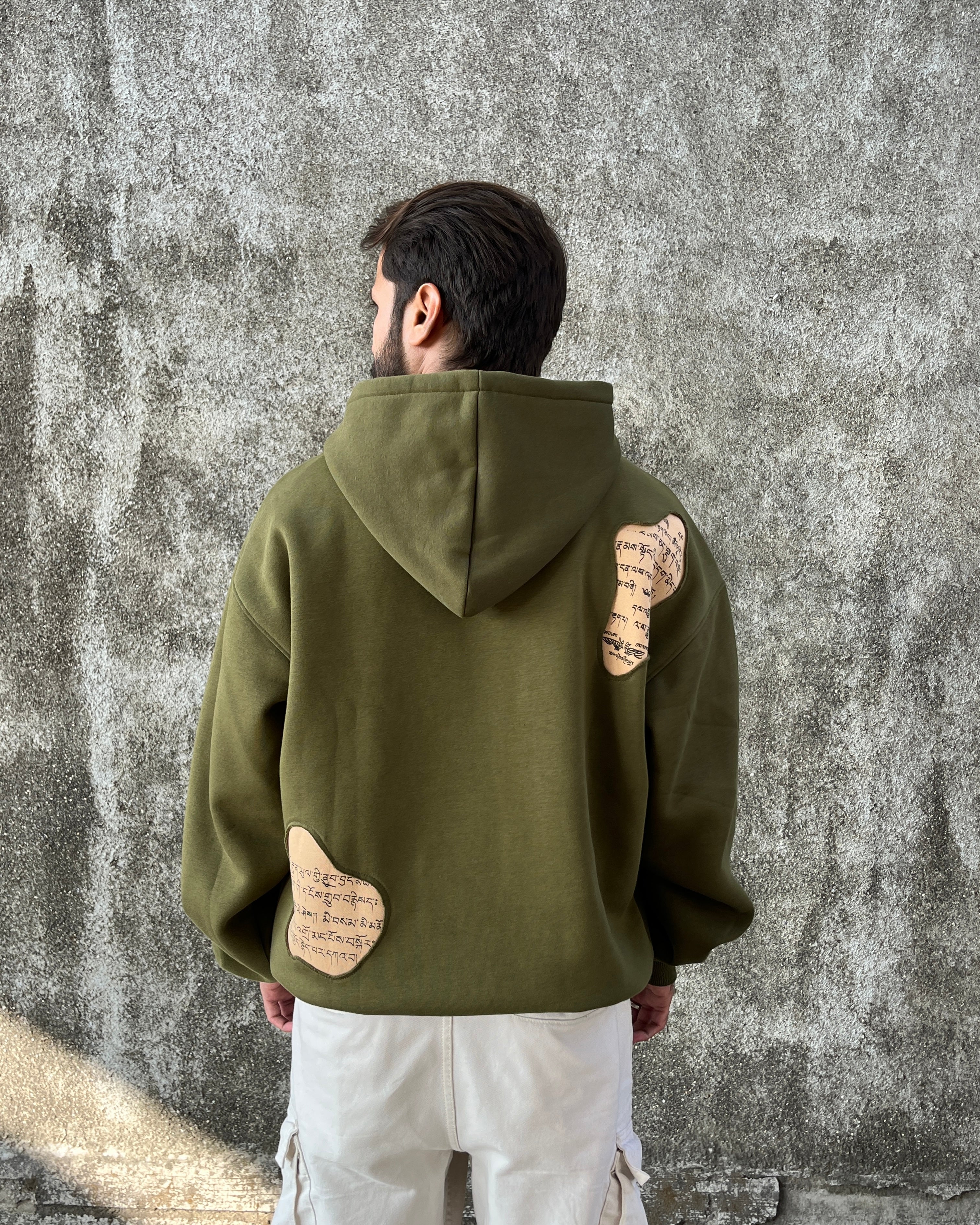 The Brahma Distressed Patchwork Hoodie is a testament to the art of labor-intensive craftsmanship. This oversized hoodie, crafted with premium 400 GSM fabric, merges comfort and storytelling in a single piece. The unique distressed treatment enhances its rugged aesthetic, creating a raw, lived-in look that embodies timeless individuality.