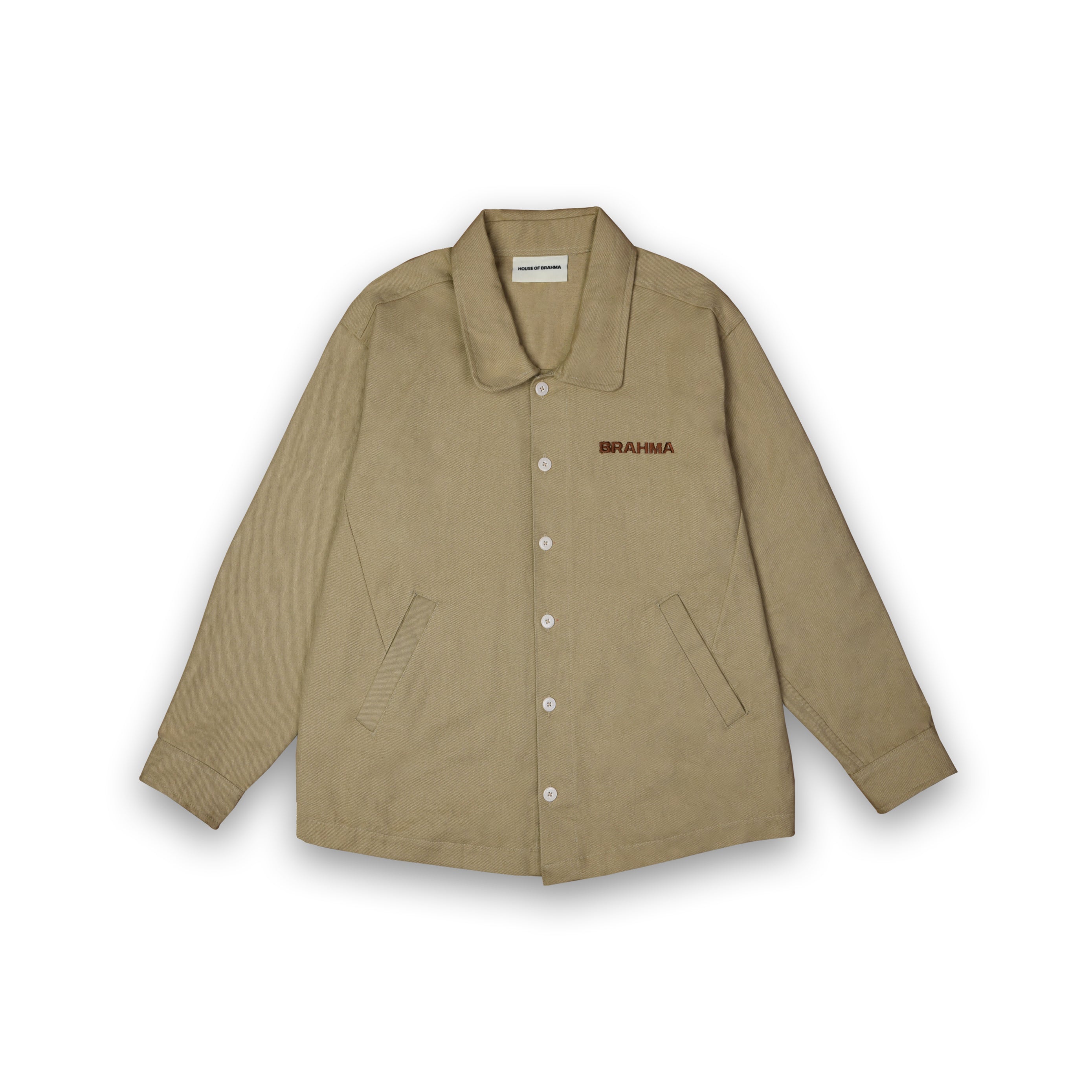 The Brahma - Beige Cotton Shacket is crafted from premium cotton, offering breathability and comfort for both light winter and summer wear. Its minimal design features the brand name Brahma embroidered on the chest, adding a touch of sophistication without overpowering the look. Versatile and effortlessly stylish, this basic shacket pairs seamlessly with any outfit, making it a timeless wardrobe staple for everyday wear.