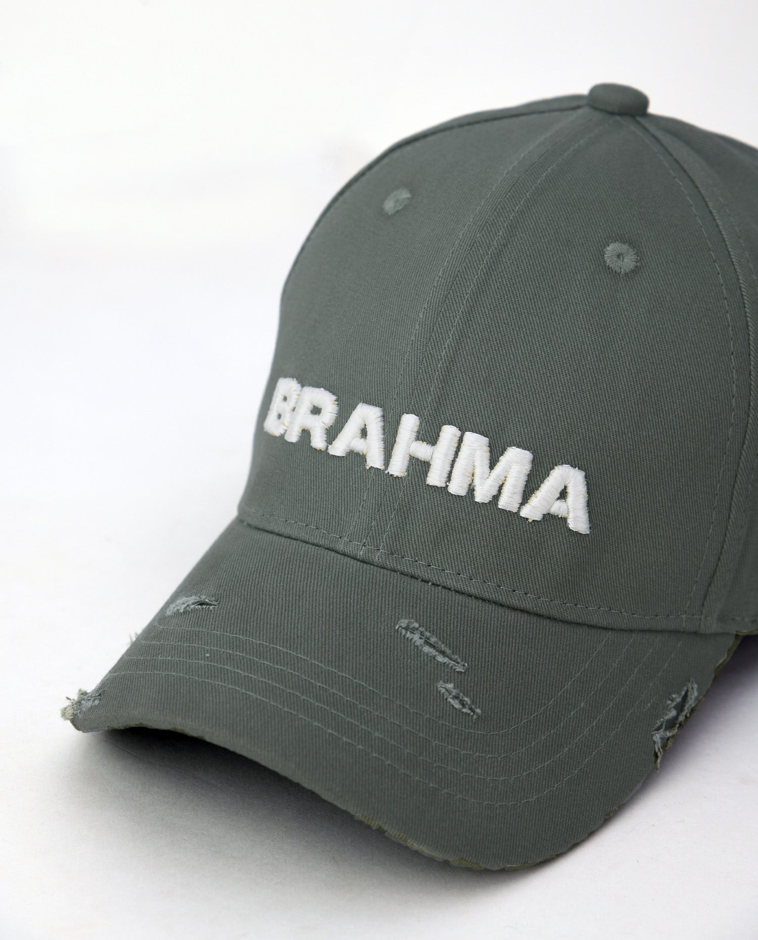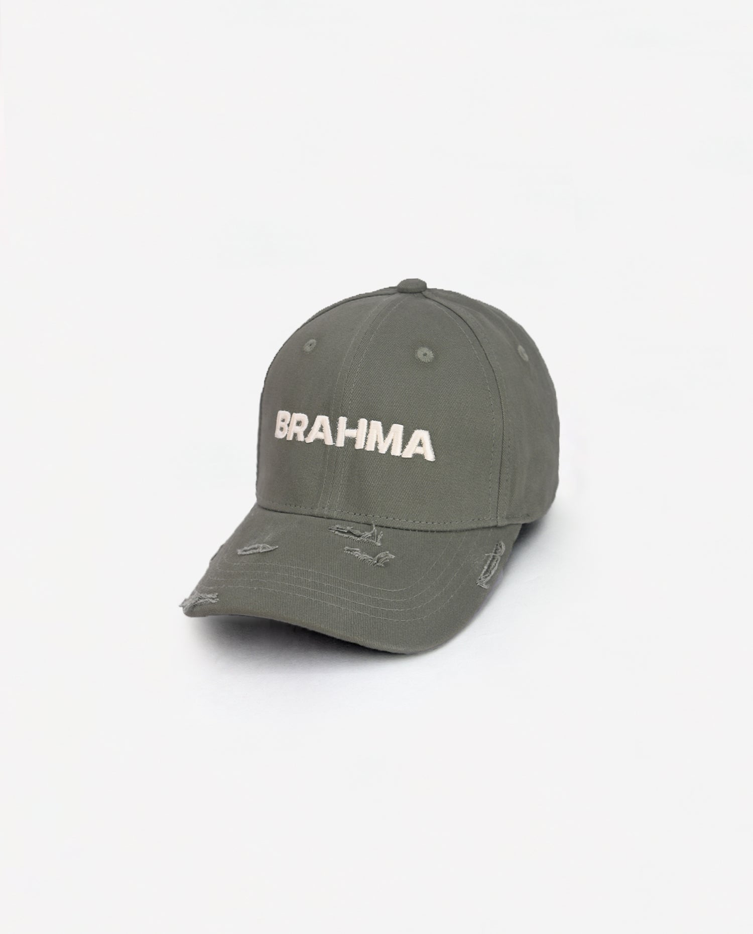 This Pele Olive Cotton Cap is a perfect blend of rugged aesthetics and timeless craftsmanship. Made from premium cotton fabric, it features hand-distressed details, ensuring that each cap is uniquely crafted with its own raw, worn-in character. The front is adorned with a bold 3D embroidered "Brahma" artwork in off-white, creating a striking contrast against the muted olive tone. With its one-of-a-kind distressing and earthy appeal, this cap is designed for those who embrace individuality and effortless style.