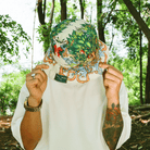 This recycled bucket hat features an all-over print by Santanu Hazarika, inspired by the flora and fauna of Odisha’s mangroves. Bold, vibrant, and rooted in symbolism, the artwork blends myth and environment to create a wearable piece of storytelling.