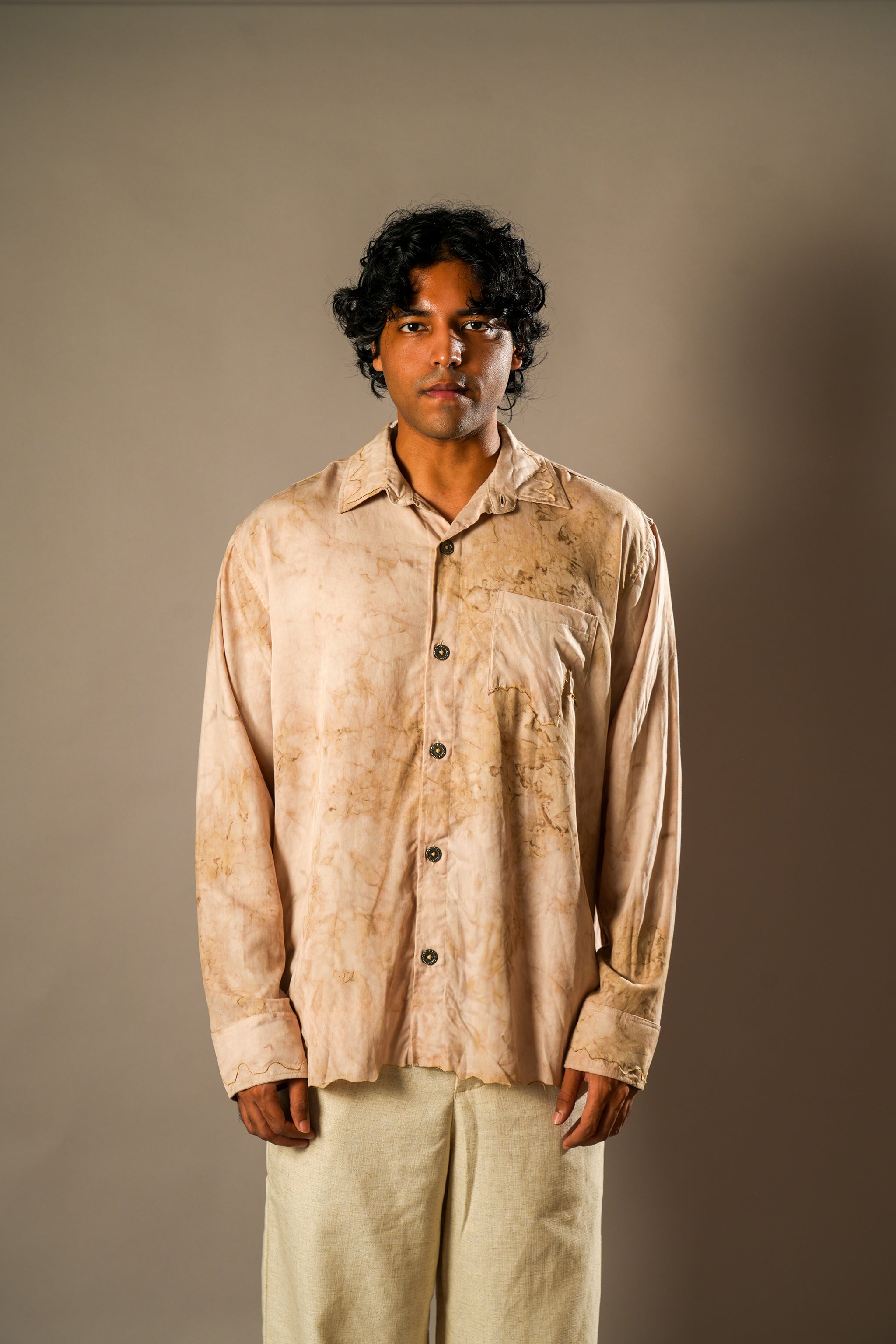 Design - A burnt-effect shirt where no two pieces are alike.