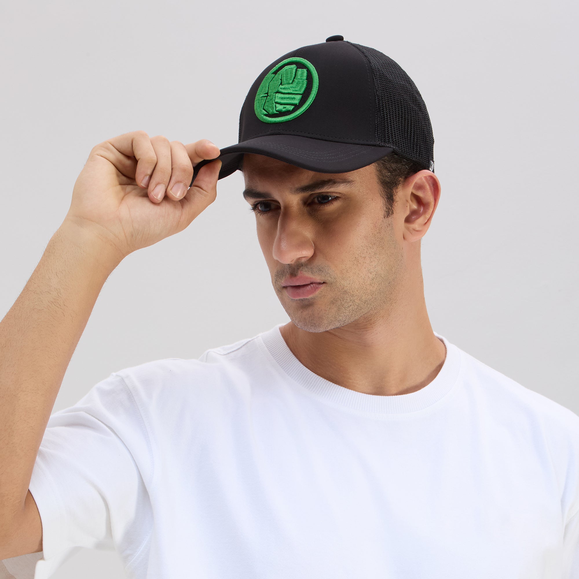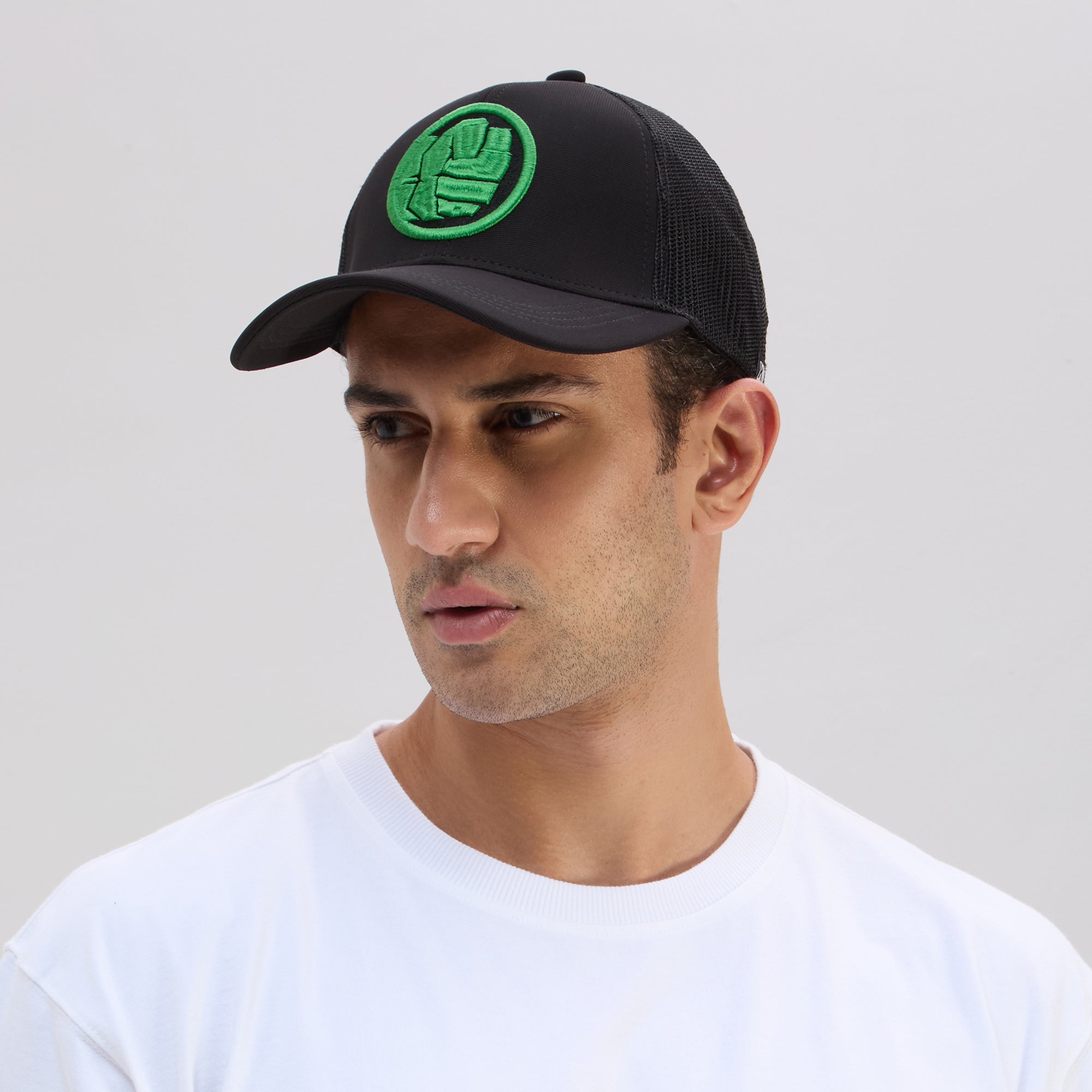 | Smash your look with the BZ Headwear Hulk Trucker Cap. Featuring a bold green embroidered Hulk fist on a classic black base, this cap channels power and style. Made for everyday comfort, it sports a curved visor, structured crown, and breathable mesh—built for fans who stay strong, loud, and proud. |