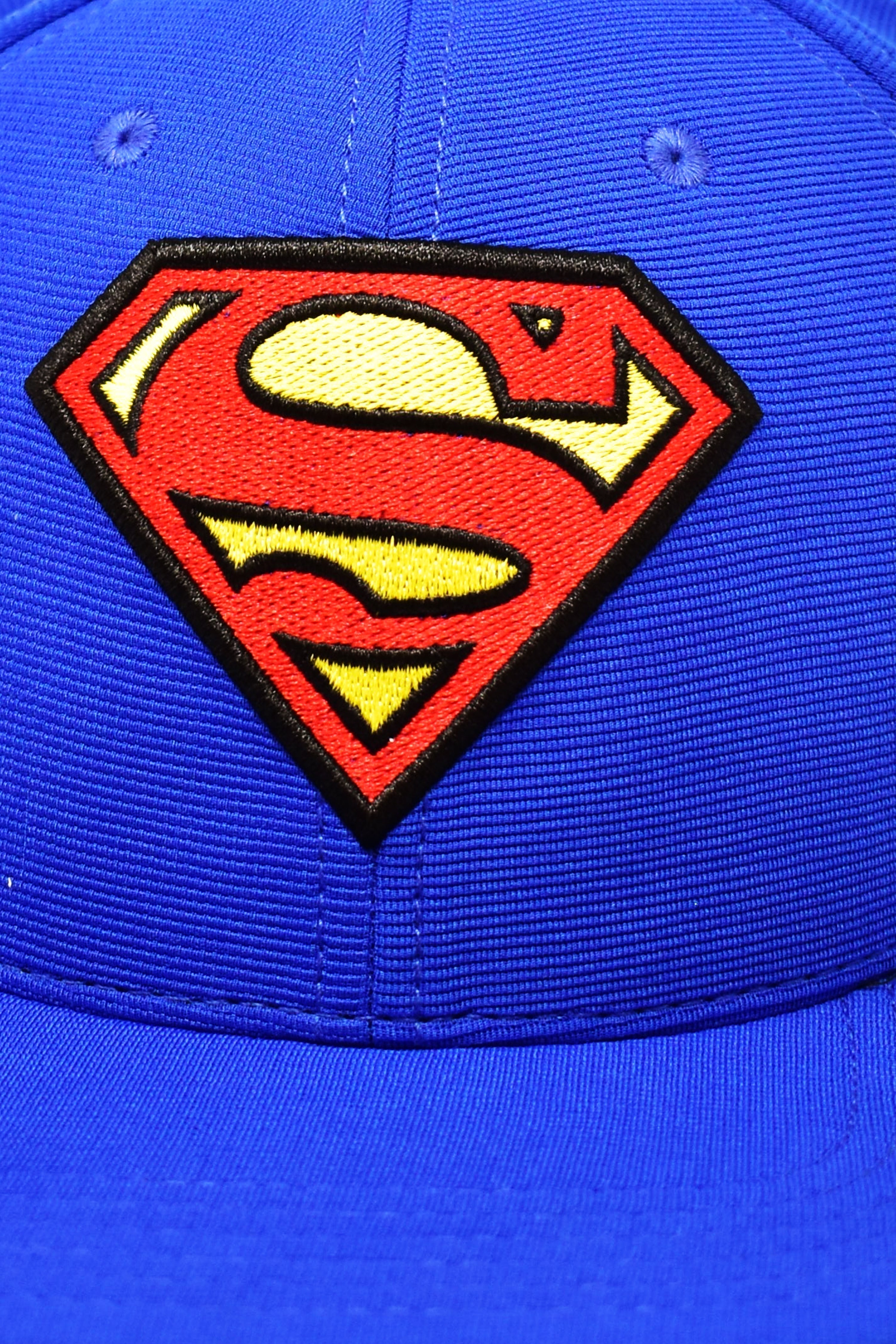 Product Color: Royal Blue, 3D embroidered SUPERMAN logo on the front side in black, red, and deep yellow