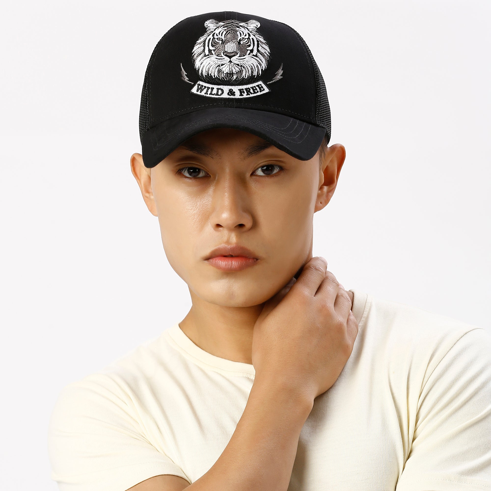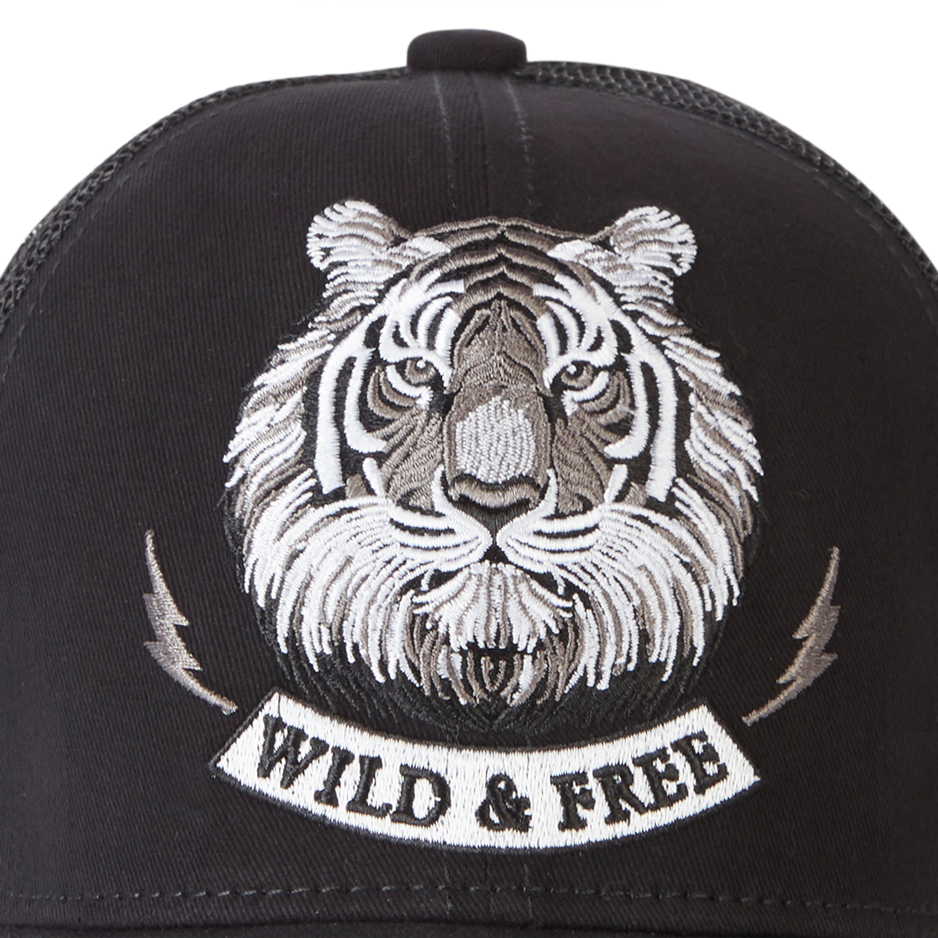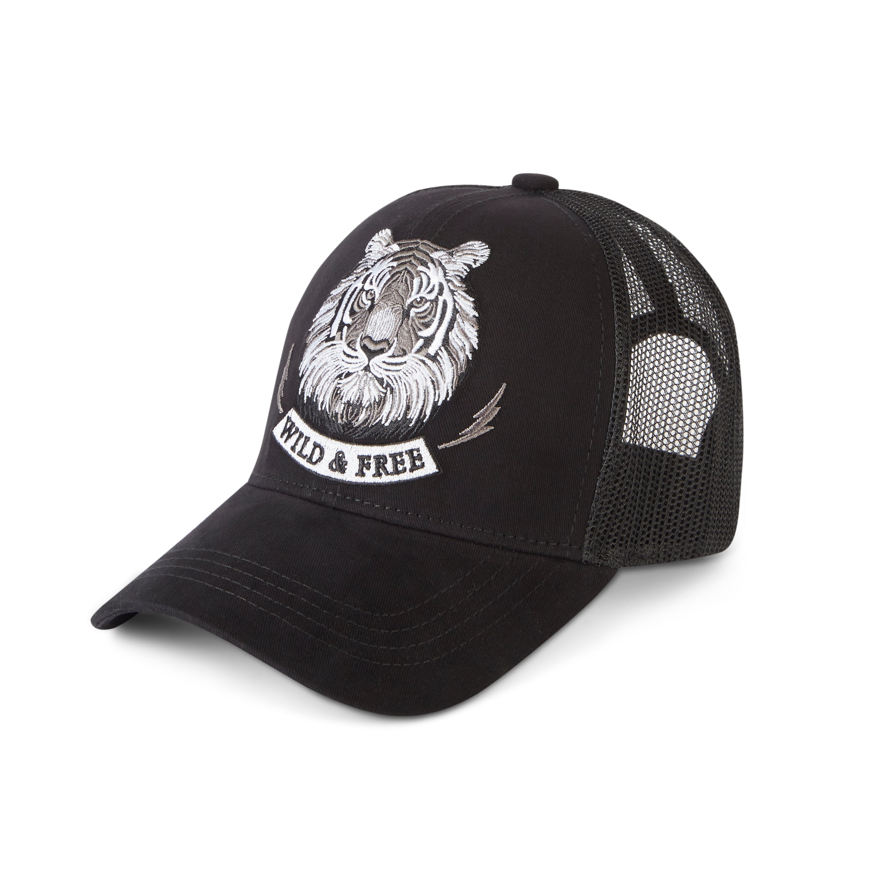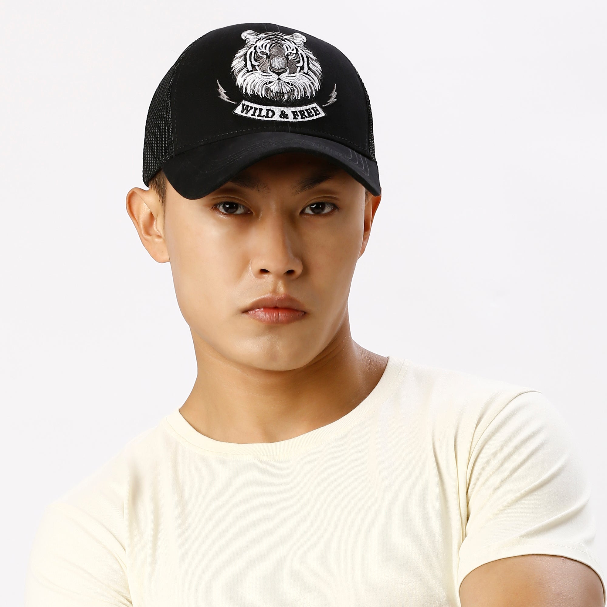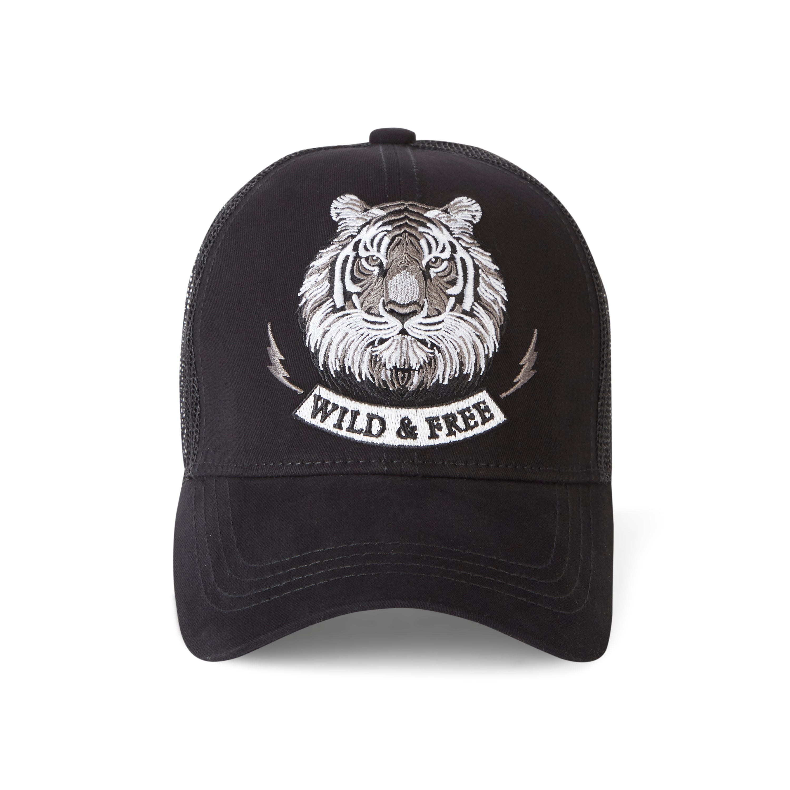 Design: The cap showcases intricate embroidered detailing of a tiger, symbolizing strength and freedom. The classic black hue enhances the white embroidery, making it stand out with bold contrast.