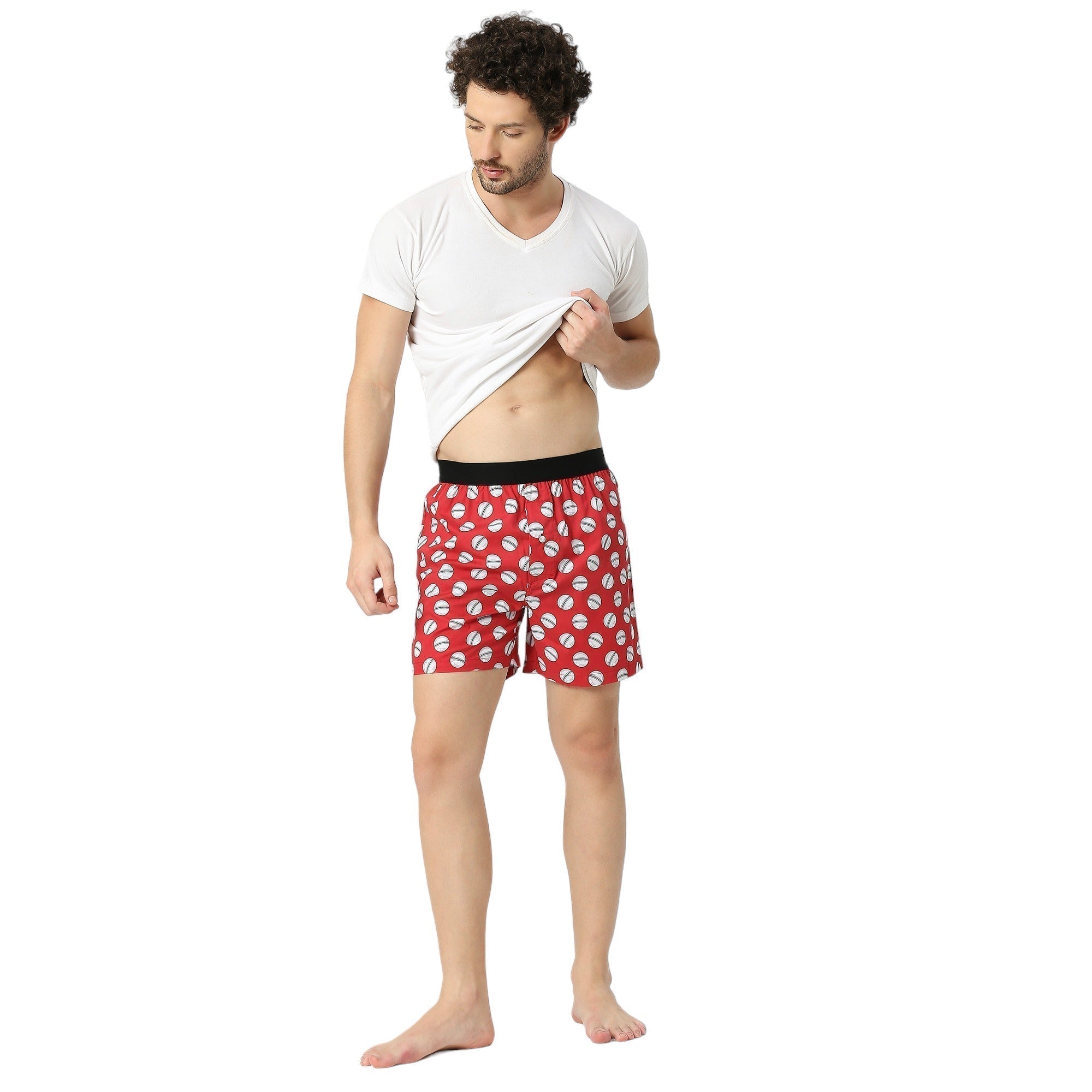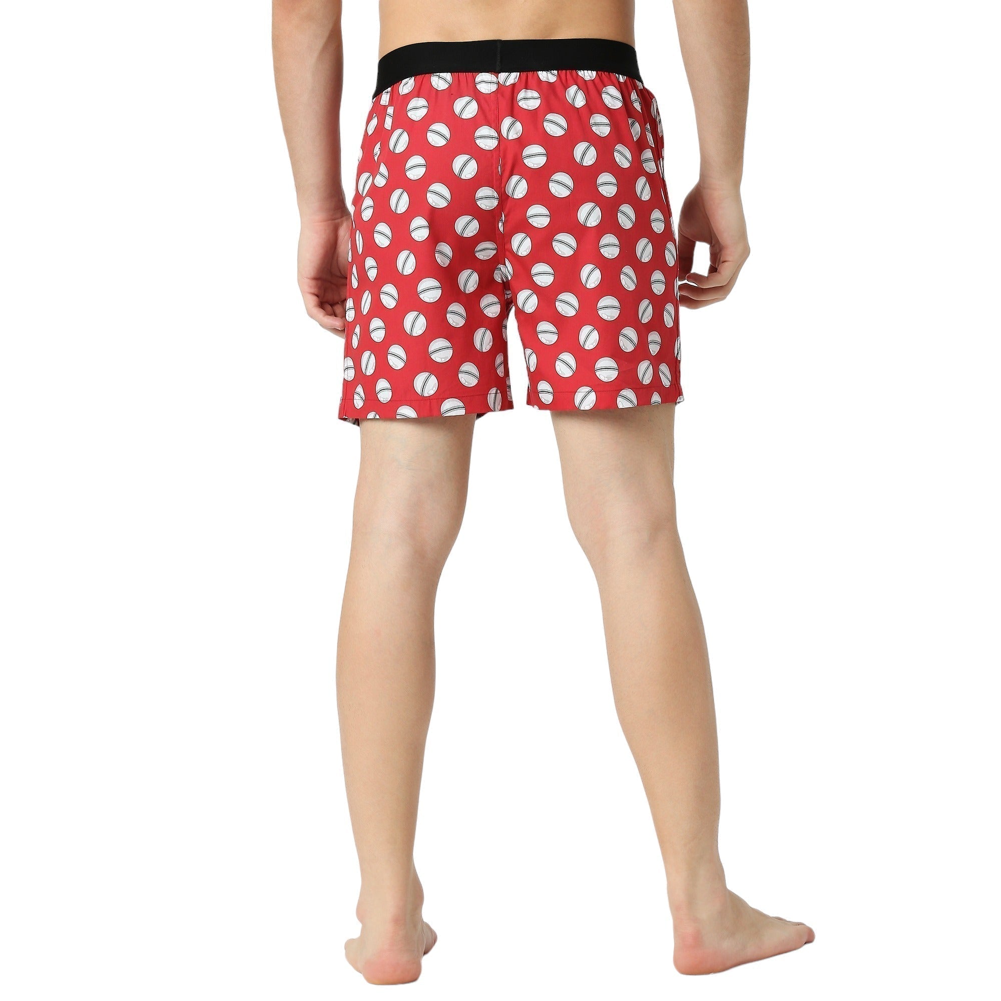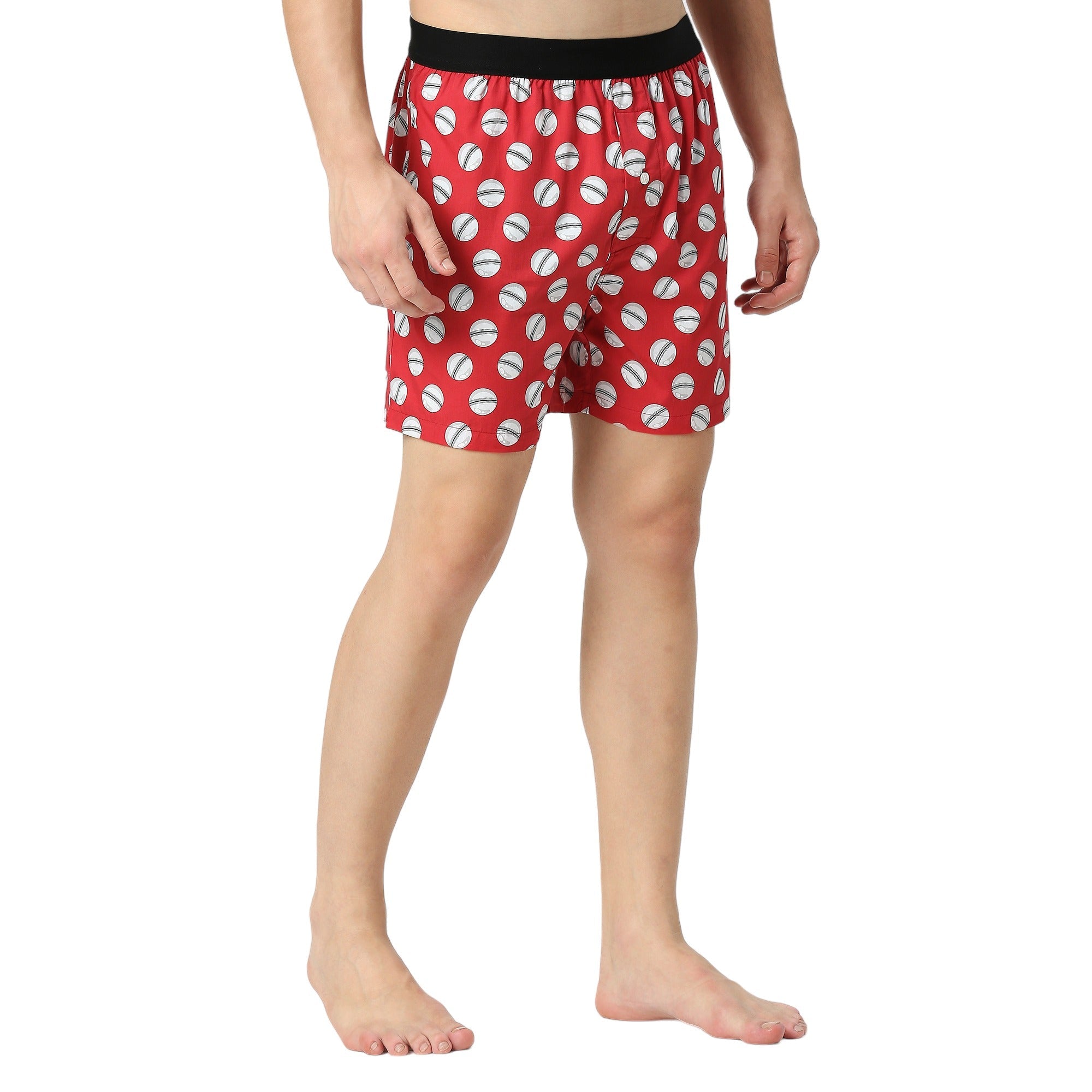 Elevate your innerwear collection with BZ Innerwear's Cricket-Men's Boxer, featuring a vibrant red base adorned with pristine white cricket balls, capturing the essence of the sport.