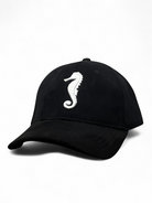 This is THE SEA HORSE signature cap. Premium black suede with 3D embroidery featuring our brand logo. The cap is so elegant and minimal classic.