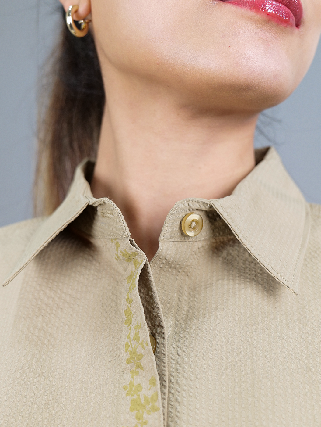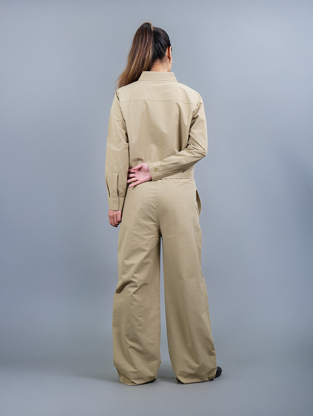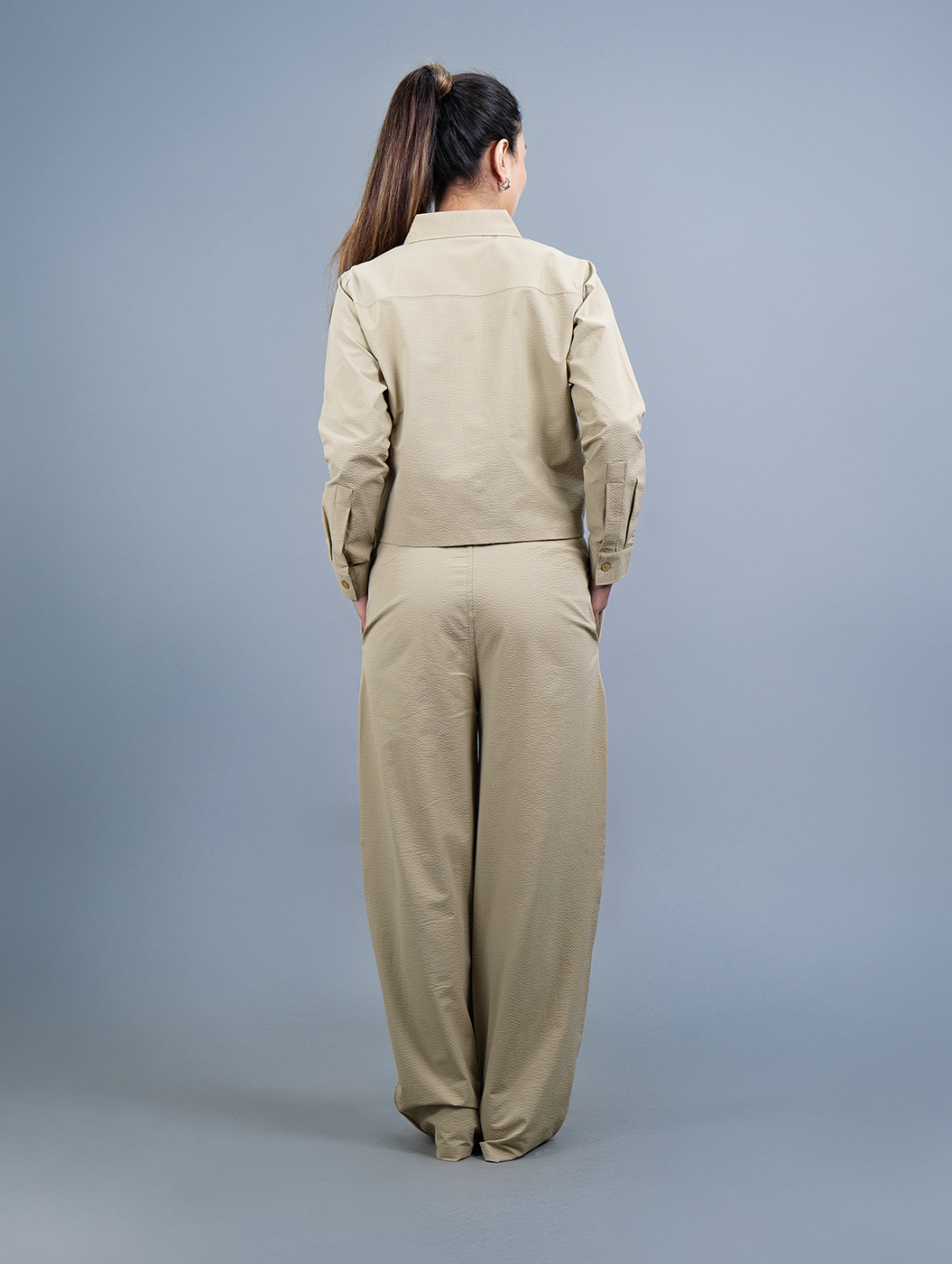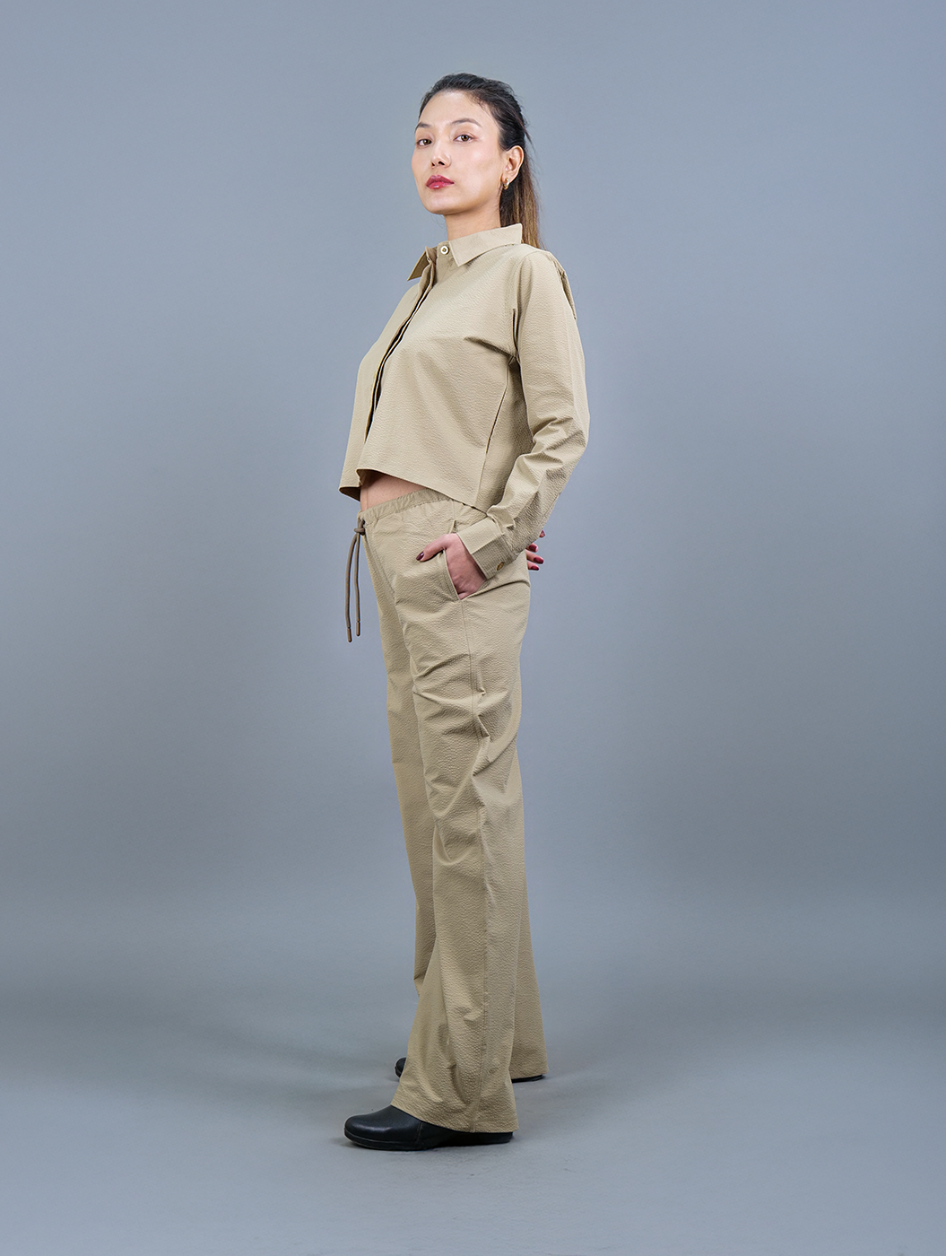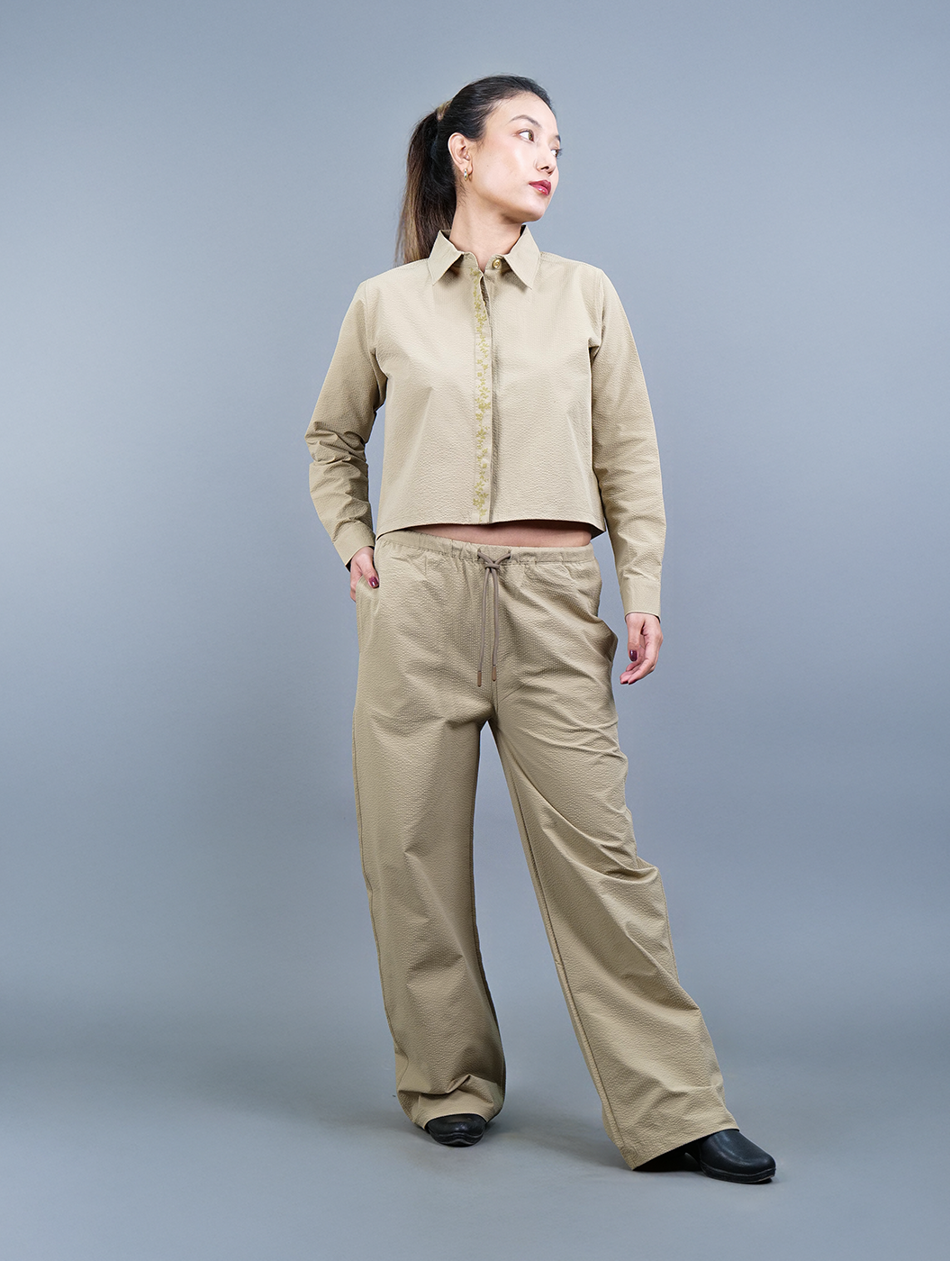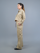 Caramel - Beige Cropped Shirt Women Co-ord Set