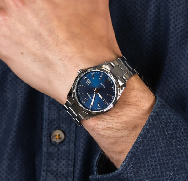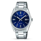 The Casio MTP-302PD-2AVEF combines classic watchmaking with contemporary appeal. This men's timepiece showcases a striking blue dial that captures attention while maintaining understated elegance. Built with a durable stainless steel case and bracelet, it withstands the rigors of daily life. The quartz movement ensures consistent accuracy, while water resistance provides practical protection for everyday use. Ideal for those seeking a reliable watch that balances style with functionality, this Casio model represents excellent value for discerning collectors and everyday wearers alike.