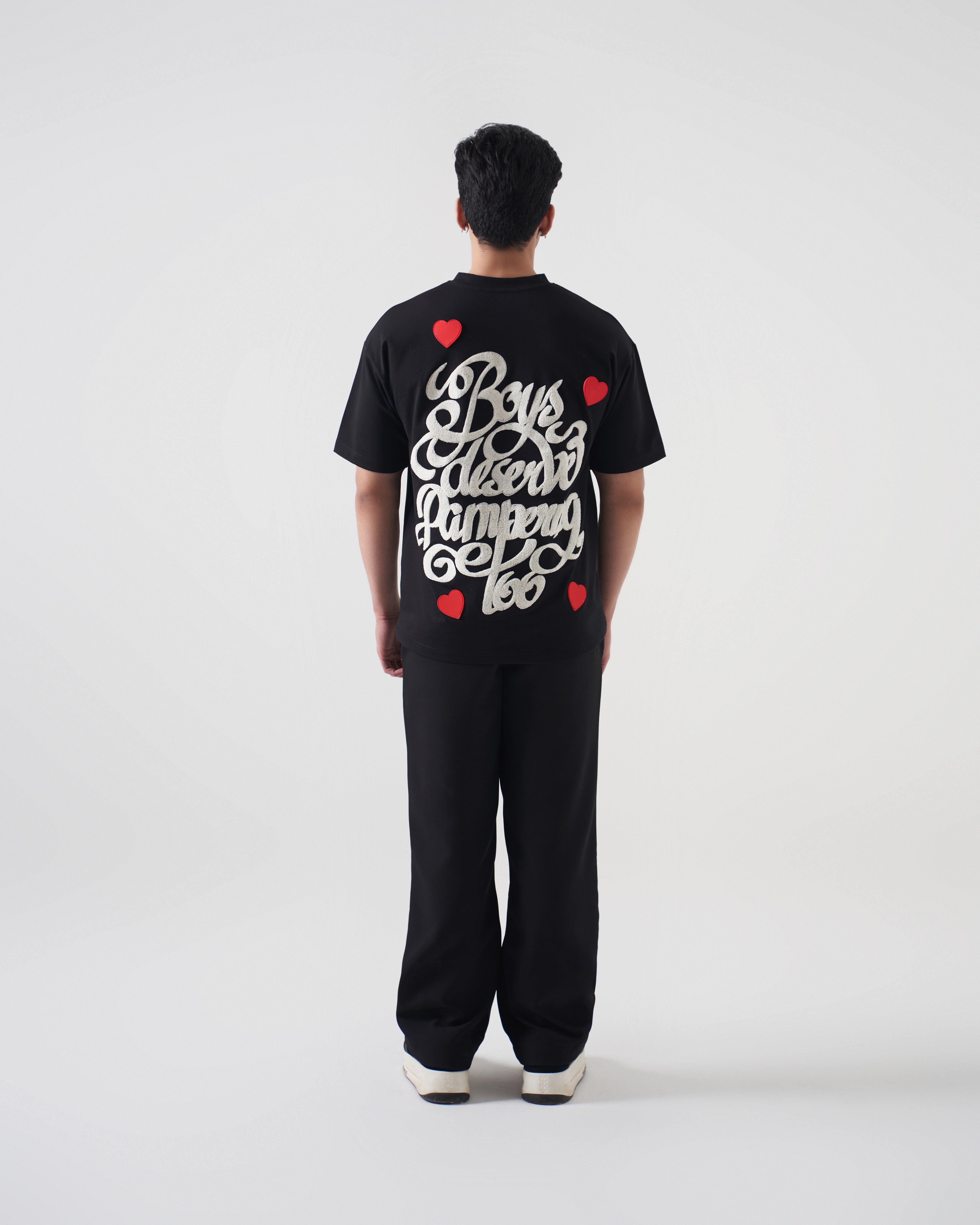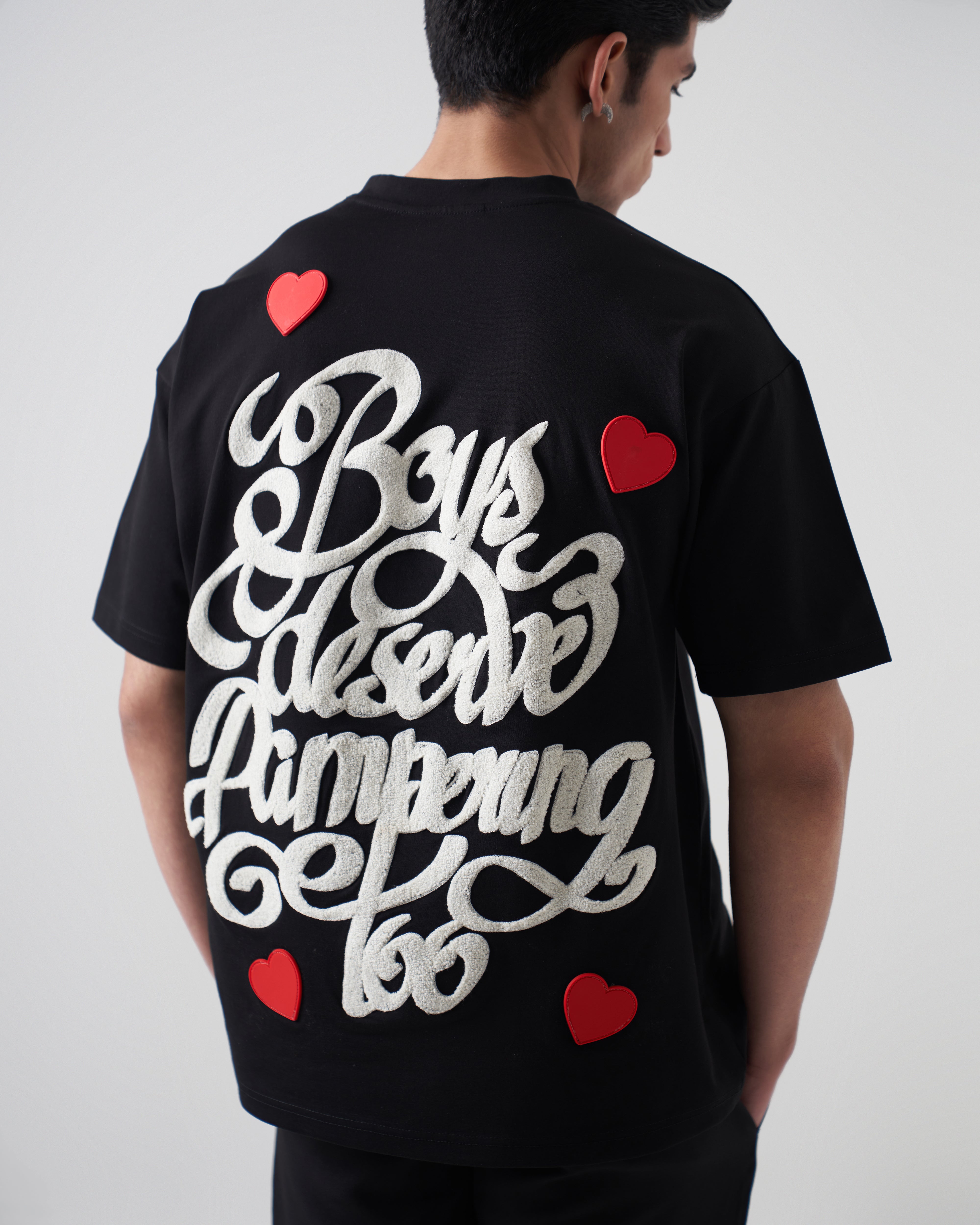 - EMBROIDERED ARTWORK ON THE FRONT WITH TOWEL EMBROIDERY AND HEART SILICONE PATCHES ON THE BACK
