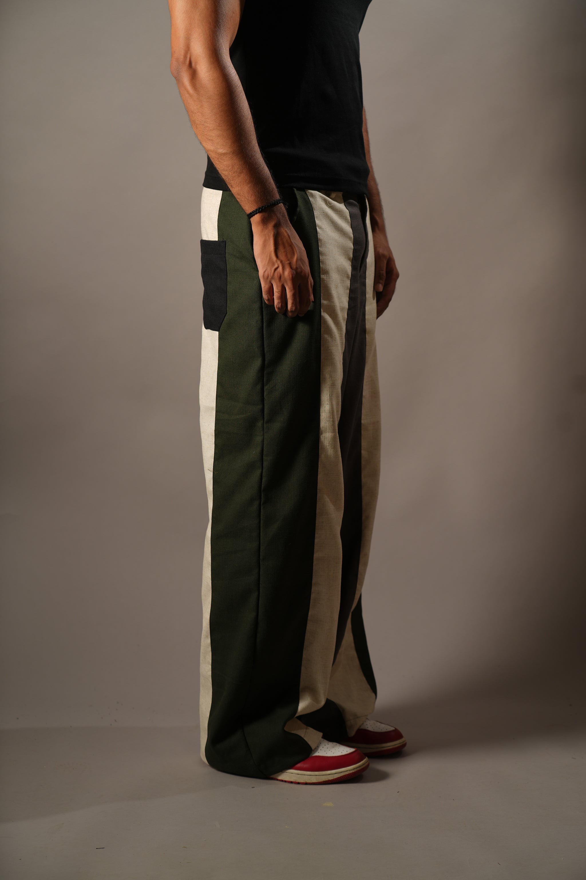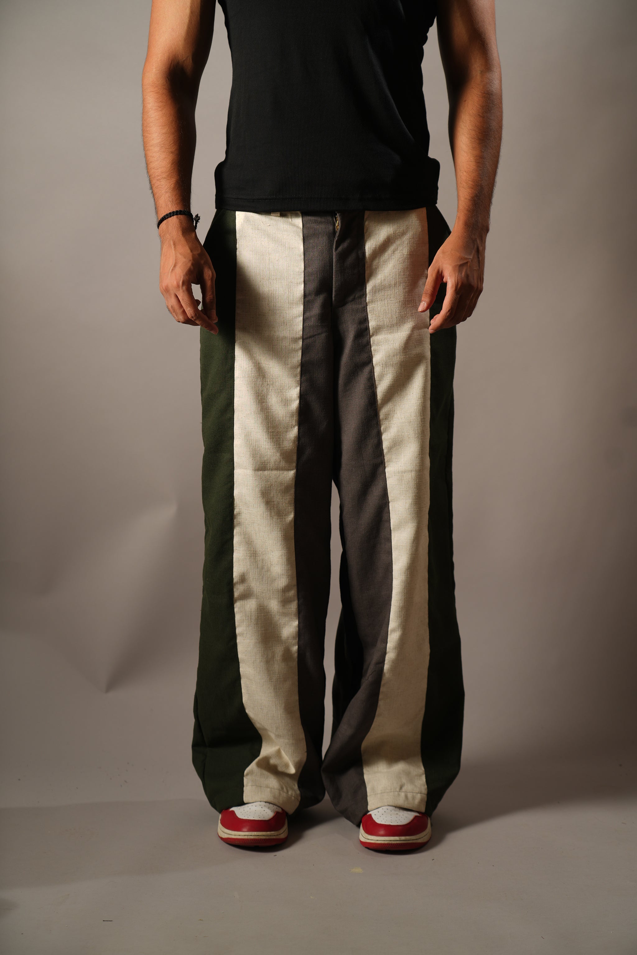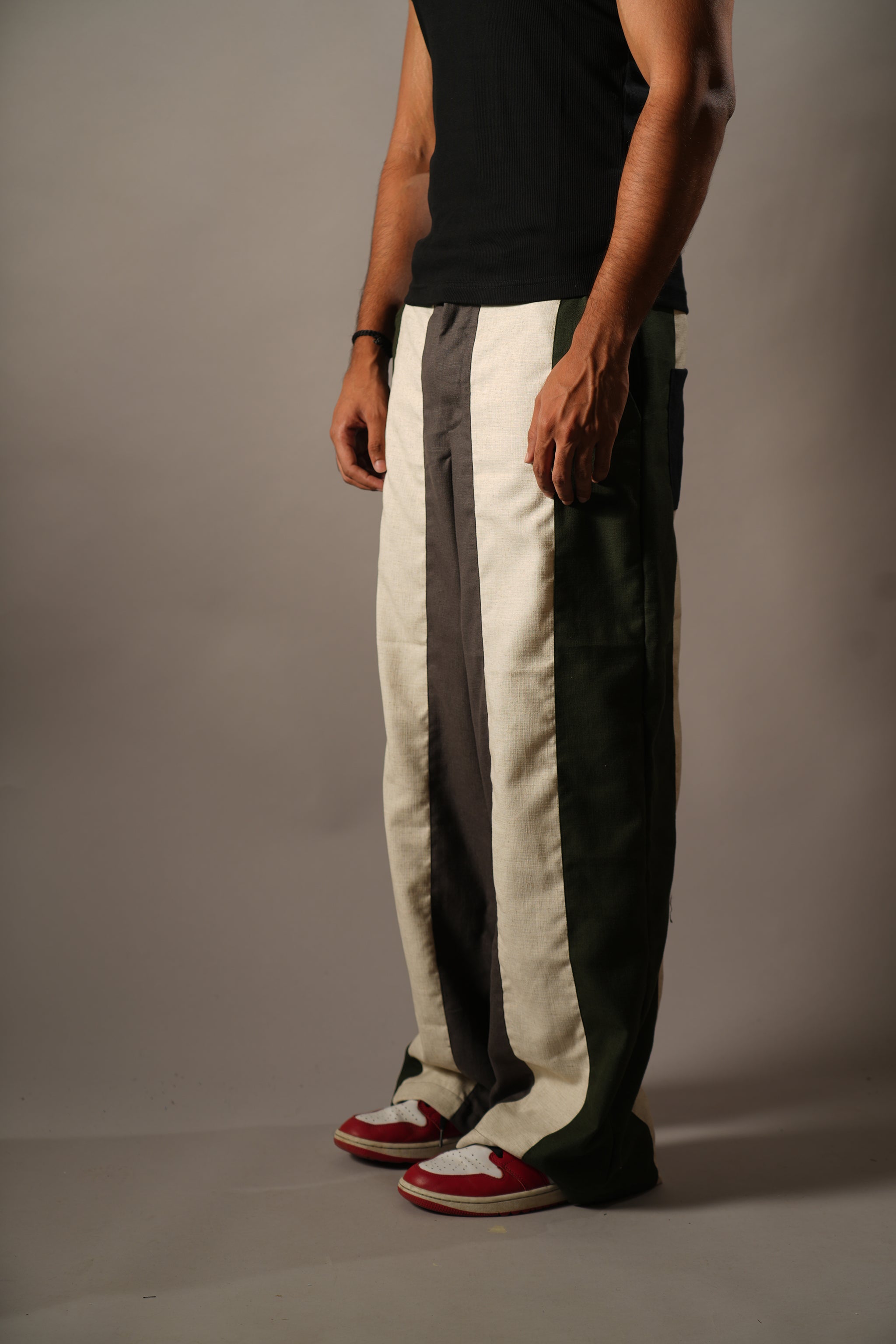 Design -  4-panel linen trousers with bold 4" stripes and endless styling options.