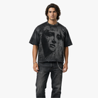 Heavy charcoal washed tee with an all-over women’s graphic print exploding across the front for maximum emotional impact. The back delivers the knockout: massive HD-printed wings framing the central F logo, symbolizing rise, freedom, and unbreakable spirit. Metal accessories on the neck rib add industrial grit, while the distressed bottom hem screams lived-in rebellion. Street-ready statement piece for those who move with purpose.