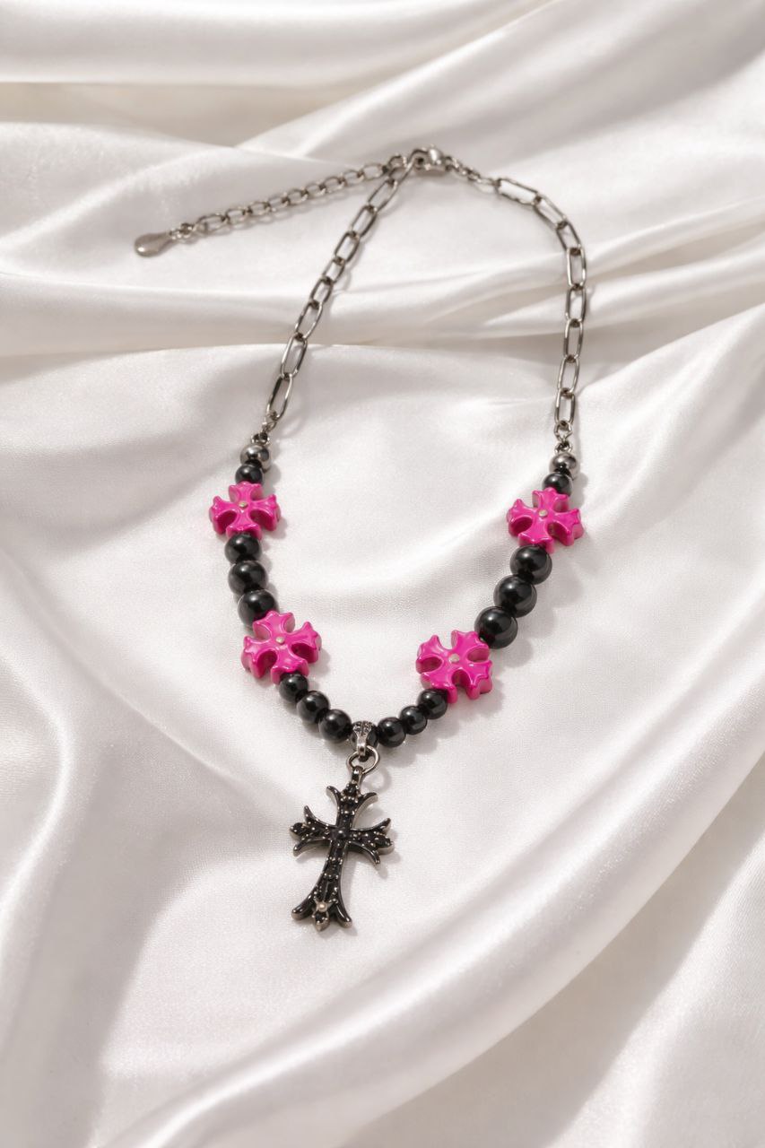 Chrome Heart Black and Pink Necklace