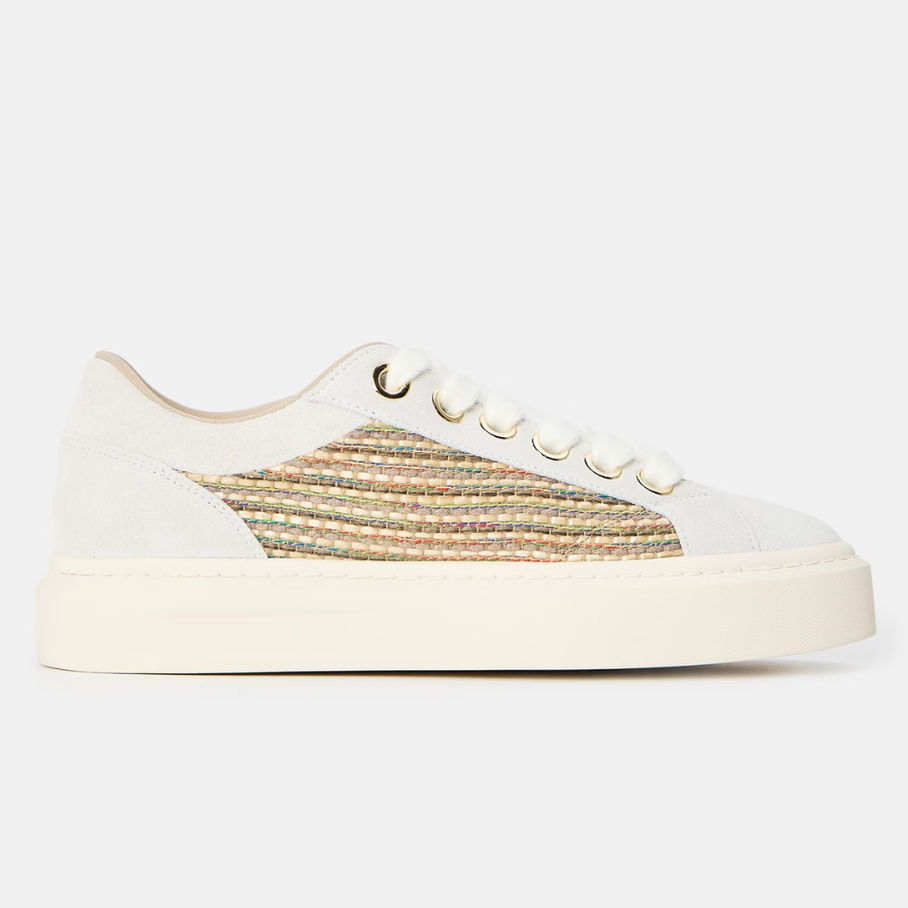 The Cleens Ace Sneakers deliver understated sophistication with a design that transitions seamlessly from urban exploration to elevated occasions. The iconic logo placement on the tongue and insole signals authentic craftsmanship, while the round toe and low-top silhouette maintain a timeless appeal. Spanish raffia panels introduce distinctive textural contrast, elevating the sneaker beyond conventional styling. This grey iteration pairs effortlessly with both casual and refined wardrobes, offering versatility without compromise. Consult the care label for composition details and maintenance guidance to preserve the shoe's quality and appearance.
