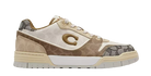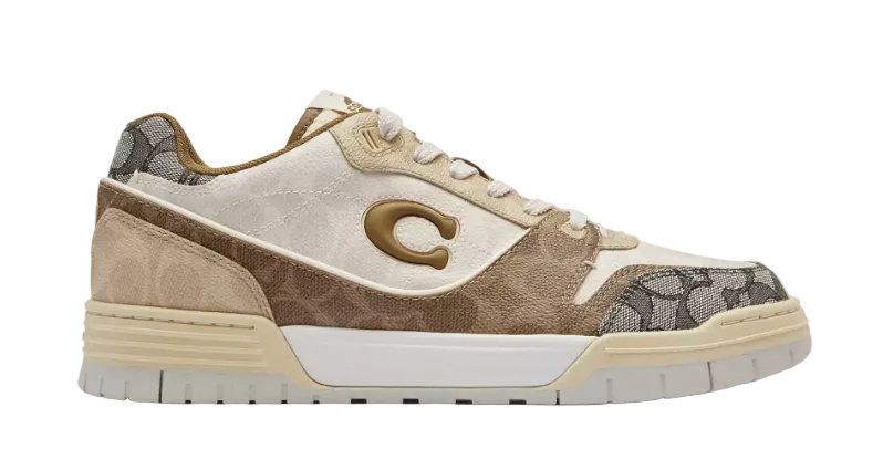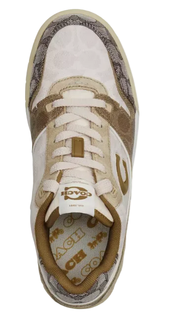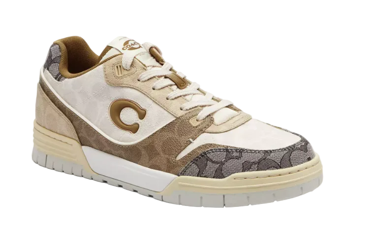 The Coach Soho Sneaker channels the bold energy of New York City with contemporary design and sustainable craftsmanship. Built from mixed Signature coated canvas and jacquard, this lace-up sneaker features a responsive EVA midsole containing at least 28% bio-based content derived from renewable sources. The fabric lining and cushioned footbed deliver all-day comfort, while the grooved rubber outsole—detailed with a Manhattan map—adds distinctive character. Engineered for urban movement, this versatile silhouette balances style with environmental responsibility, making it an intelligent choice for the conscientious traveler.