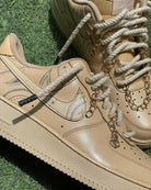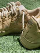 OG AF1s double-dipped in Coffee to give your outfit the caffeine boost it needs. Our Bandana Coffee AF1s come with a perfectly hand painted grey paisley pattern and are paired with 4mm rope laces and mini gold loops. Oh, and they smell like coffee too. Cop your Freshly brewed pair of Air Forces ASAP.