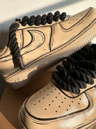 OG AF1s double-dipped in Coffee to give your outfit the caffeine boost it needs.Our Coffee AF1s come with black dash accents along the entire shoe and are paired with our fan favourite black chunky rope laces. Oh, and they smell like coffee too. Cop your Freshly brewed pair of airforces ASAP.