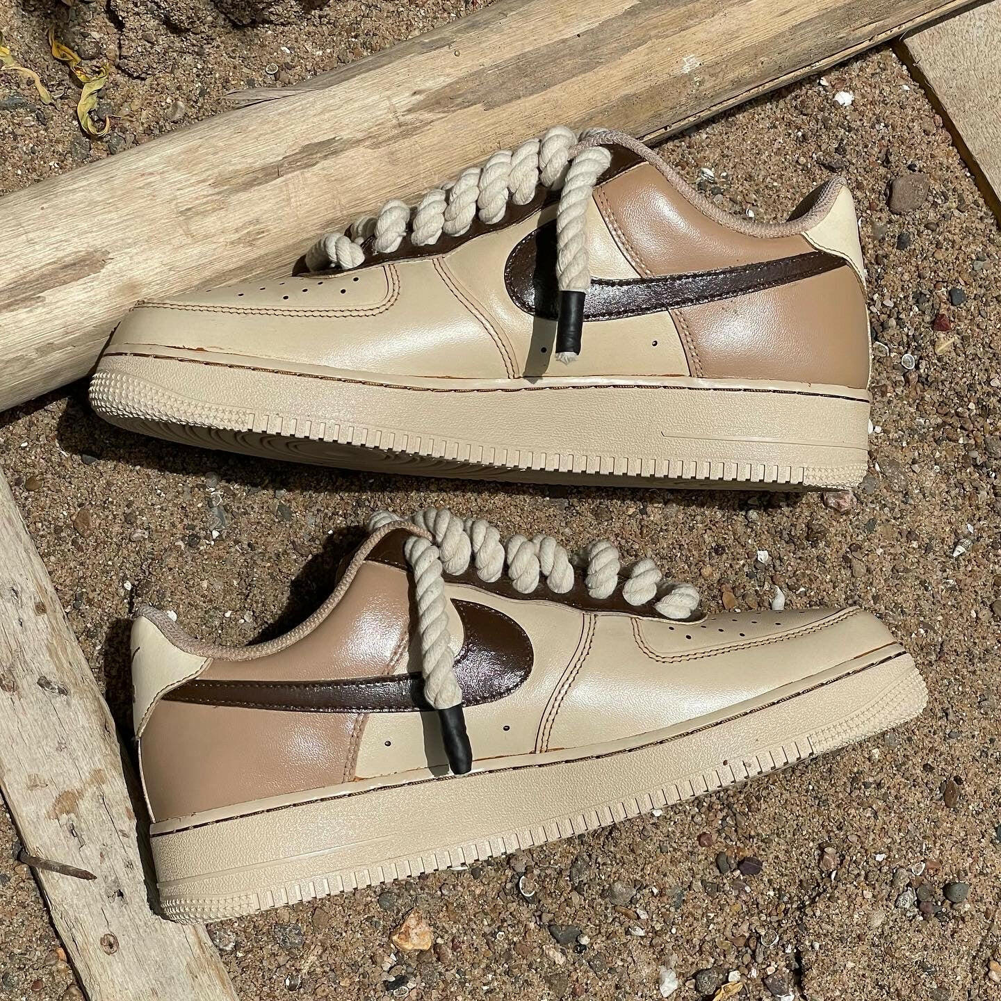 OG AF1s double-dipped in Coffee to give your outfit the caffeine boost it needs. Perfectly hand-painted Swoosh, Foxing and Backtab along with our fan favourite chunky rope laces create a beautiful fusion of our mocha palette on your feet. Oh, and they smell like coffee too. Cop your Freshly brewed pair of airforces ASAP.