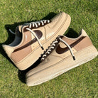 OG AF1s double-dipped in Coffee to give your outfit the caffeine boost it needs. Perfectly hand-painted Swoosh, Foxing and Backtab along with our fan favourite rope laces create a beautiful fusion of our mocha palette on your feet. Oh, and they smell like coffee too. Cop your Freshly brewed pair of airforces ASAP.