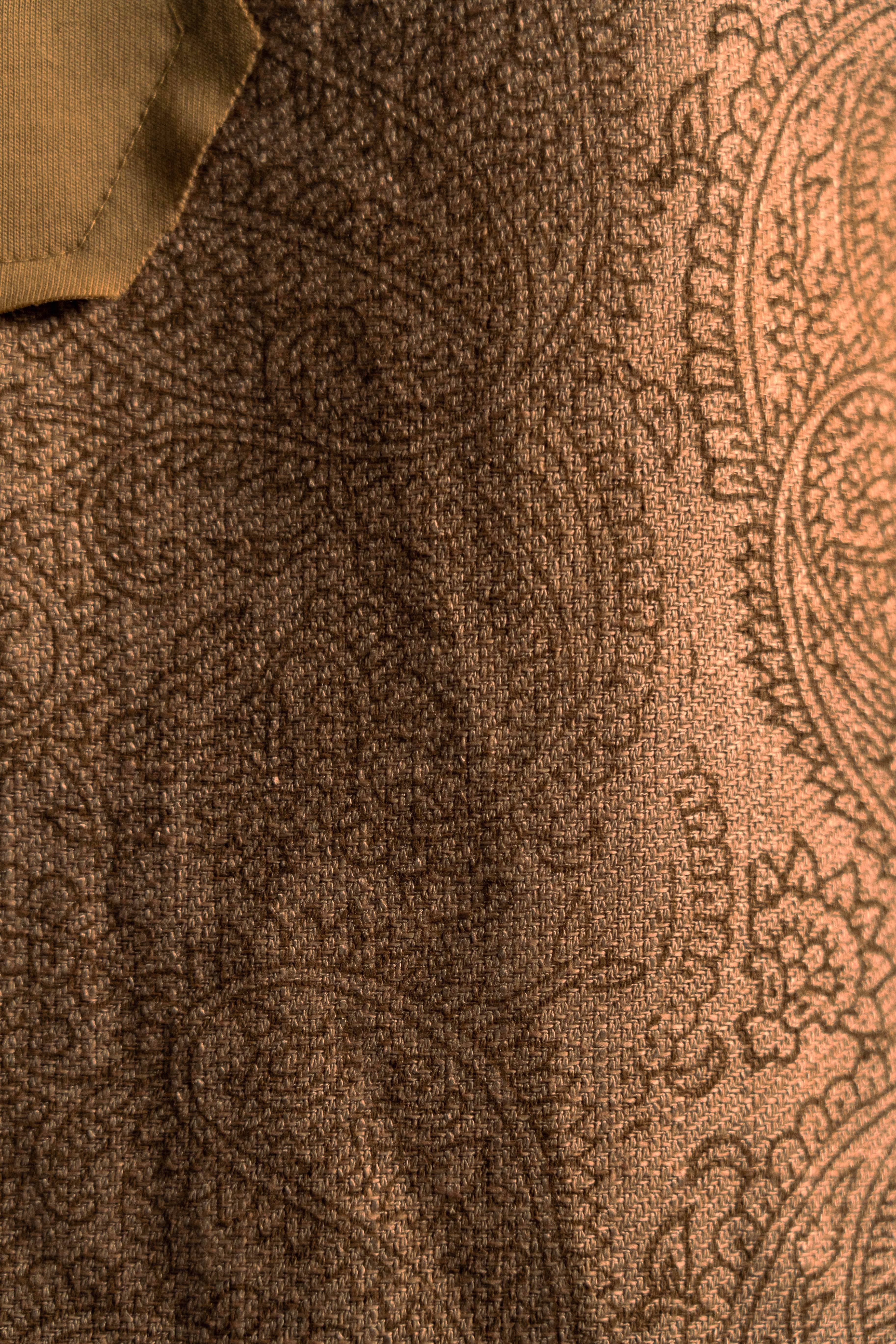 intricate block prints and made from sustainable jute fabric in coffee shade. This unique