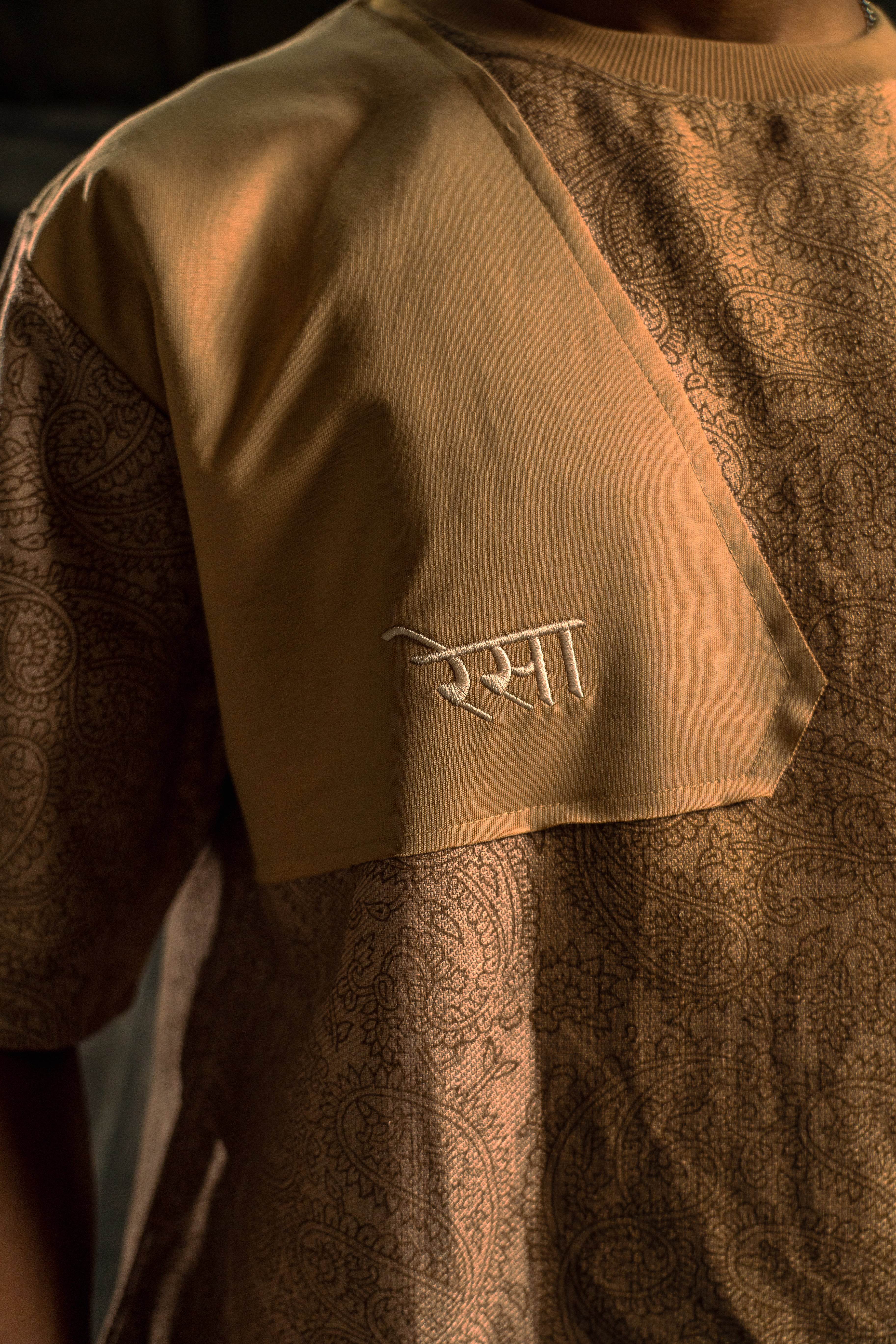 piece features a distinctive patchwork on the chest establishing RESA’s distinguished design language and is complemented by elegant 'रेसा ’ embroidery.