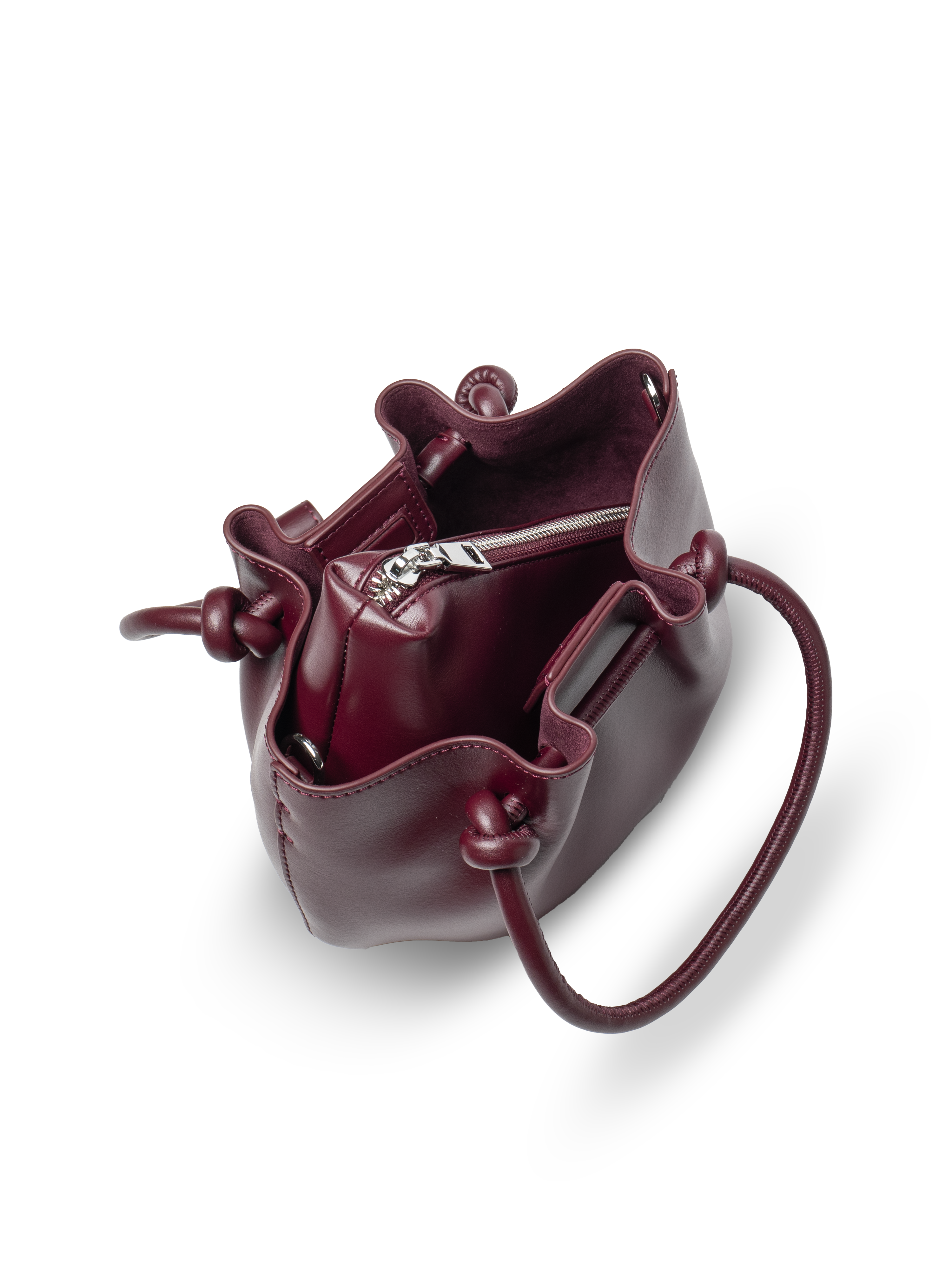 Corda - Ladies Leather Handbag With Knotted Handle I Wine Red