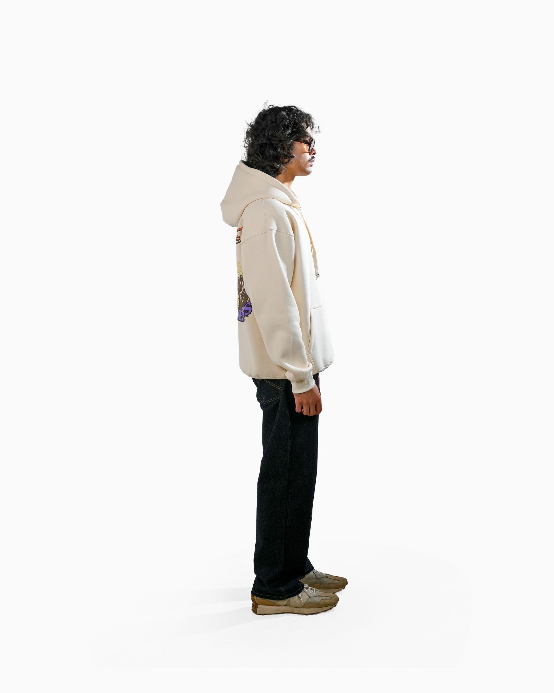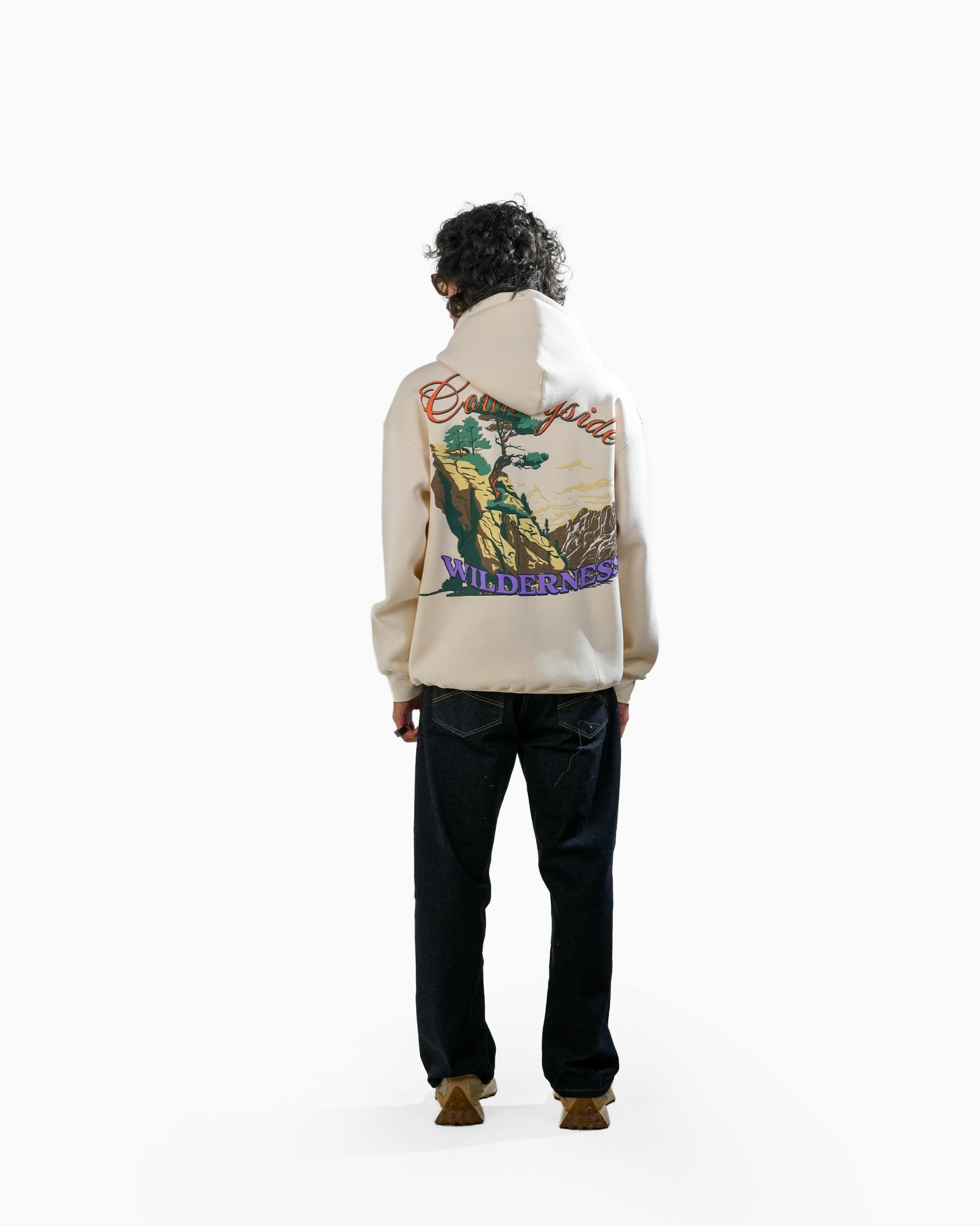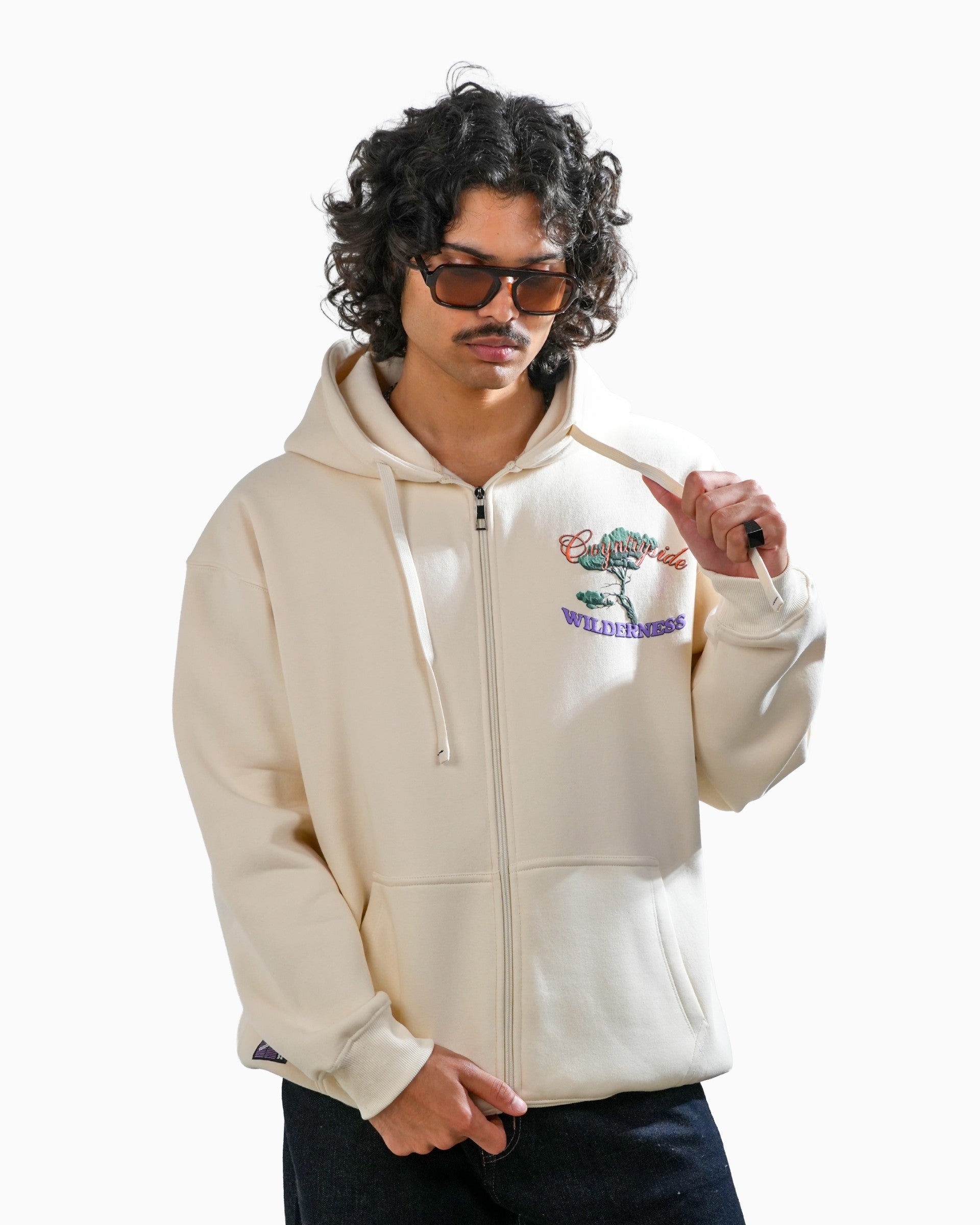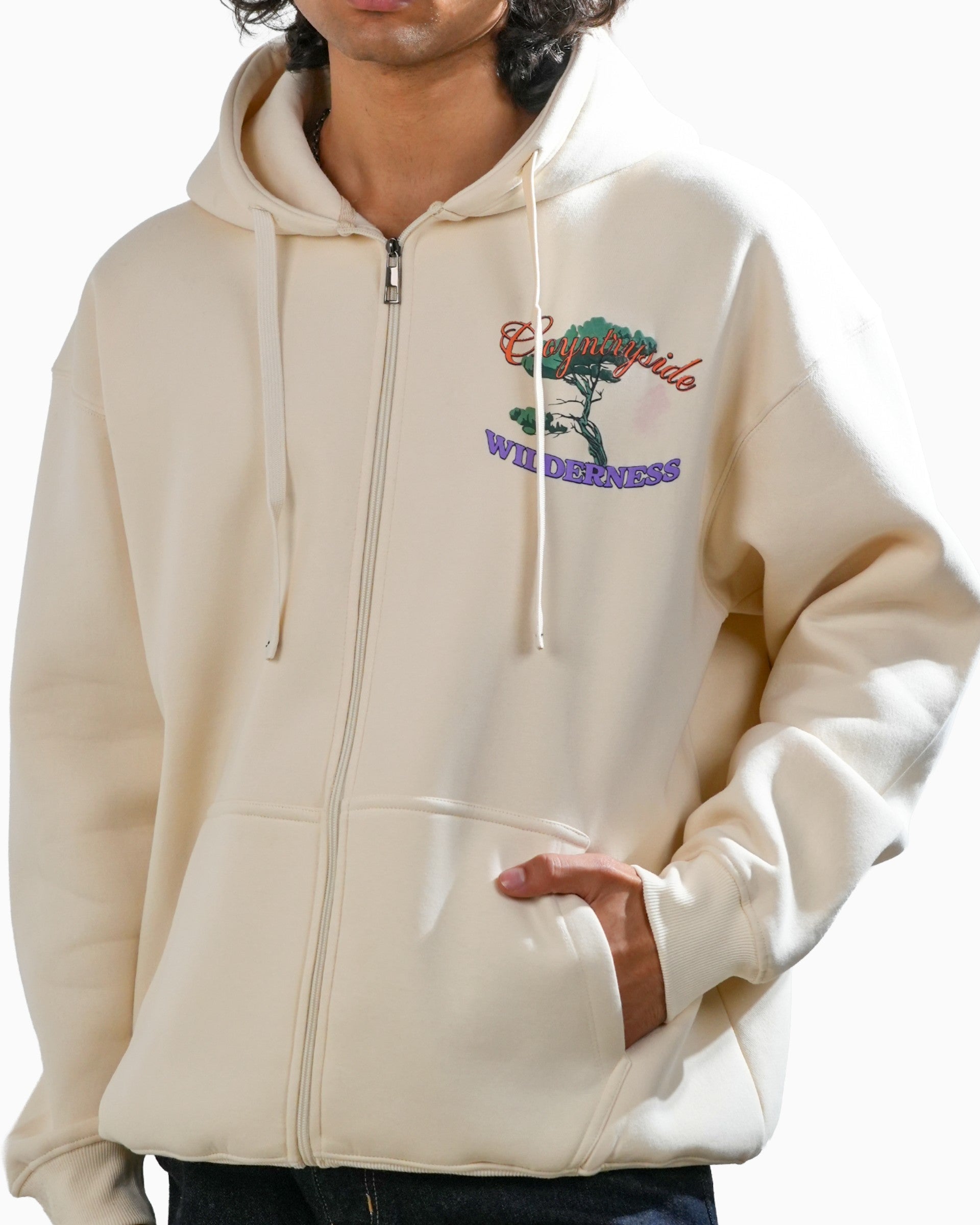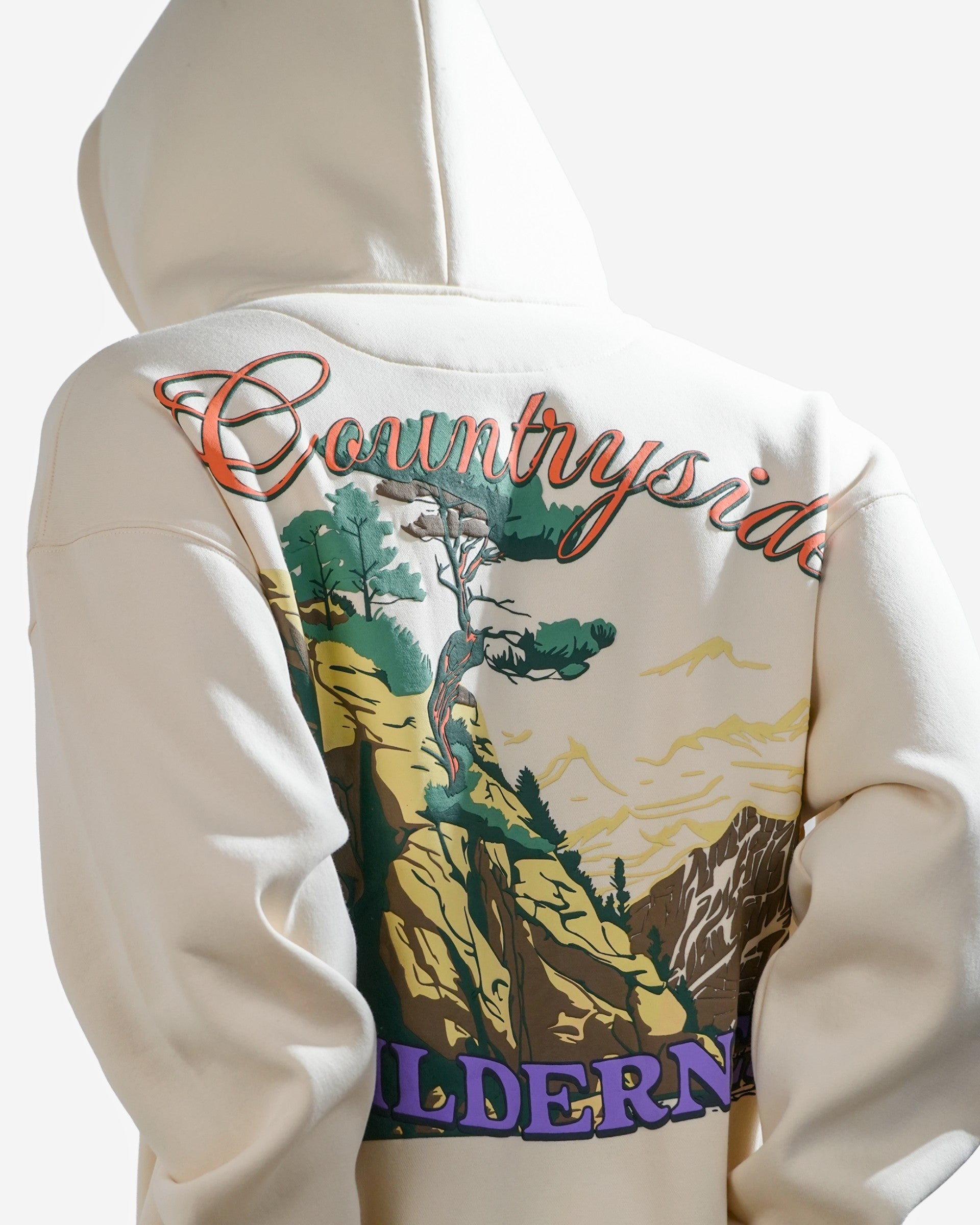 Countryside Wilderness - Off White Printed Oversized Zipper Hoodie