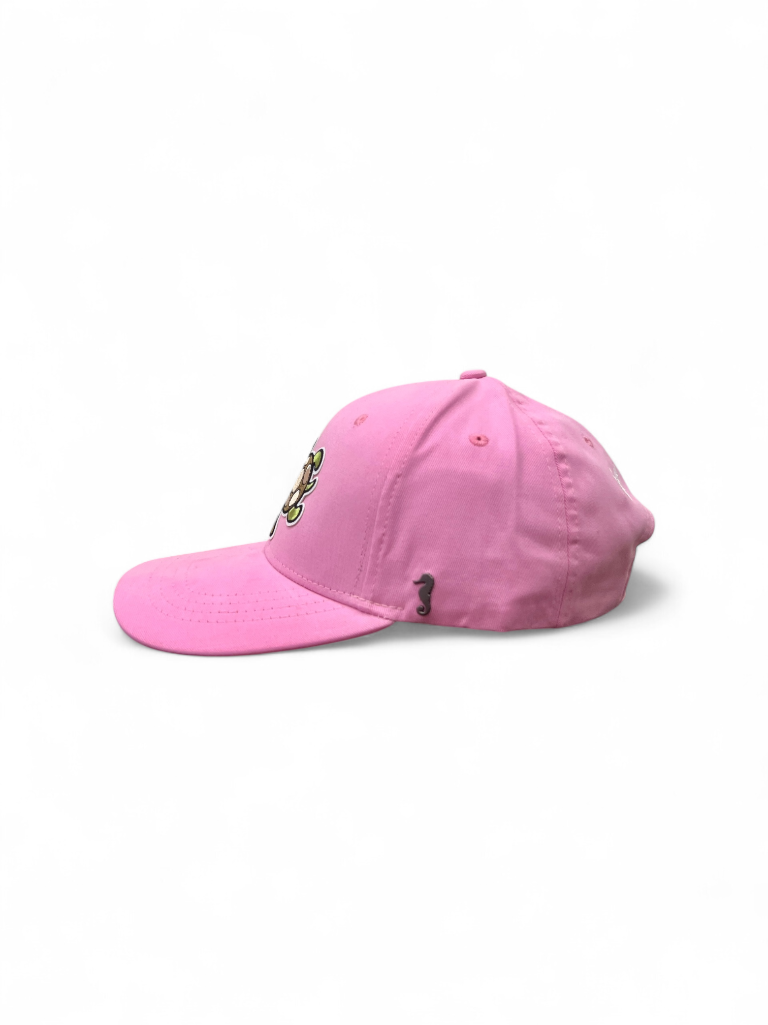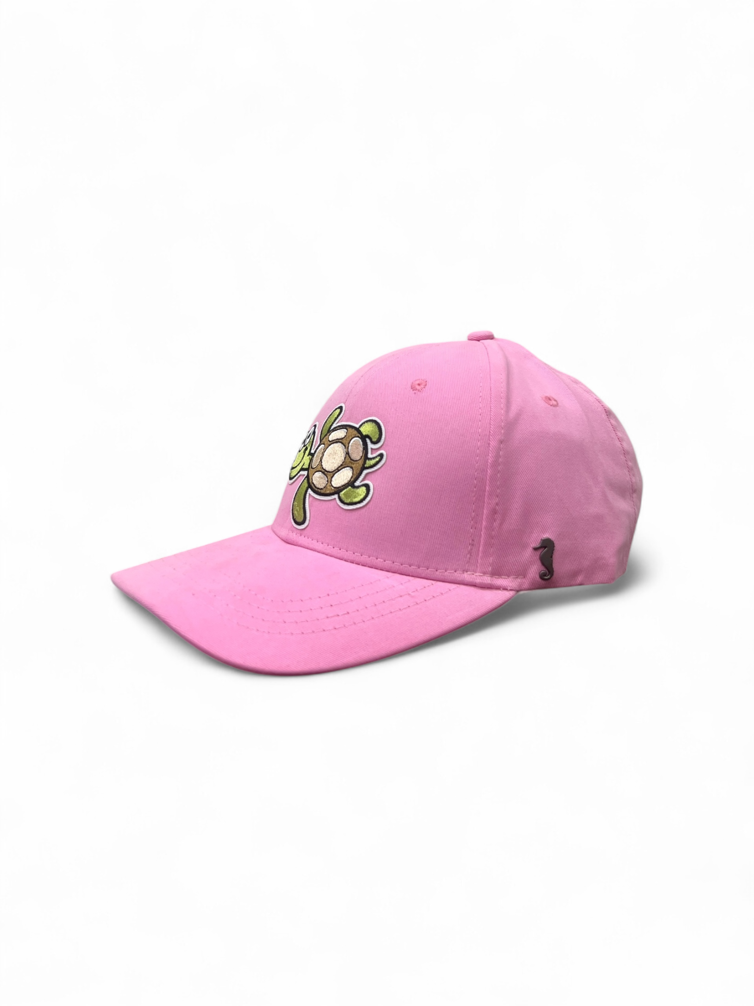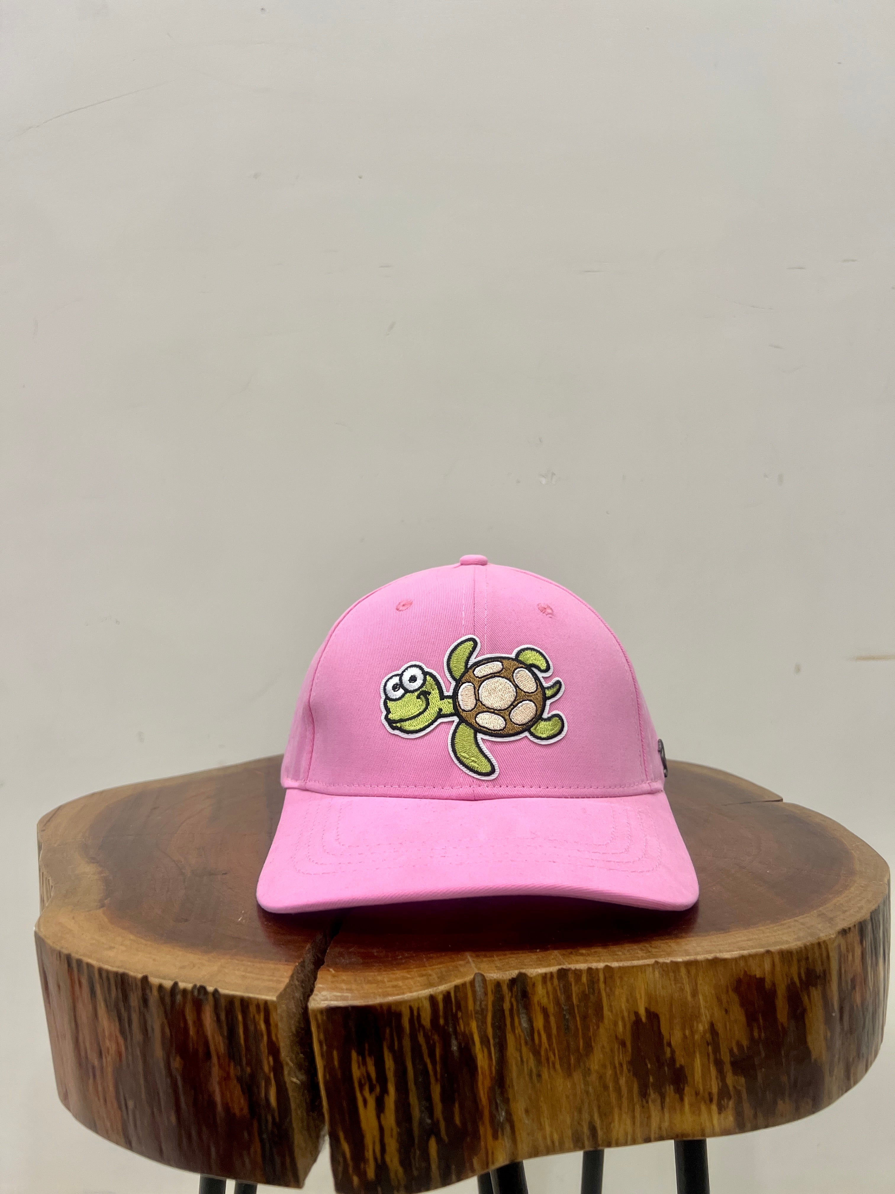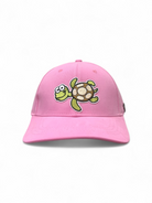 THE SEA HORSE brings unique classy headwear that reflects your personality and help you make a statement. This is from a travel collection and features a turtle embroidery on baby pink cap. Perfect for a beach outing.