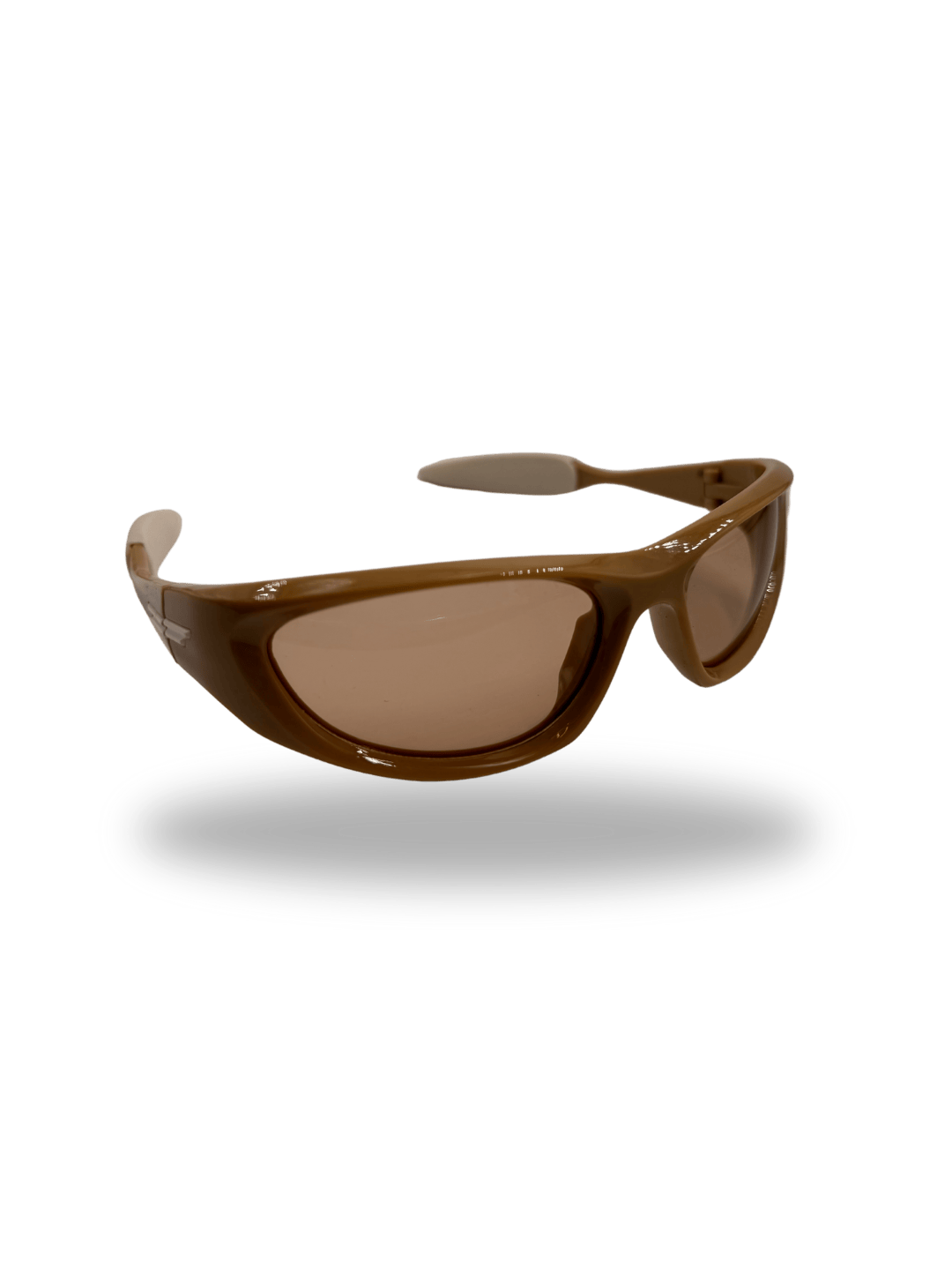 Step into the haze of nostalgia reimagined for the now. CREAM BOOZE is a bold reinterpretation of early 2000s café-racer chic, dipped in a rich caramel tone and finished with a high-gloss sheen. Its fluid curves and full-wrap frame offer a snug, sculptural fit made to turn heads from city corners to open roads. These are not just sunglasses — they're a mood, a moment, a manifesto in motion.