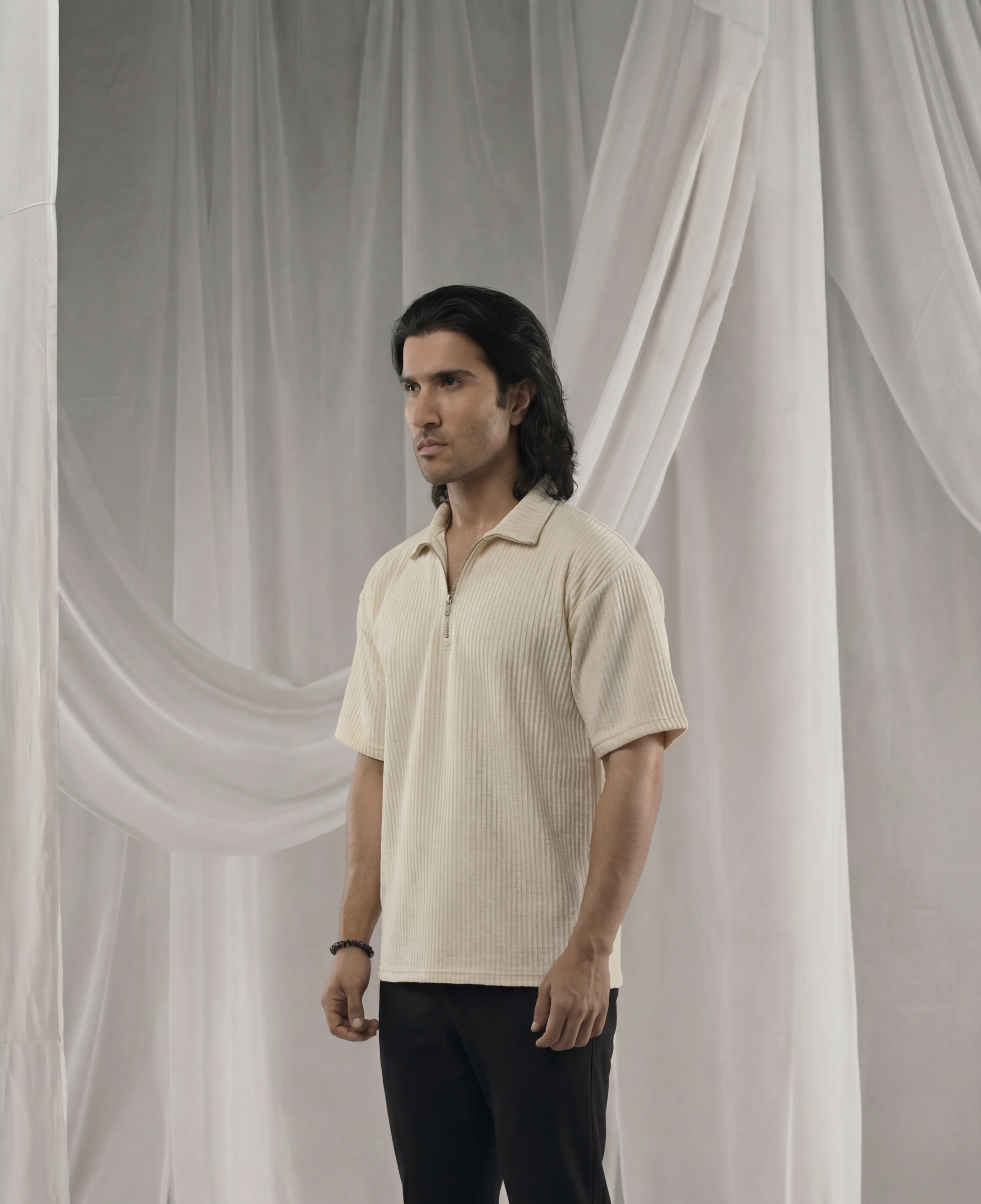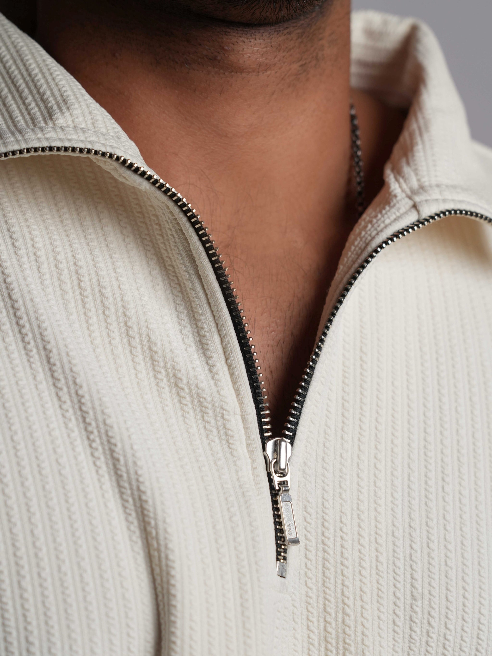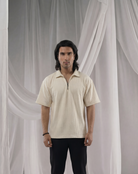 Cream Half Sleeves Quarter Zip