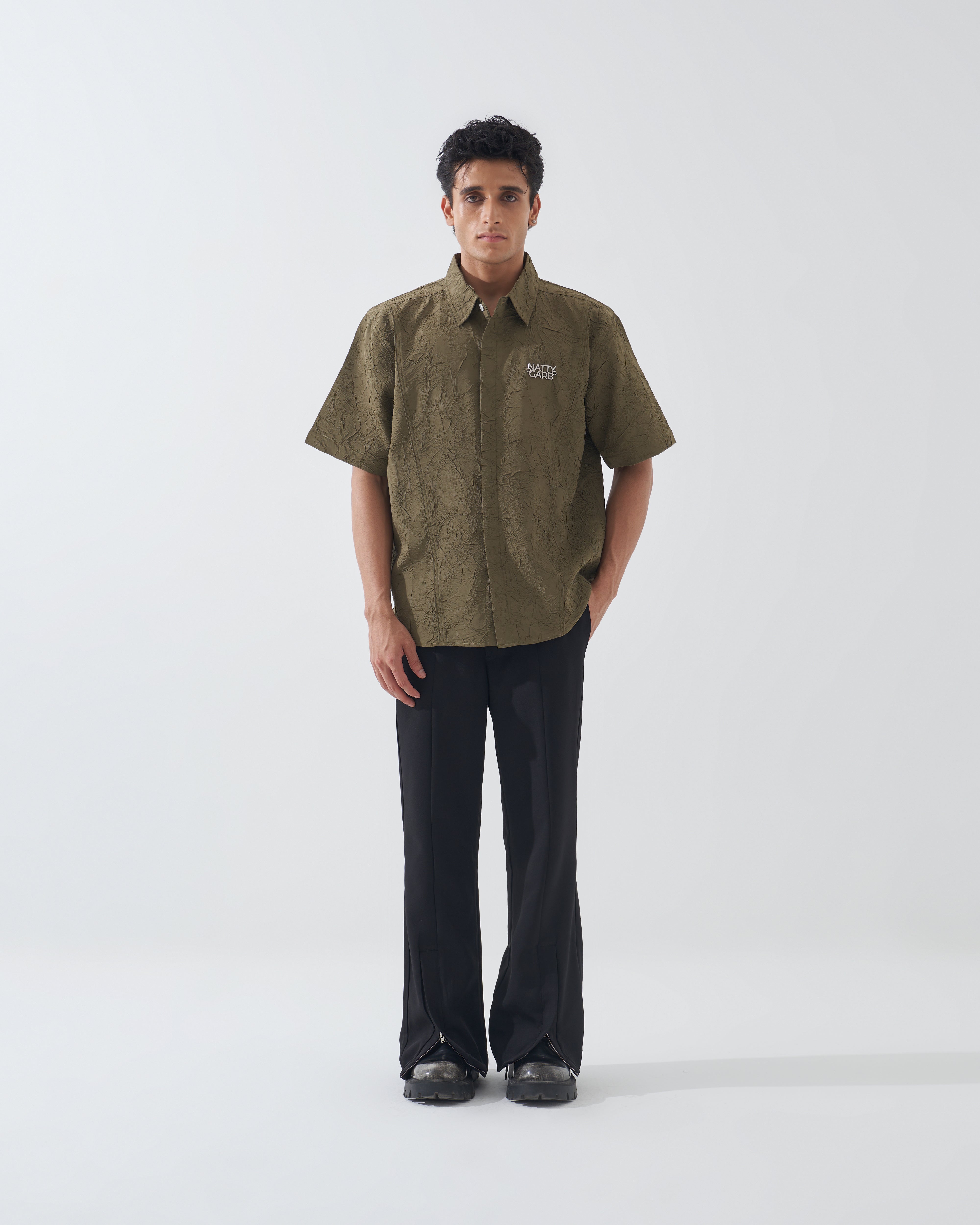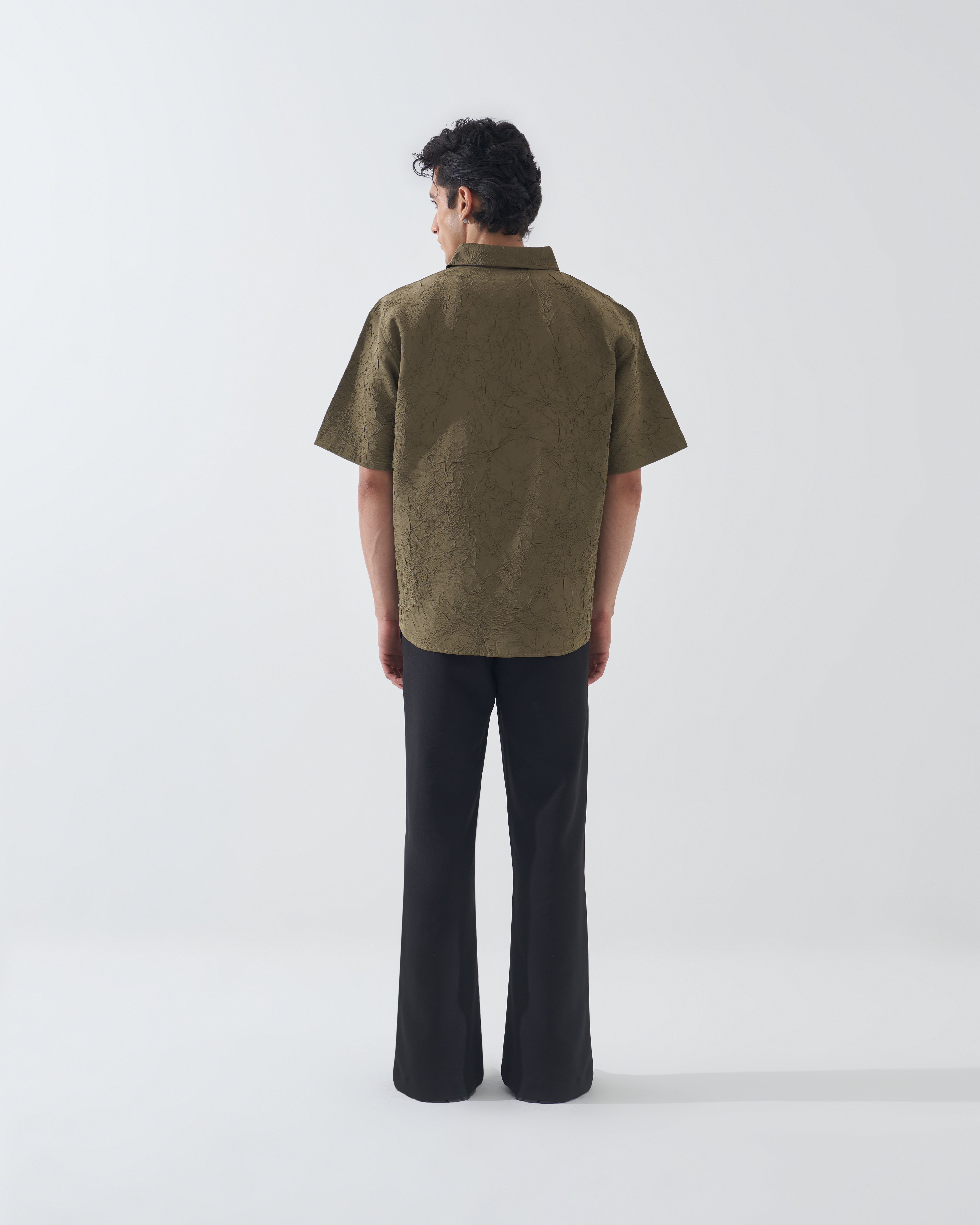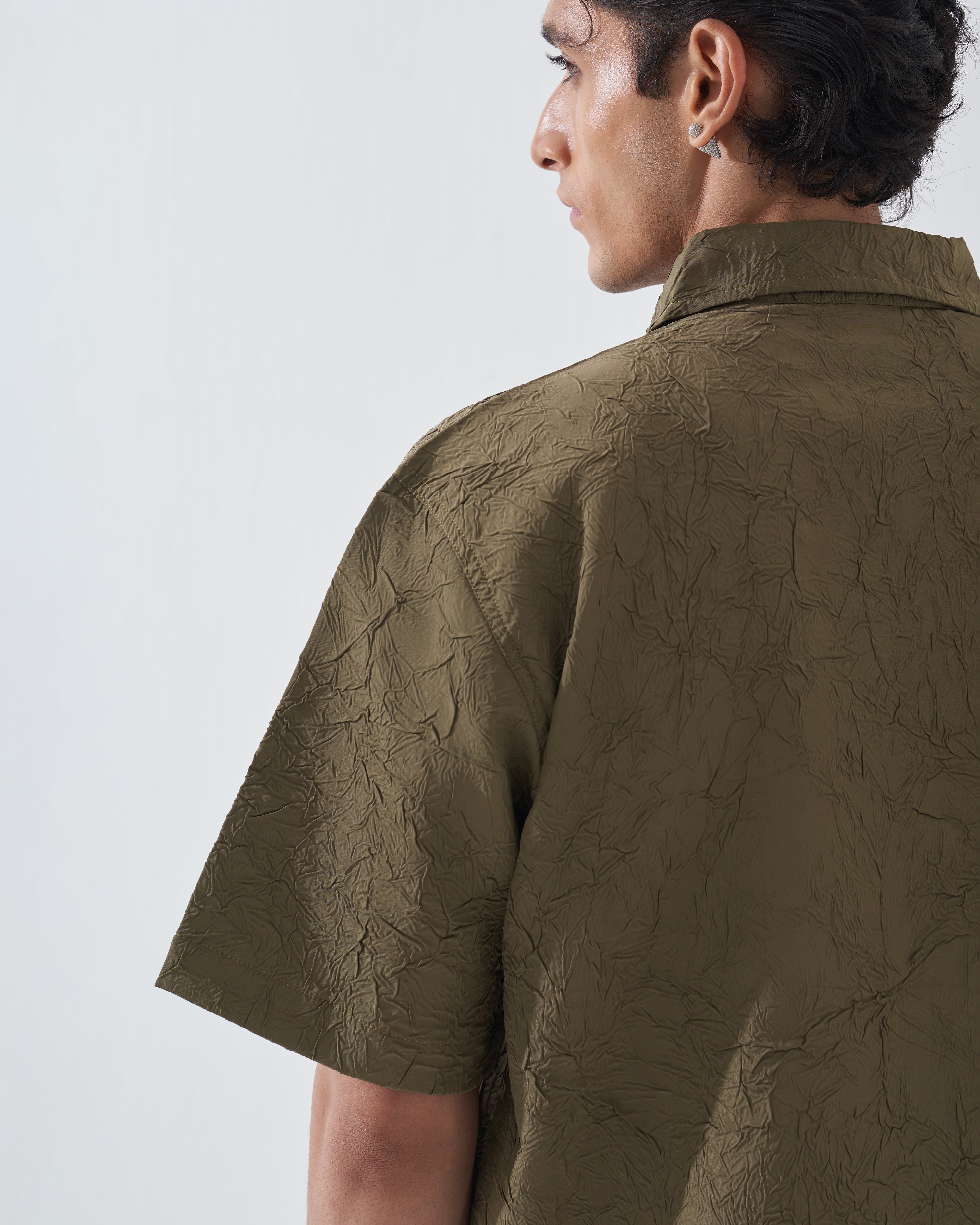 CRINKLED OLIVE GREEN SHIRT