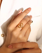 Modern elegance meets everyday ease in the Curl Adjustable Ring. Designed with a smooth, flowing silhouette that wraps gently around the finger, this piece is finished in radiant 18k gold plating for a luxurious touch. Its open-ended design allows for an adjustable fit, making it as practical as it is stylish.