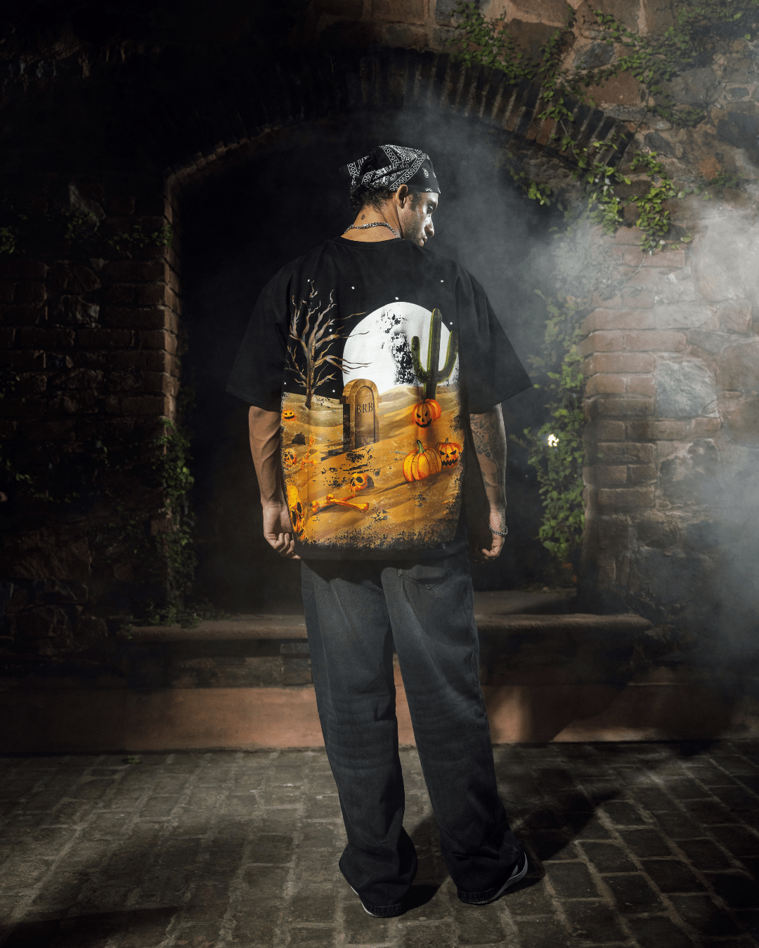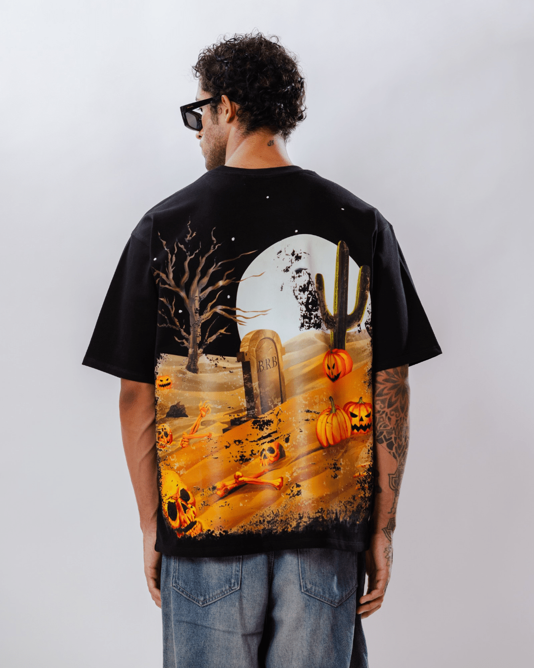 This Halloween-inspired t-shirt is designed for those who embrace the darker side of style. The spooky elements bring the chilling spirits of Halloween to life while the desolate desert adds an extra layer of mystery