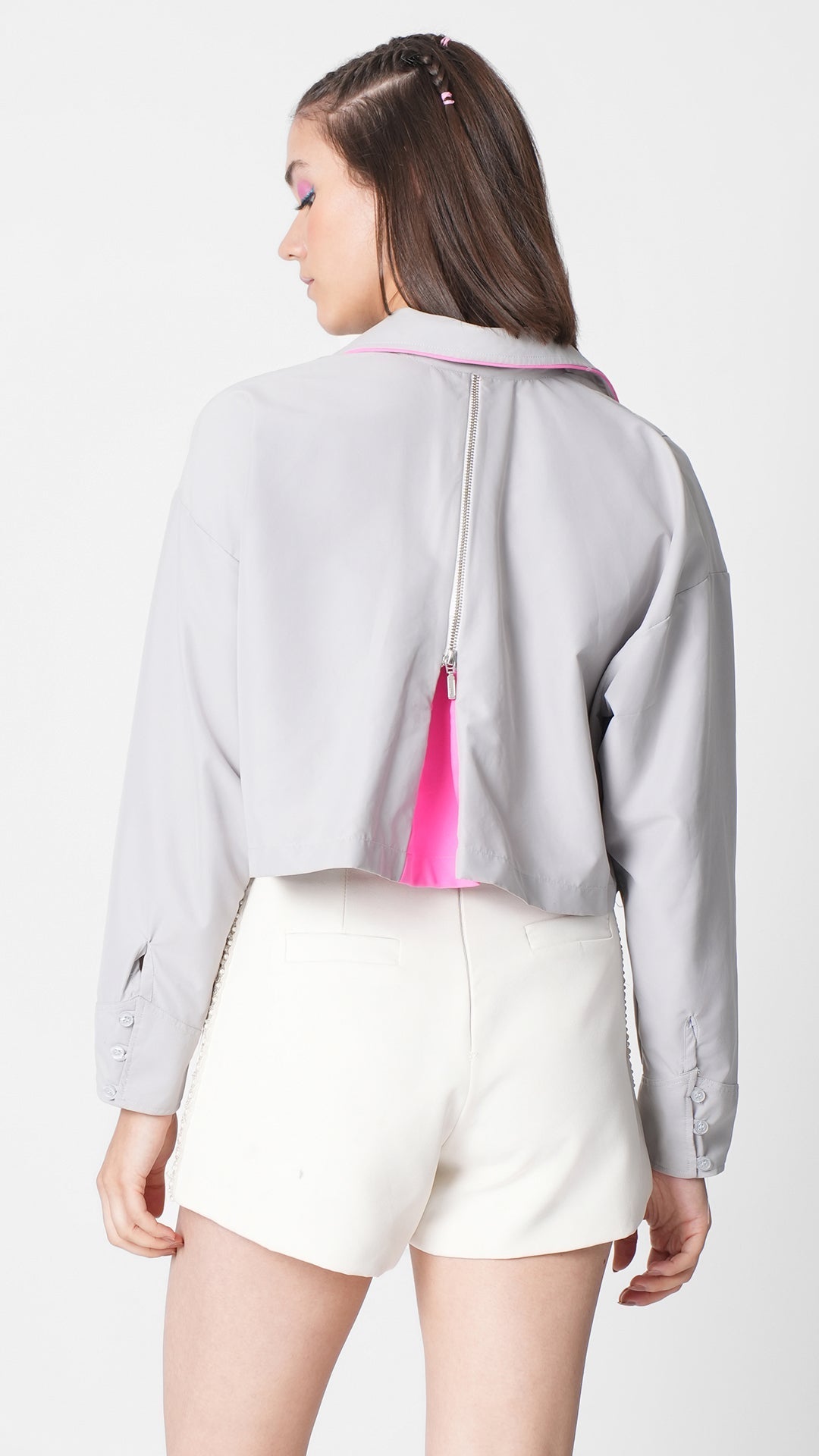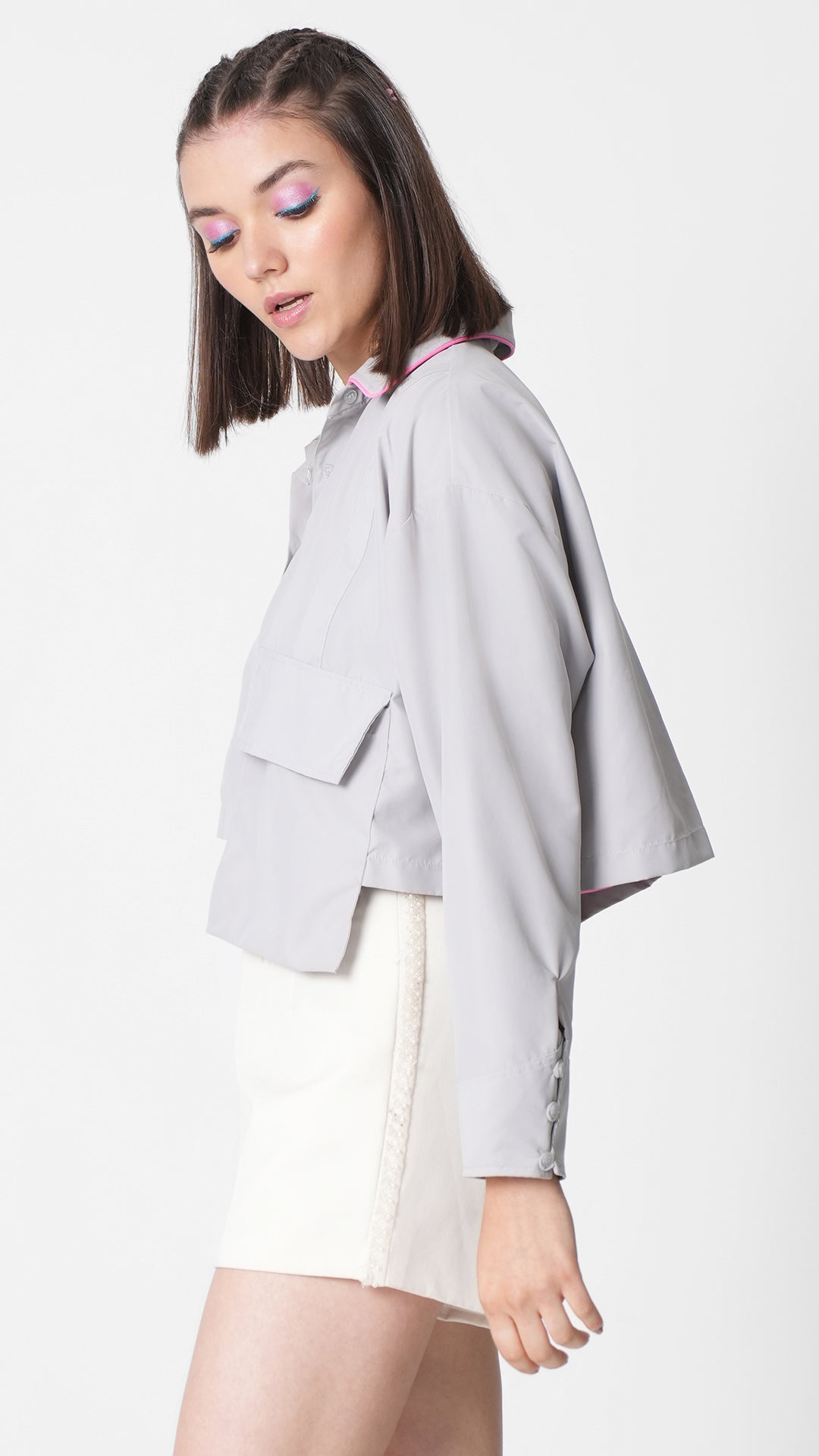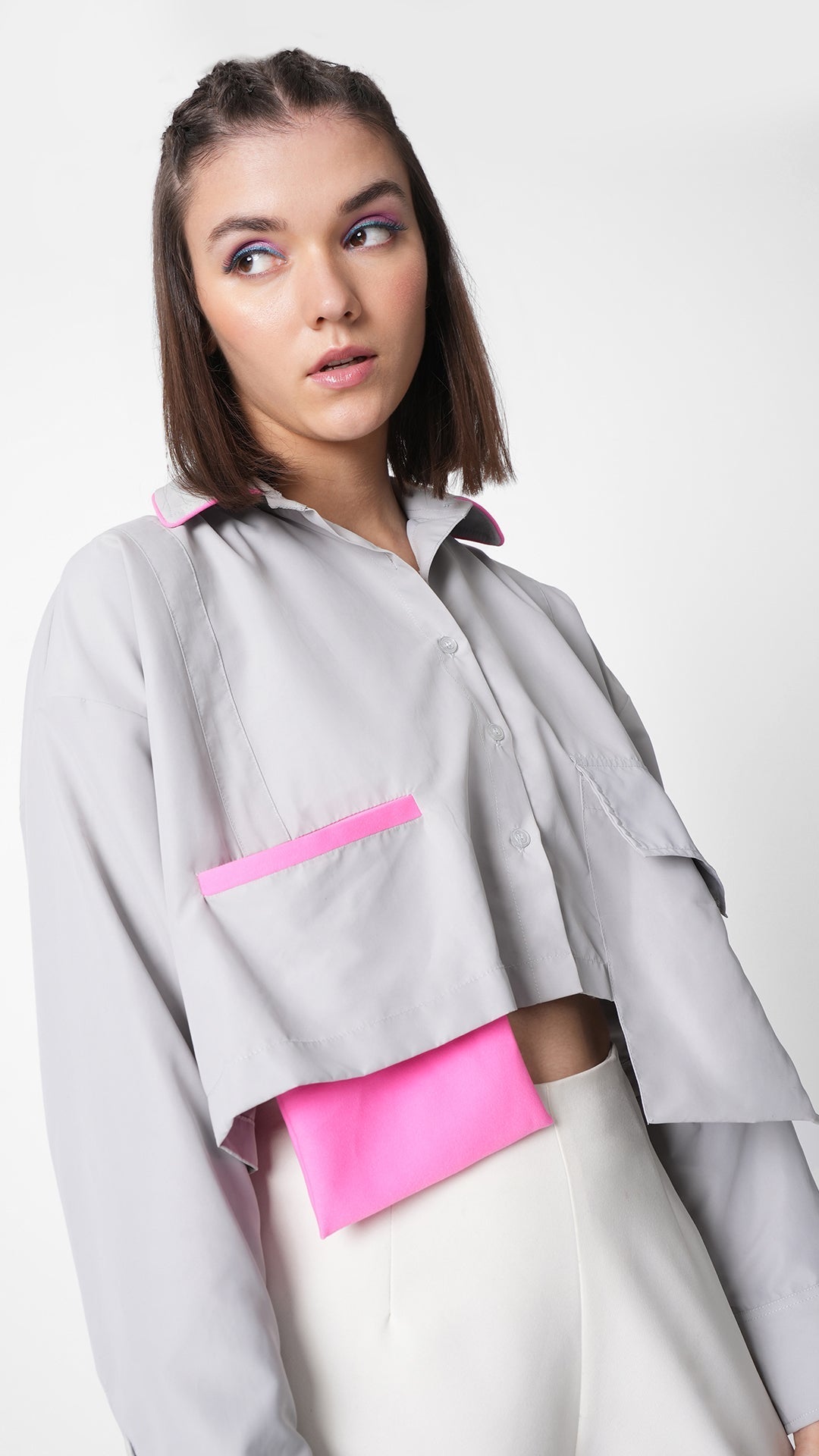 - Cropped oversized shirt with extended pockets