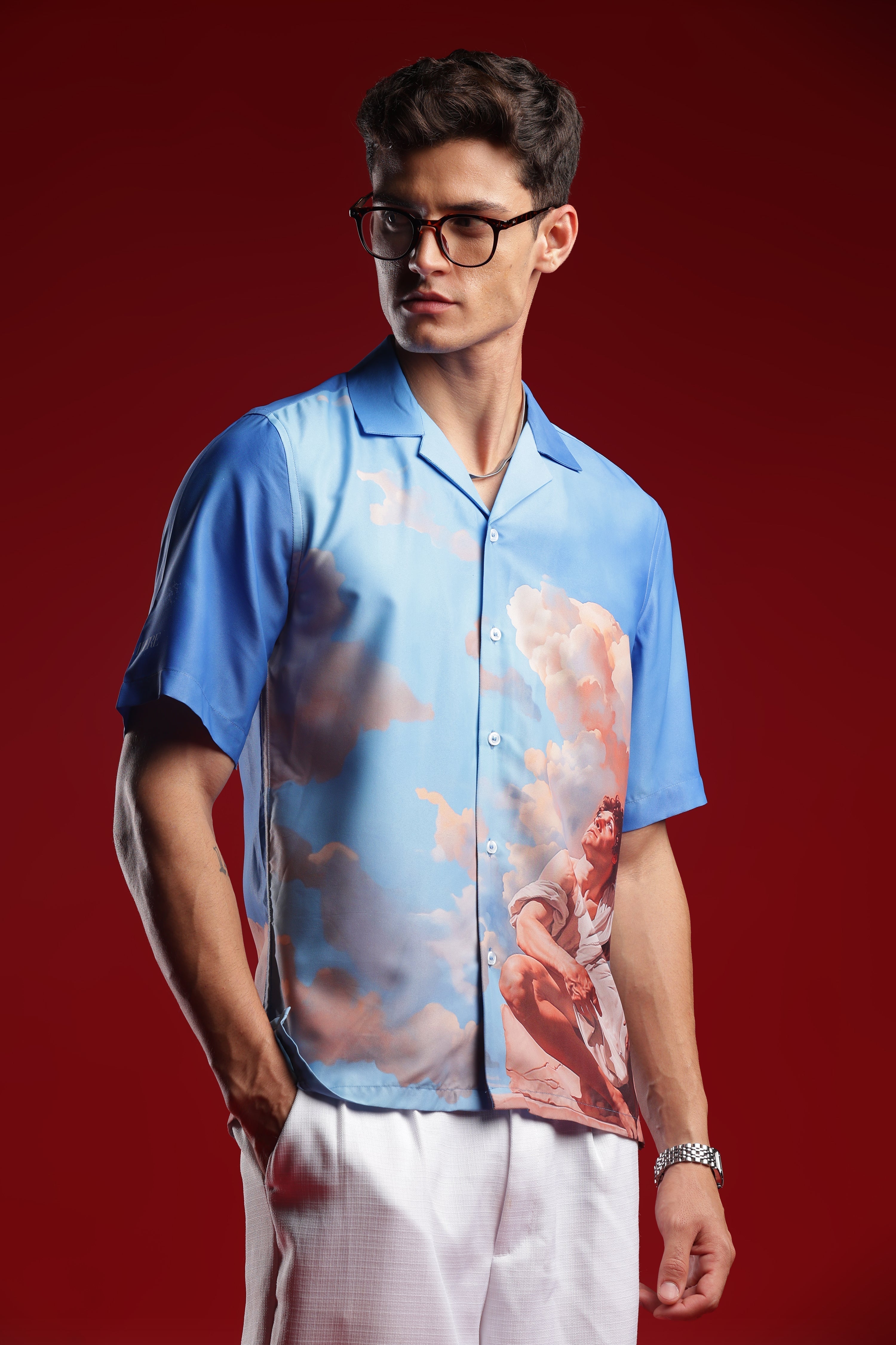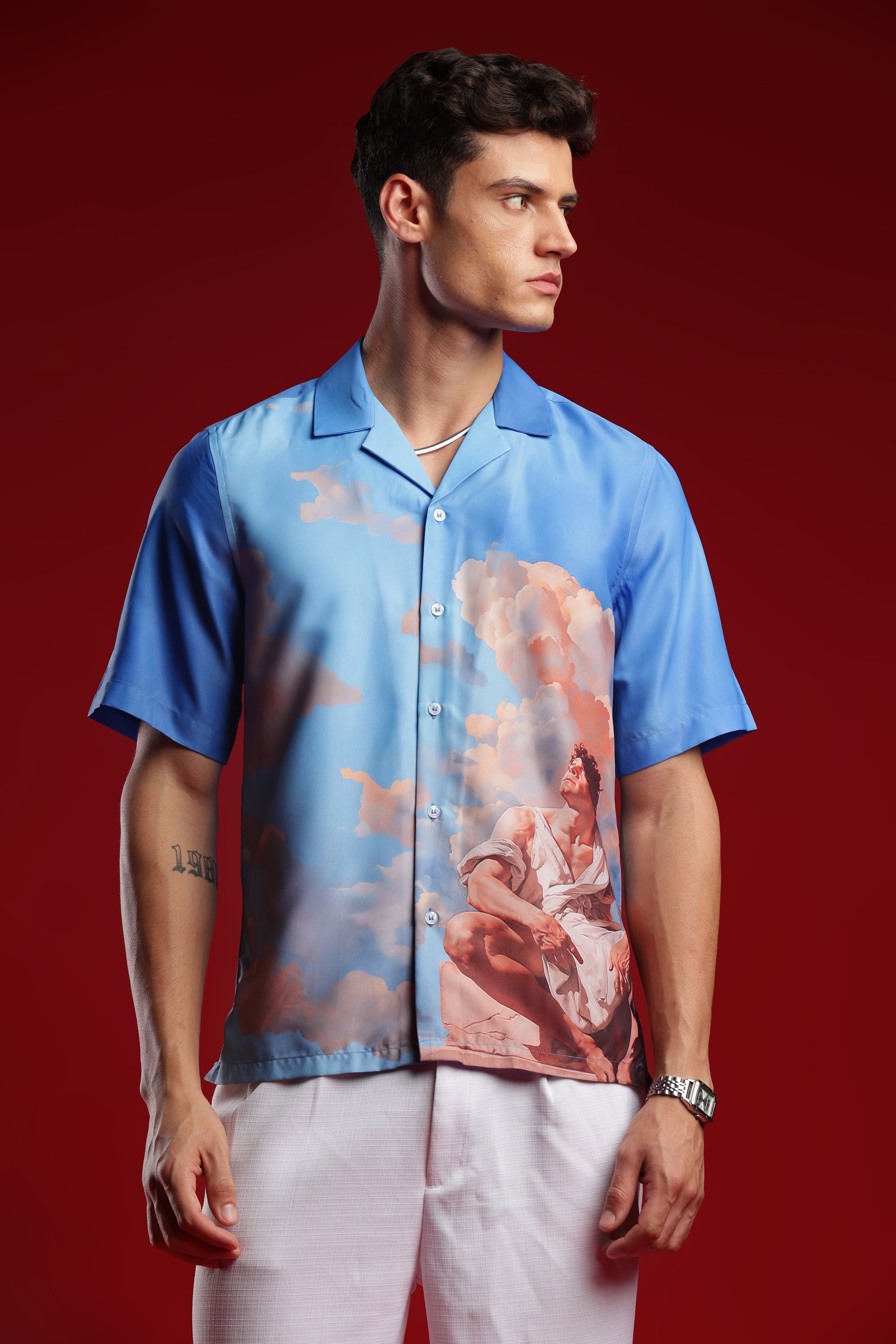Elevate your casual fashion game with the I'MHERE Exclusive "The falling Icarus" Printed Shirt. Make a bold statement wherever you go with this uniquely designed piece.