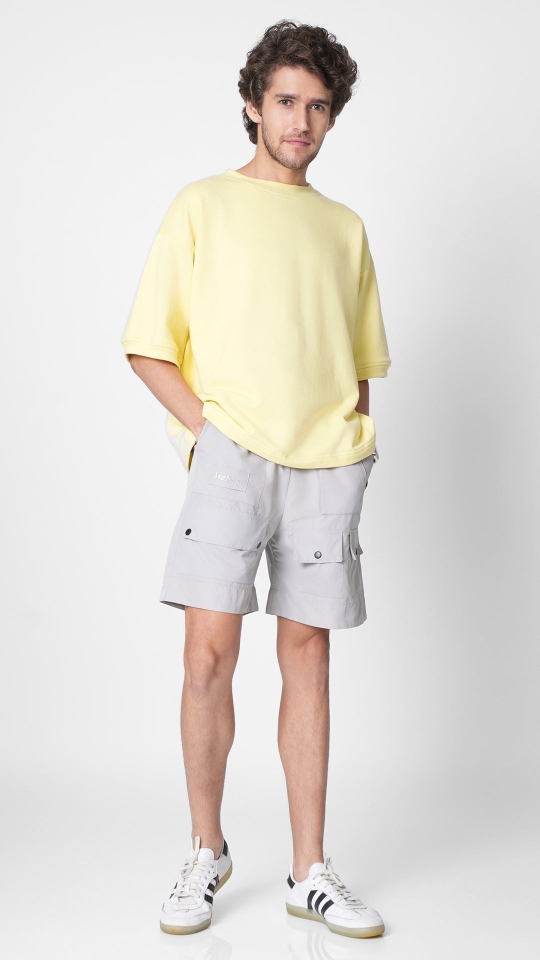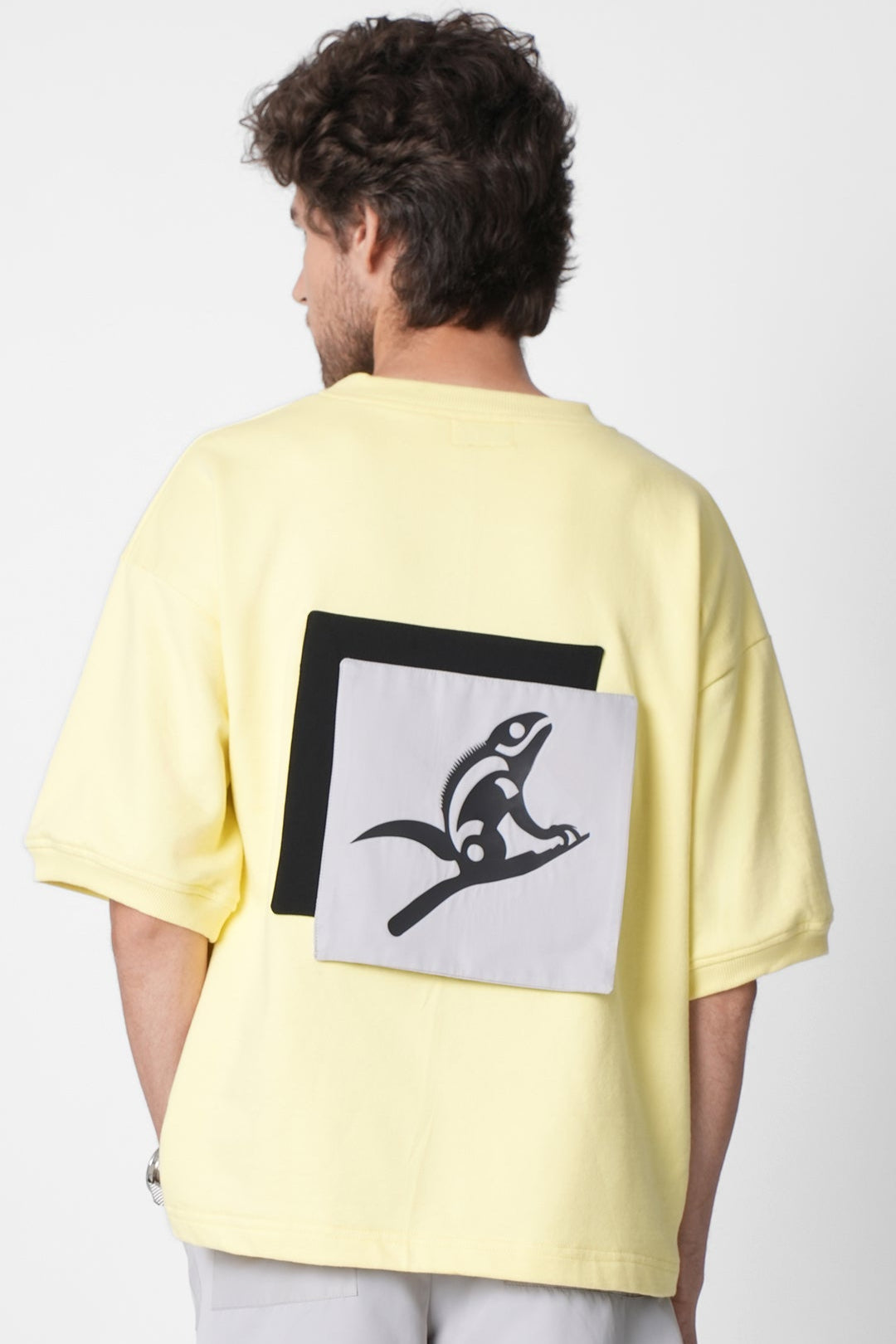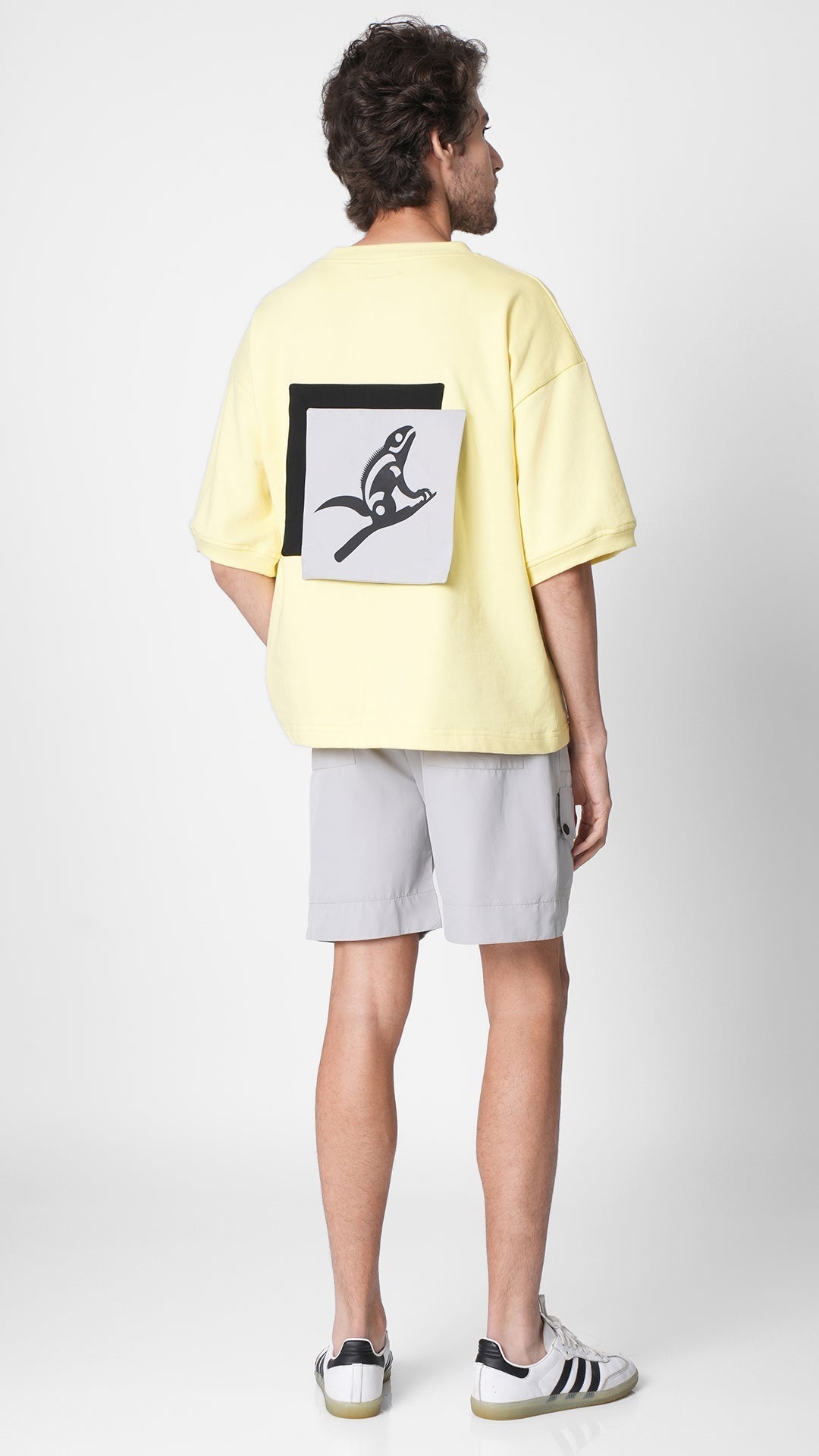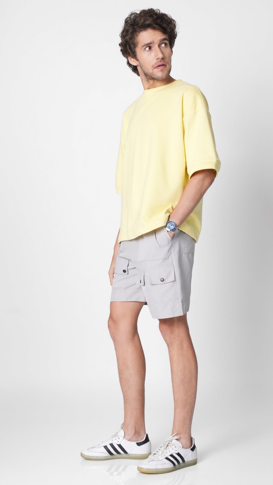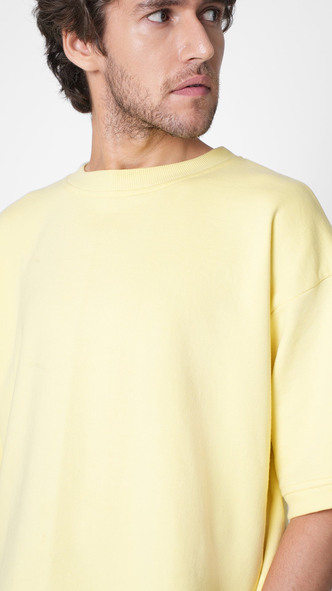 - 400 GSM light yellow tee finished with 1i5rib on sleeve hem and neck