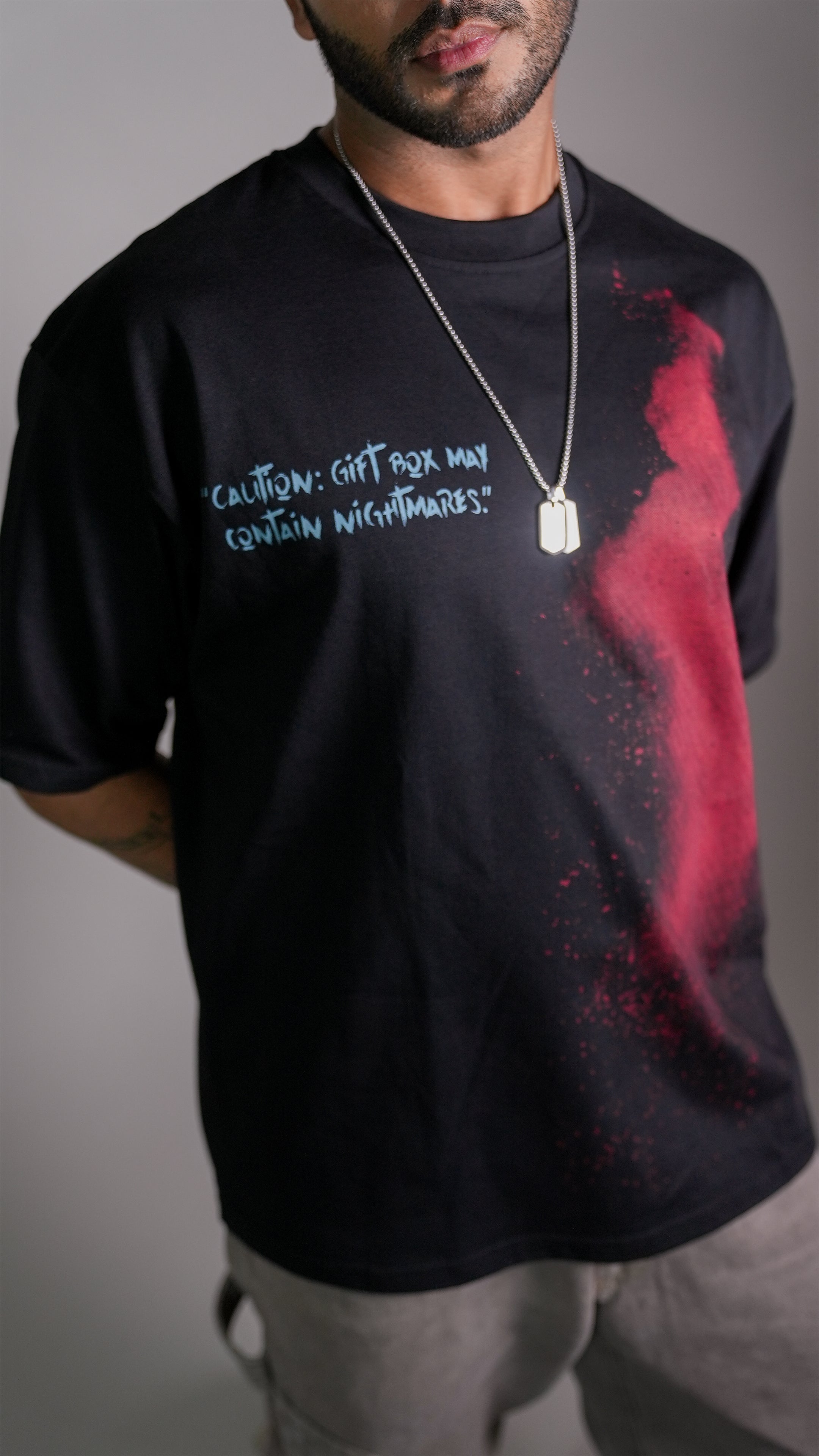 This 300 GSM single jersey cotton tee brings a cinematic twist to your wardrobe. Featuring a mysterious “gift box” graphic at the back and a subtle clue on the front, the design blends dark humour with thriller-inspired art. The red splash effect adds drama without trying too hard. Wear it like a secret only you know.