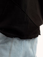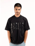 Patchwork texture designed black T-shirt brings a modern take on a drop shoulder silhouette. The premium feel of the fabric is highlighted with the leather patchwork branding on top.