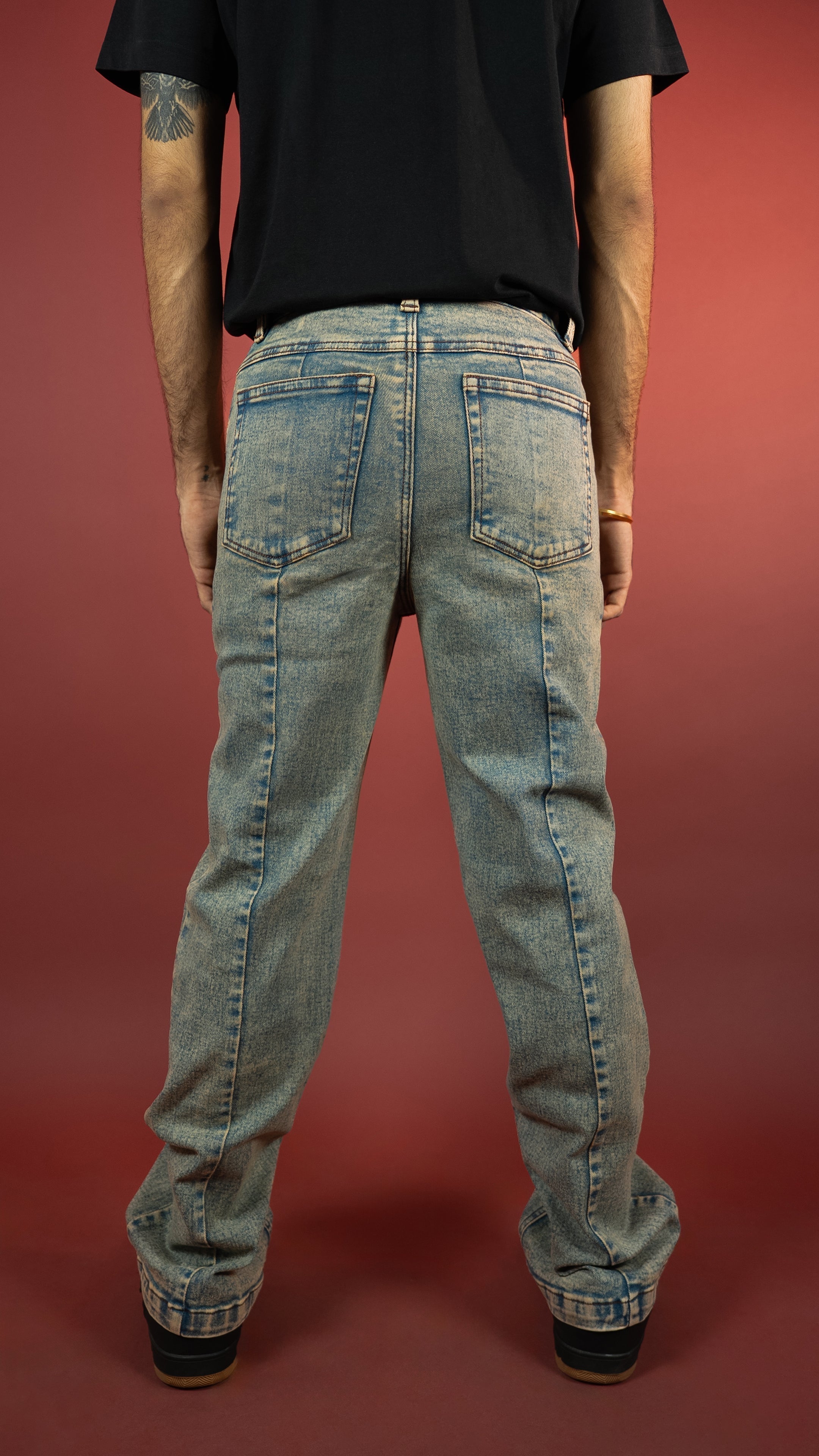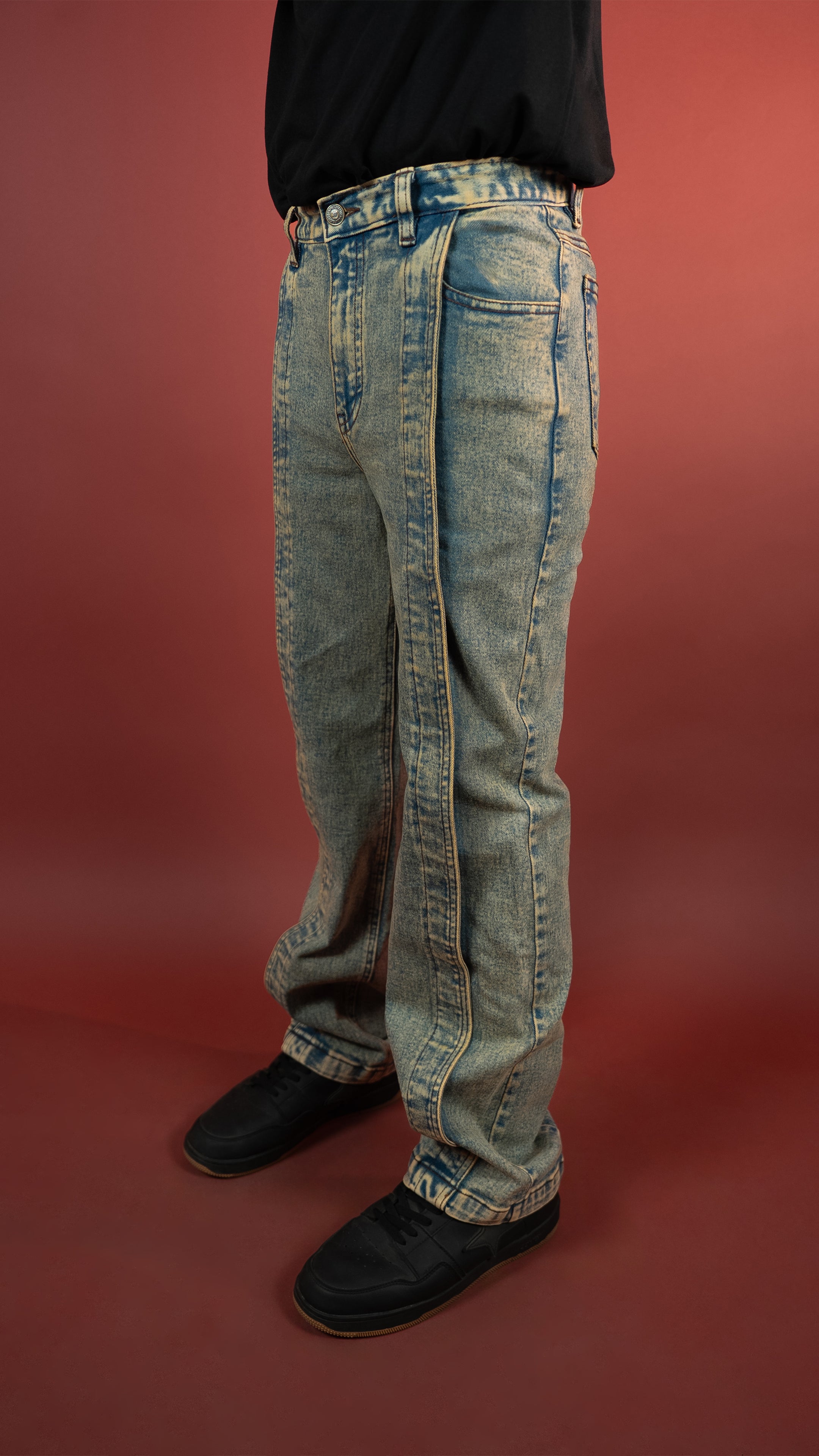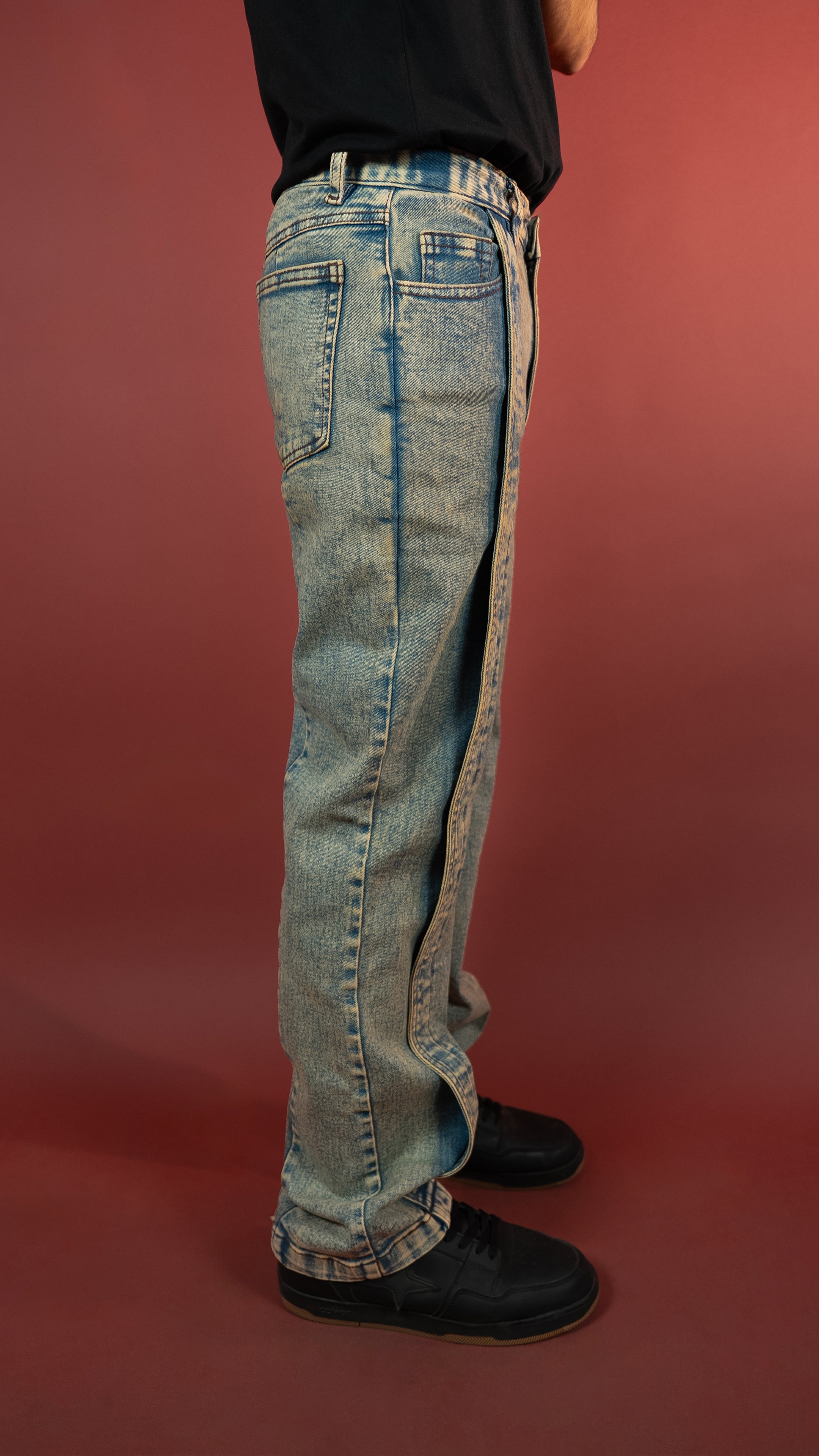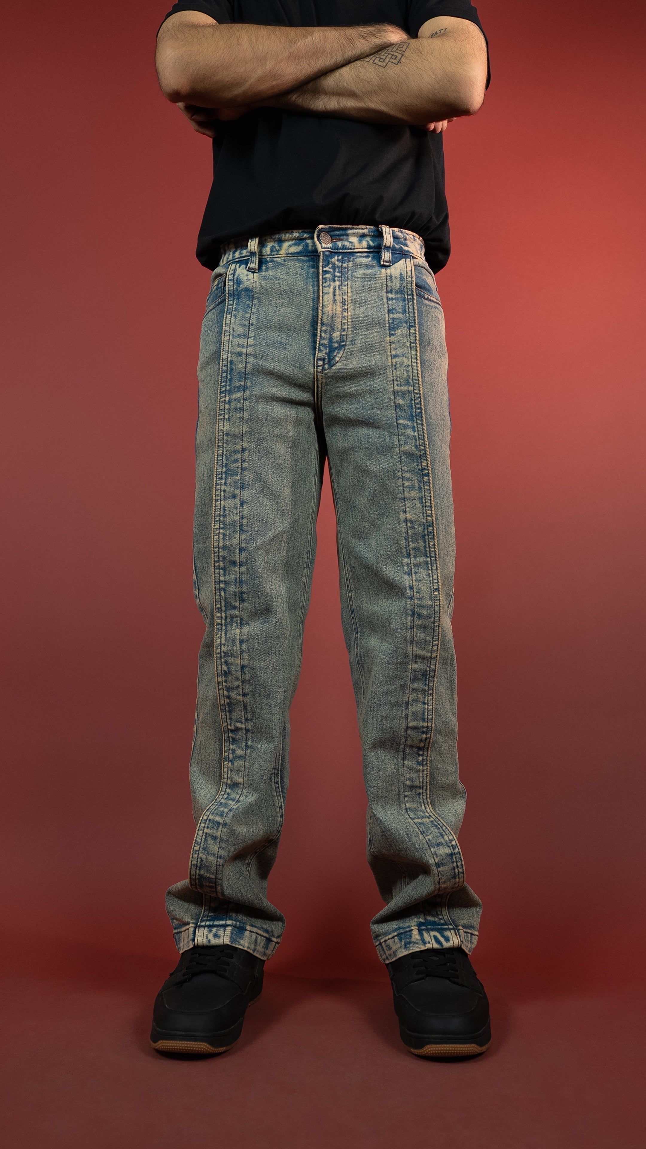 Built from 12.5 oz stretch denim for comfort and mobility, these cargo-inspired jeans go hard on detail. Broad front pleats, a bold silhouette, and a 5-stage handcrafted wash process that includes acid, sulphur, and KMnO4 treatment for that signature vintage finish. Completed with a YKK zipper fly for unmatched reliability. Grit, style, and durability stitched into one.
